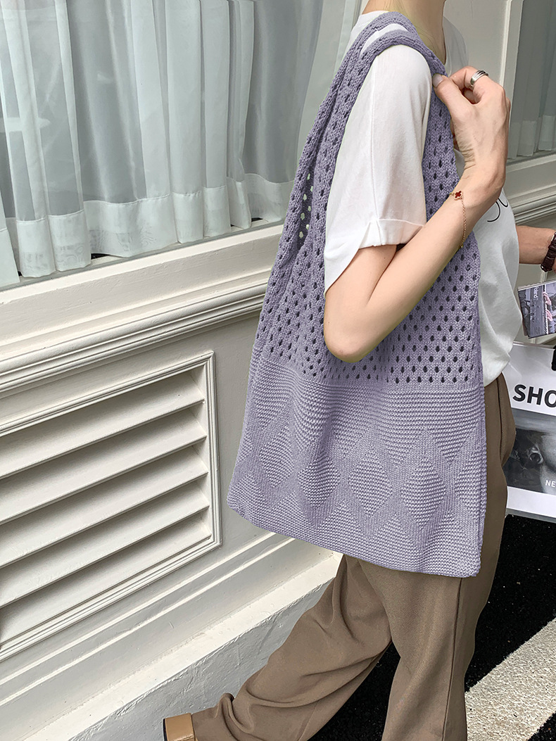 2024 새로운 예술적 니트 백 단일 어깨 대용량 토트 백 여성 휴대용 할로우 짠 가방 트렌디