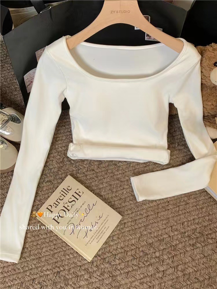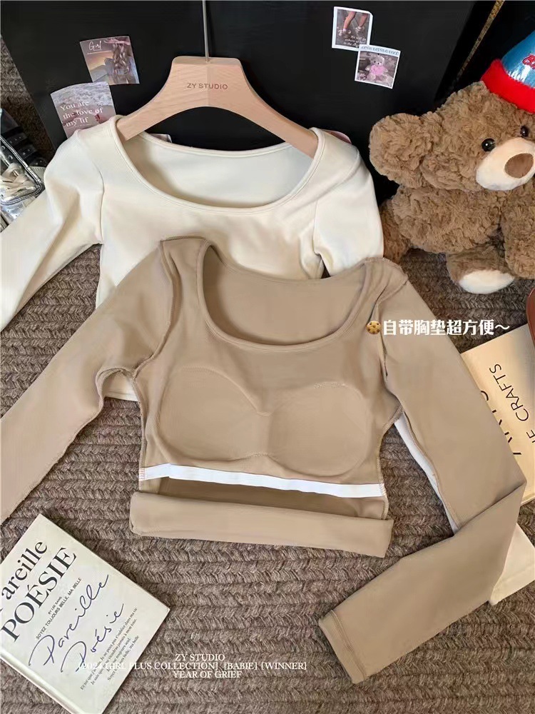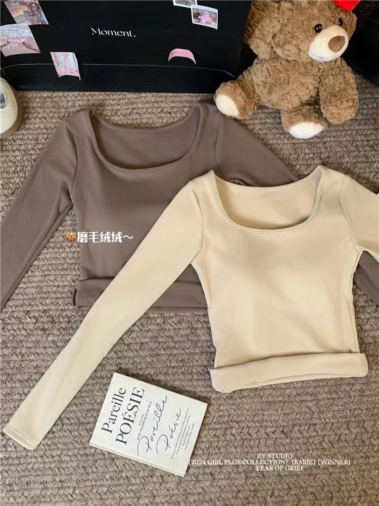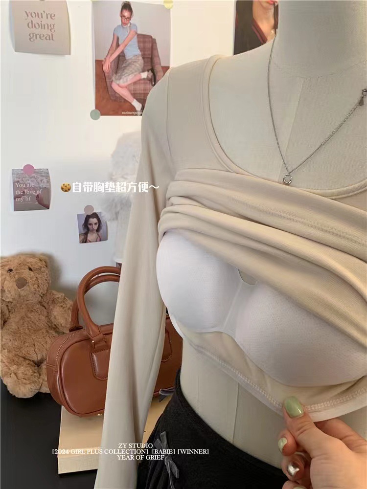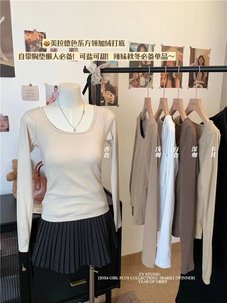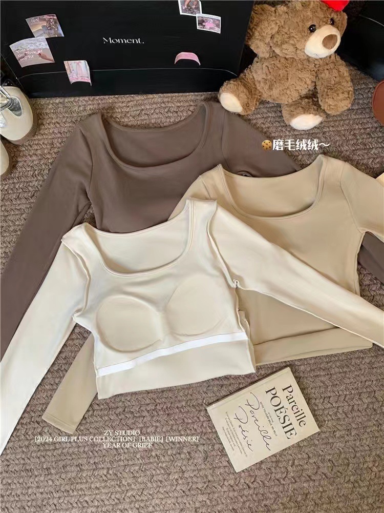 De Velvet 샌딩 긴팔 Shouli Spice Girls 슬림핏 달콤한 핫 따뜻한 Camisole 여성복 슬림 탑 (가슴 패드 포함)스토어 가기