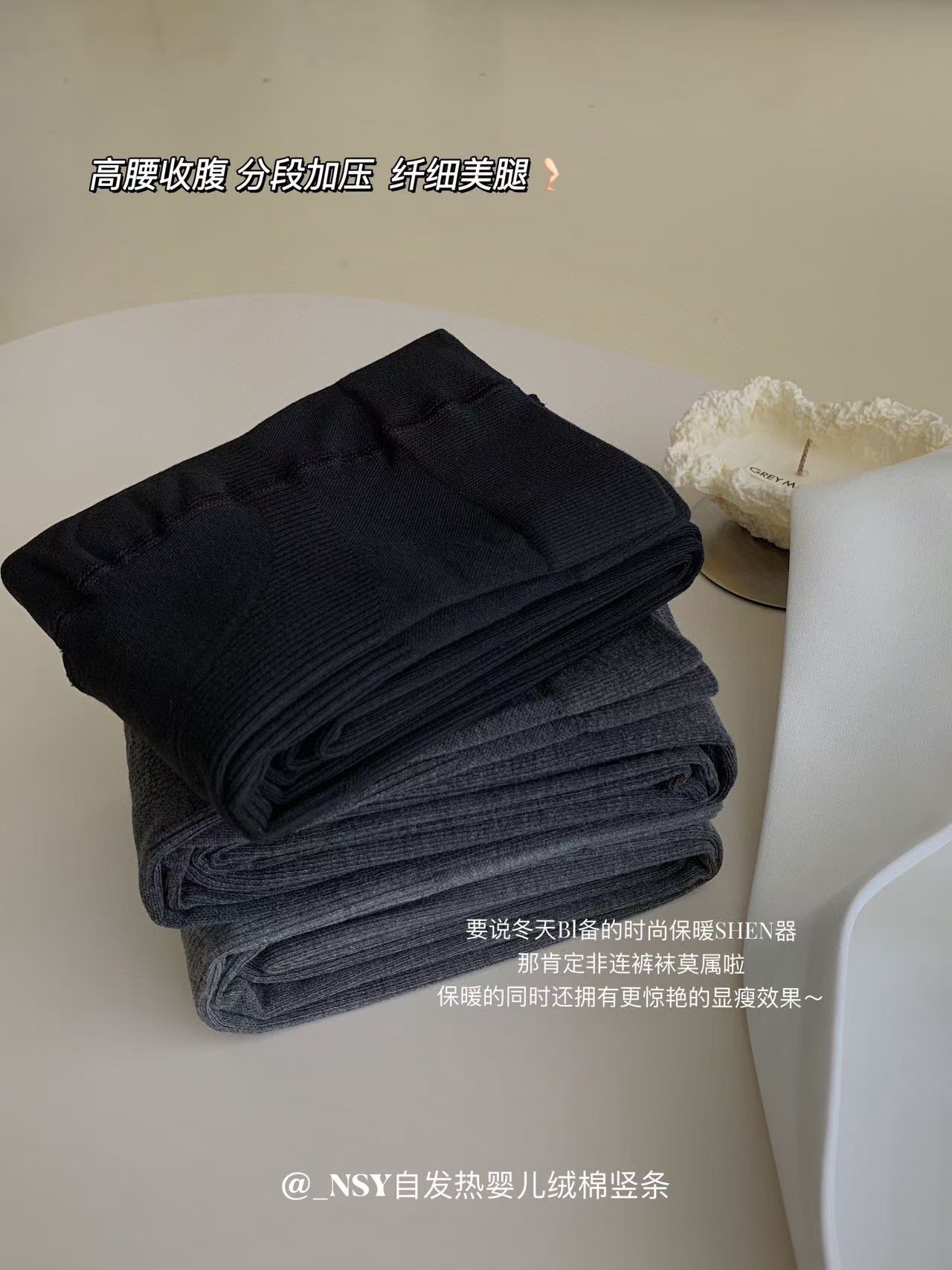 NSY 302 자가 난방 아기 벨벳 면 수직 스트립 발 양말 여성의 높은 탄성 마이크로 압력 얇은 다리 따뜻한 바지 다리 양말