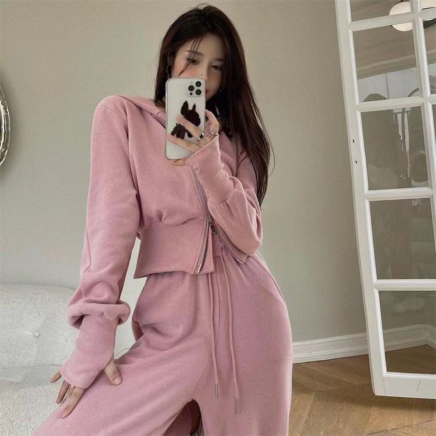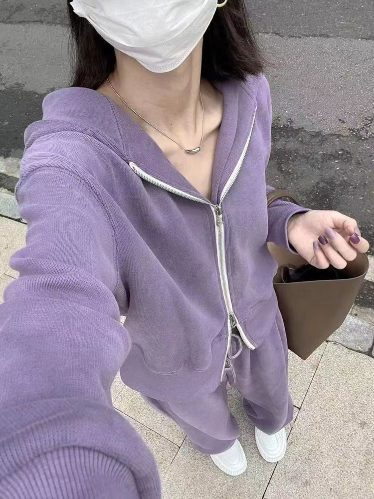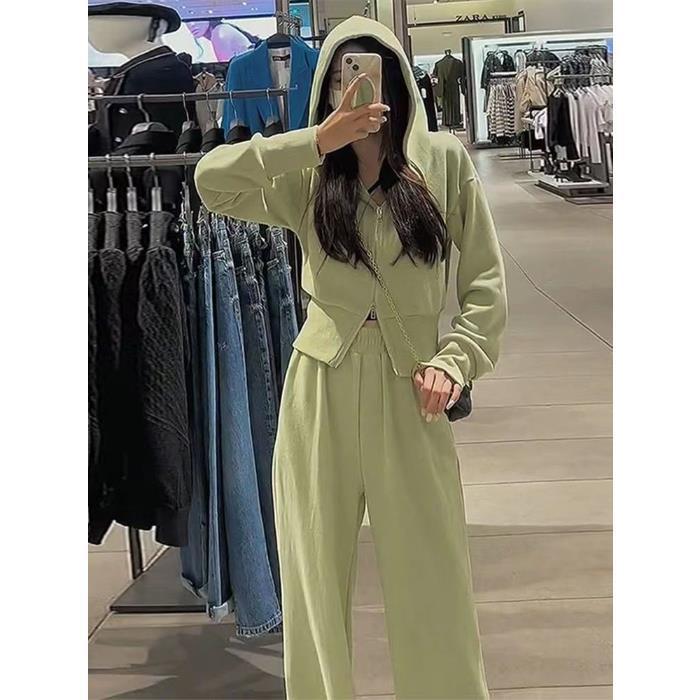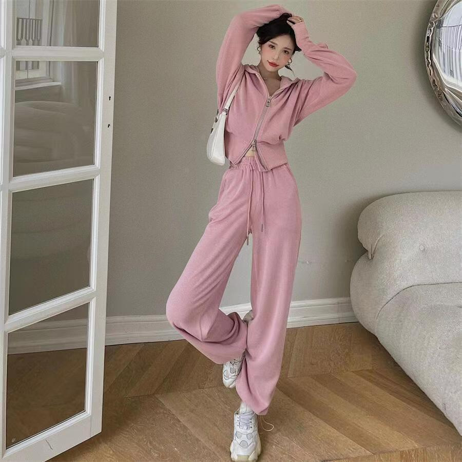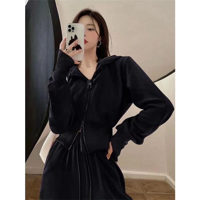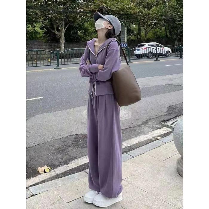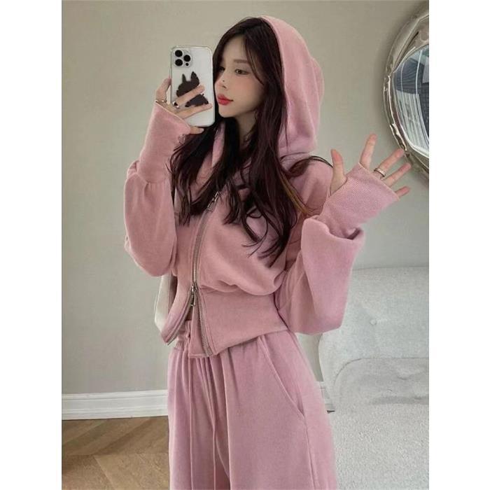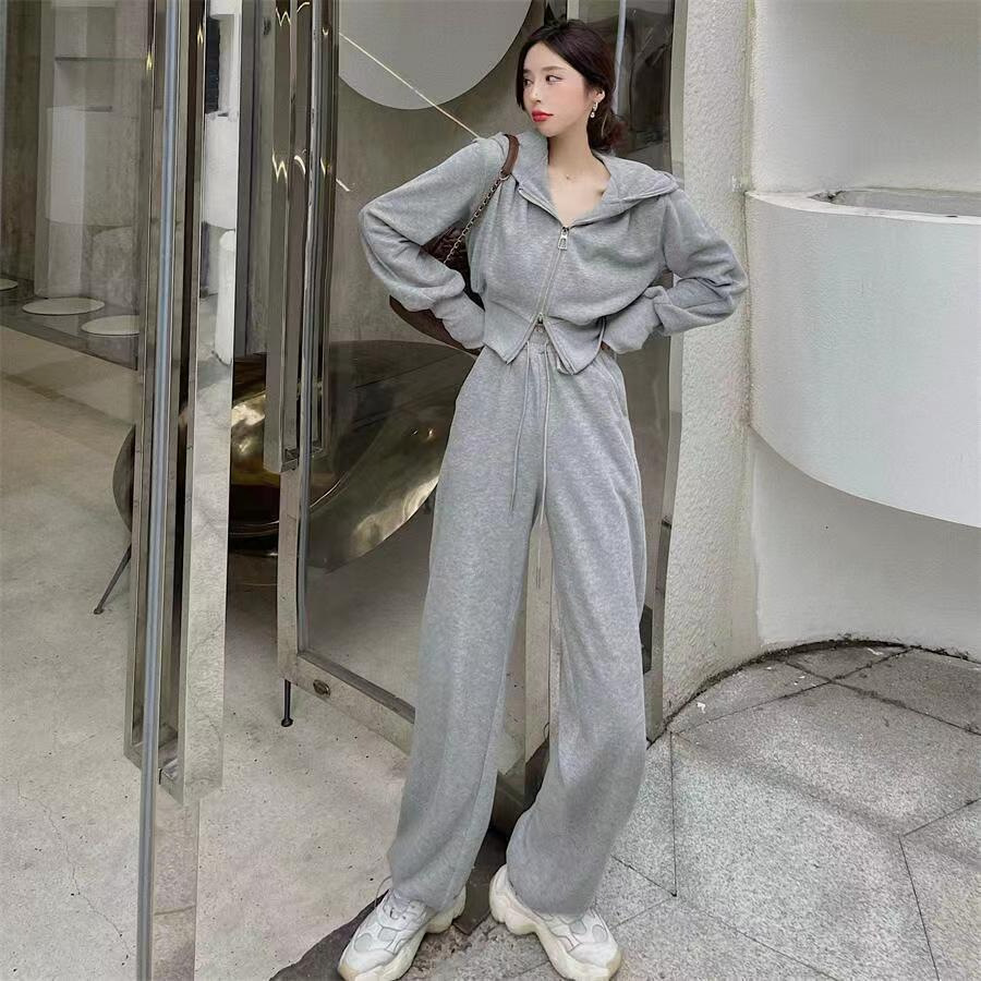 运动套装女2023秋季新款韩版宽松网红休闲卫衣拉链+阔腿裤两件套