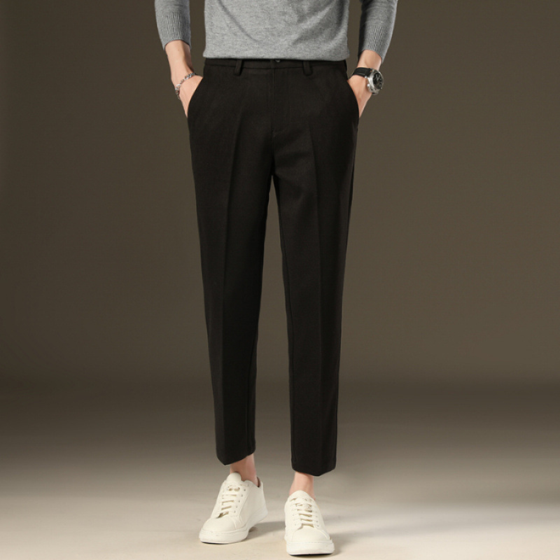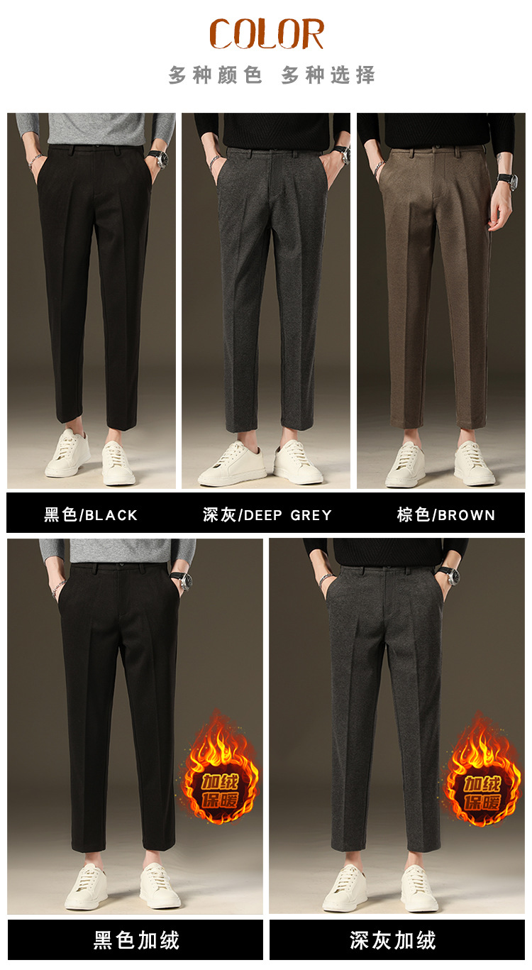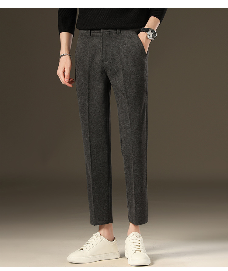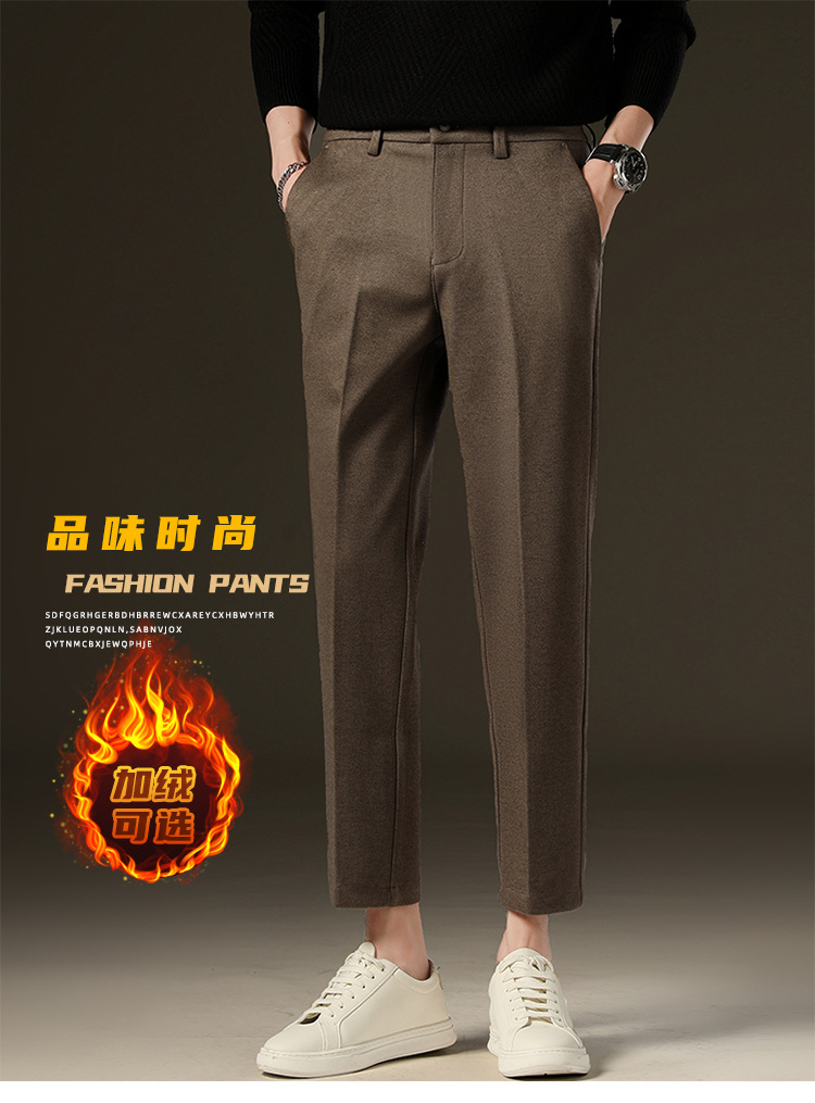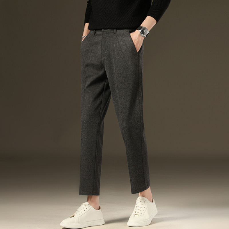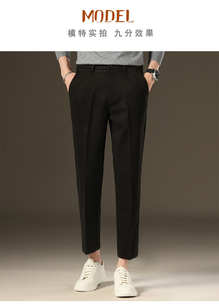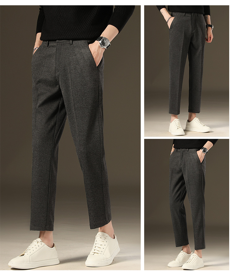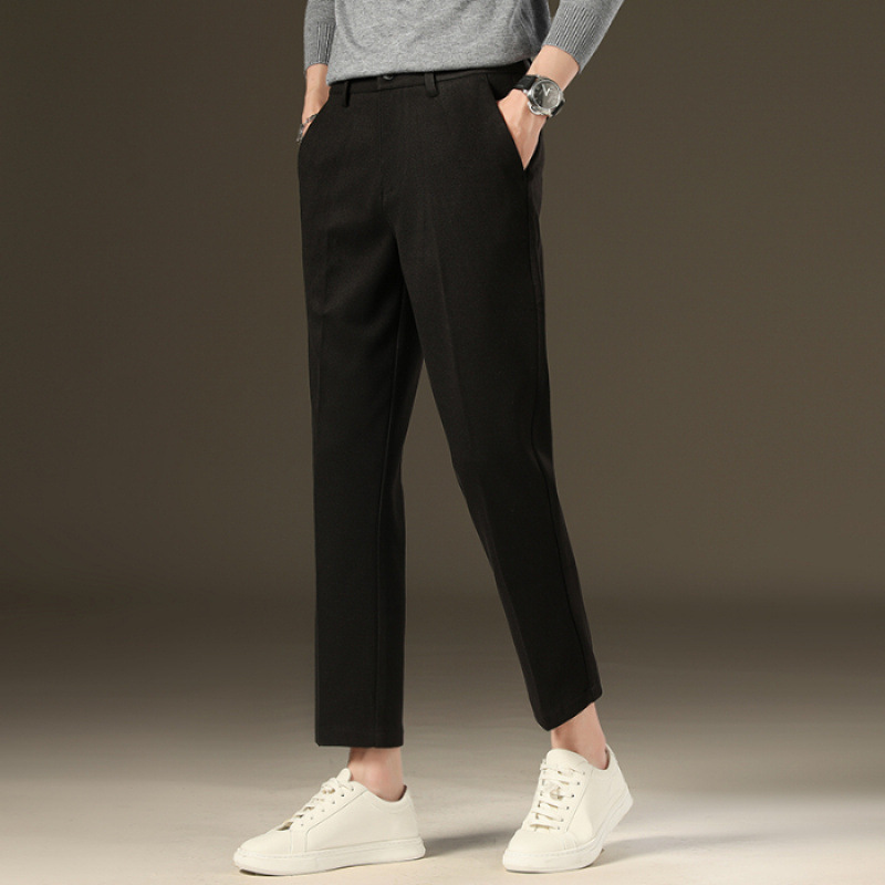가을과 겨울 모직 작은 바지 직선 비 주름 방지 사업 원피스 9 점 캐주얼 바지 남성 기모 두꺼운 바지