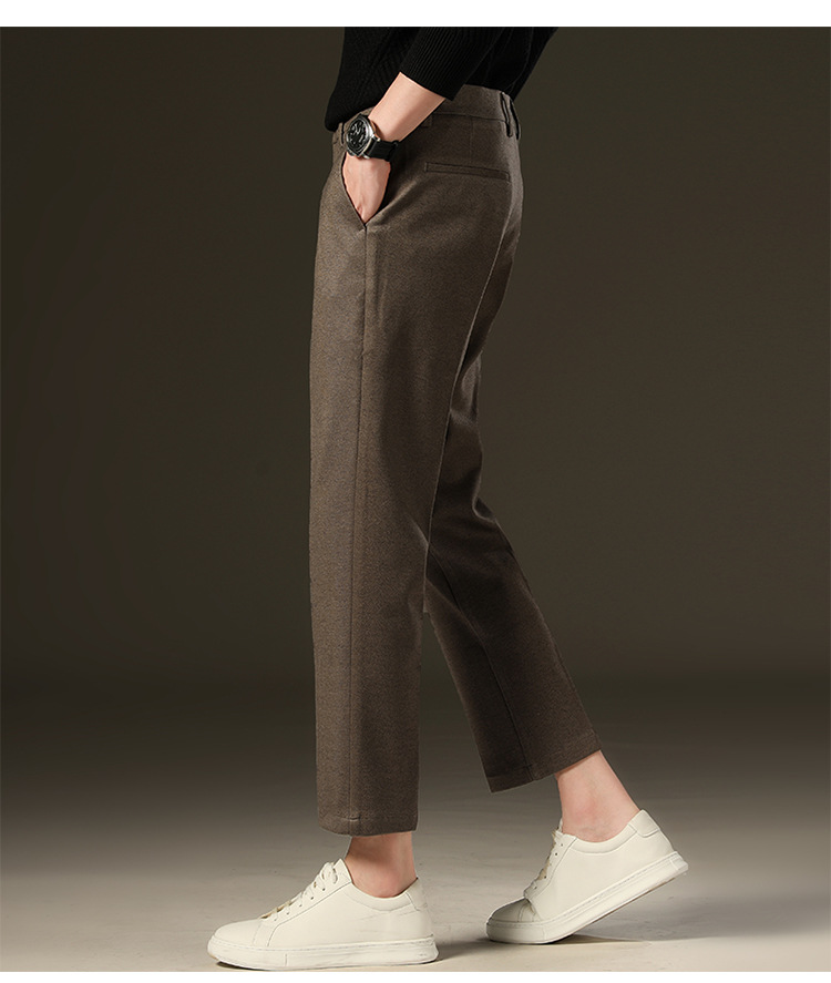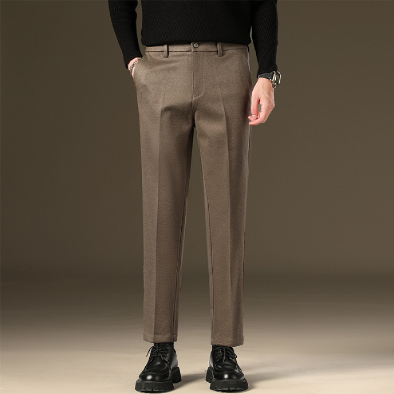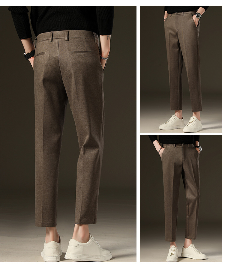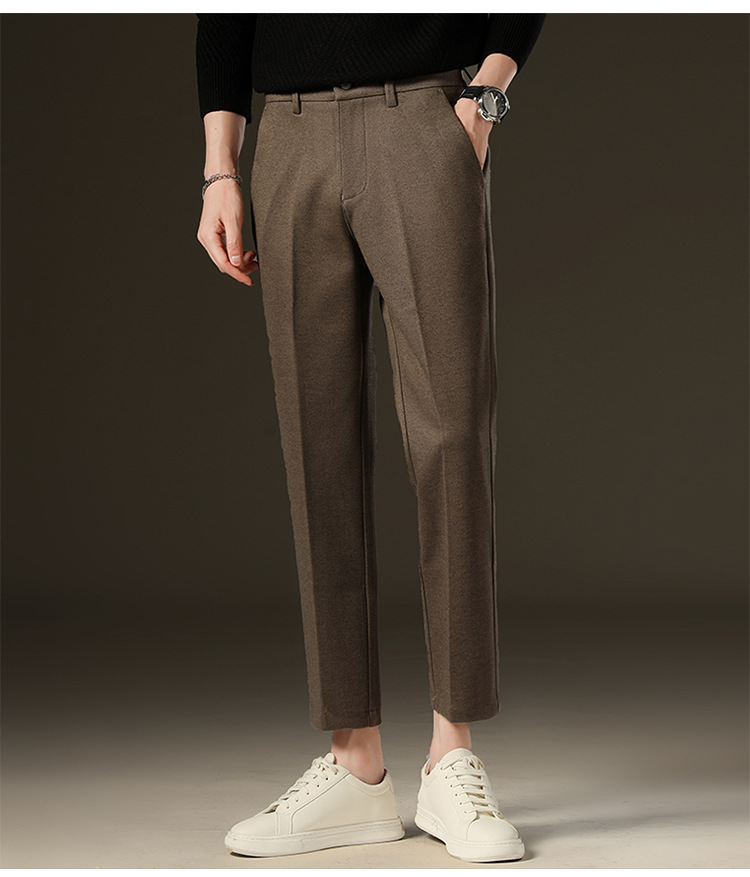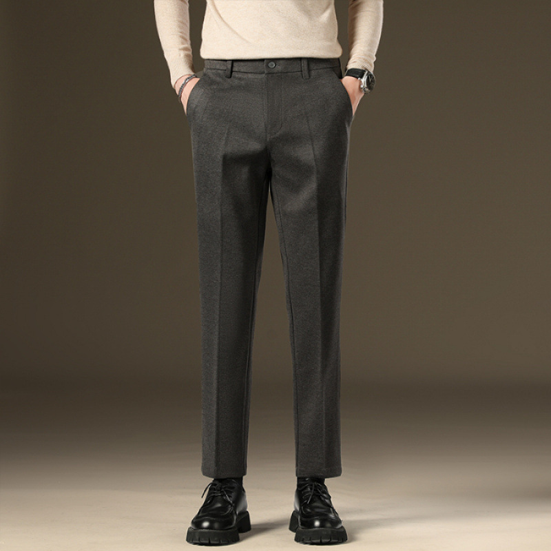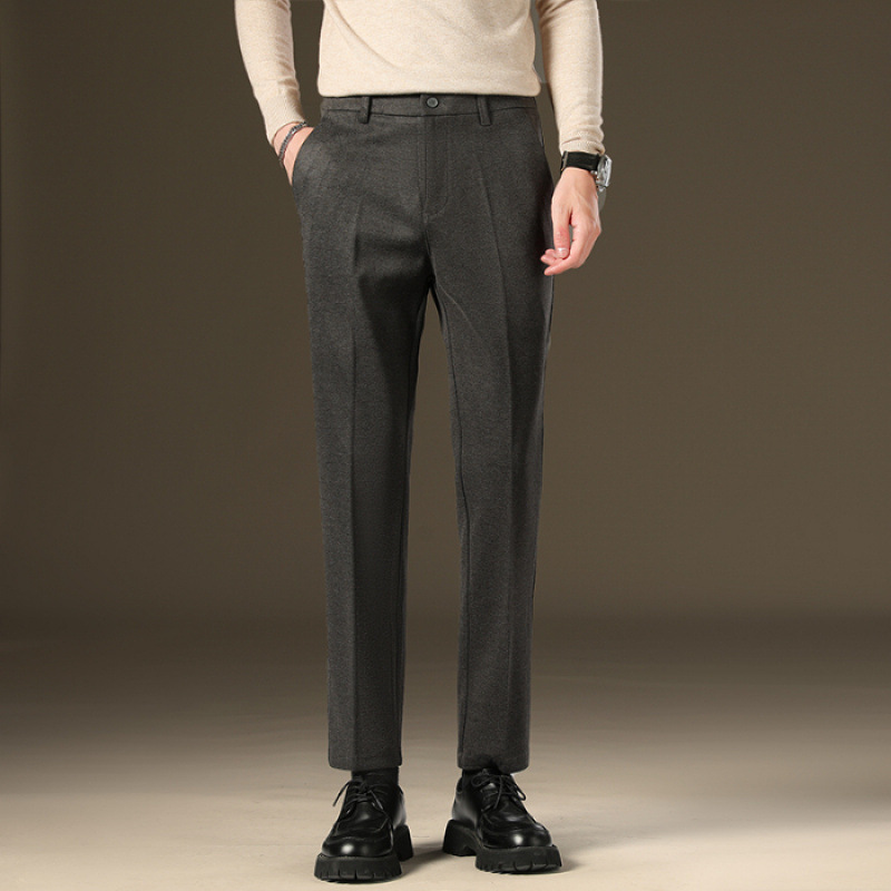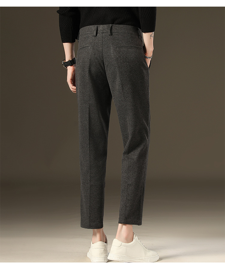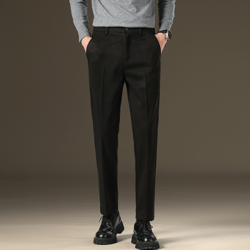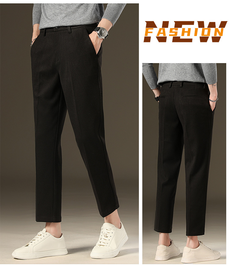 가을과 겨울 모직 작은 바지 직선 비 주름 방지 사업 원피스 9 점 캐주얼 바지 남성 기모 두꺼운 바지