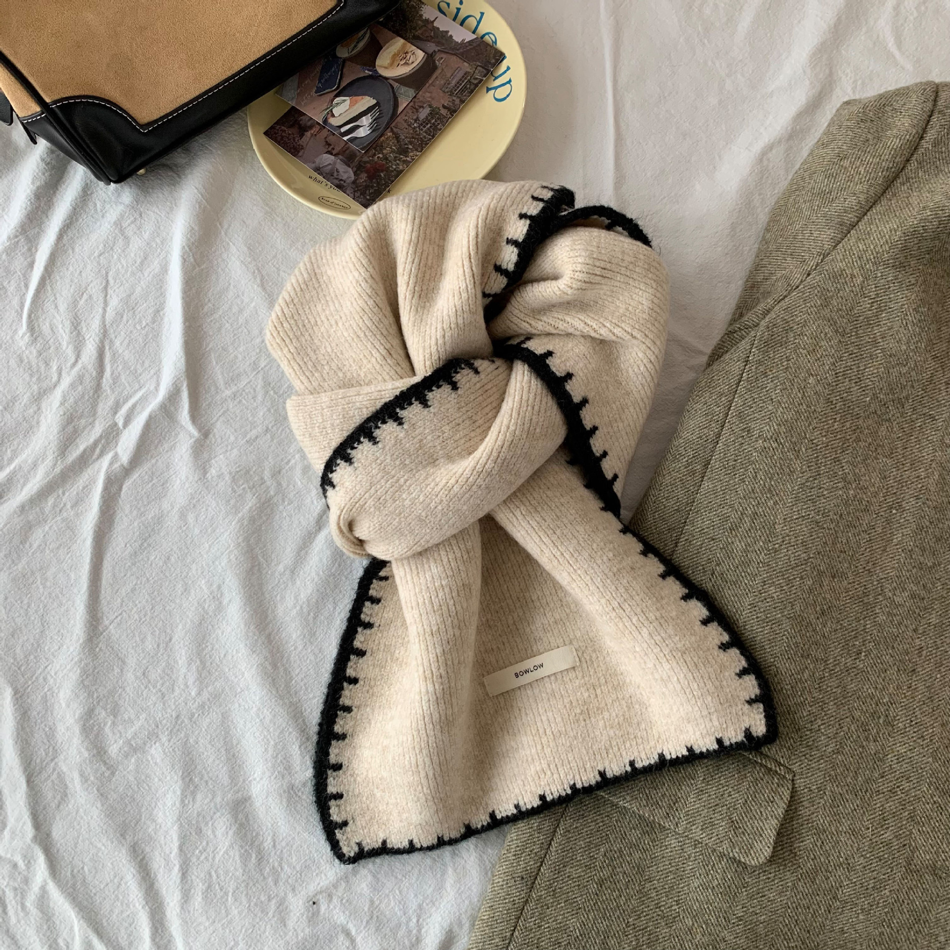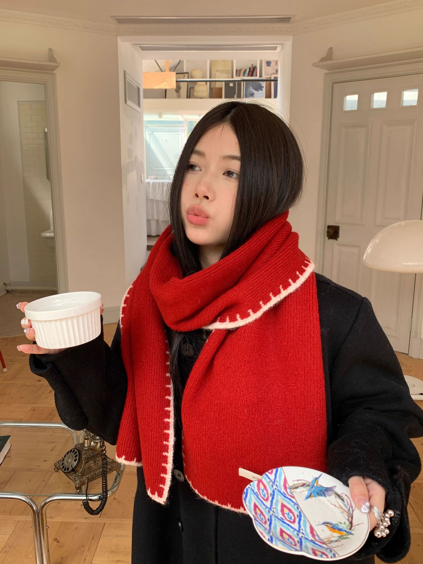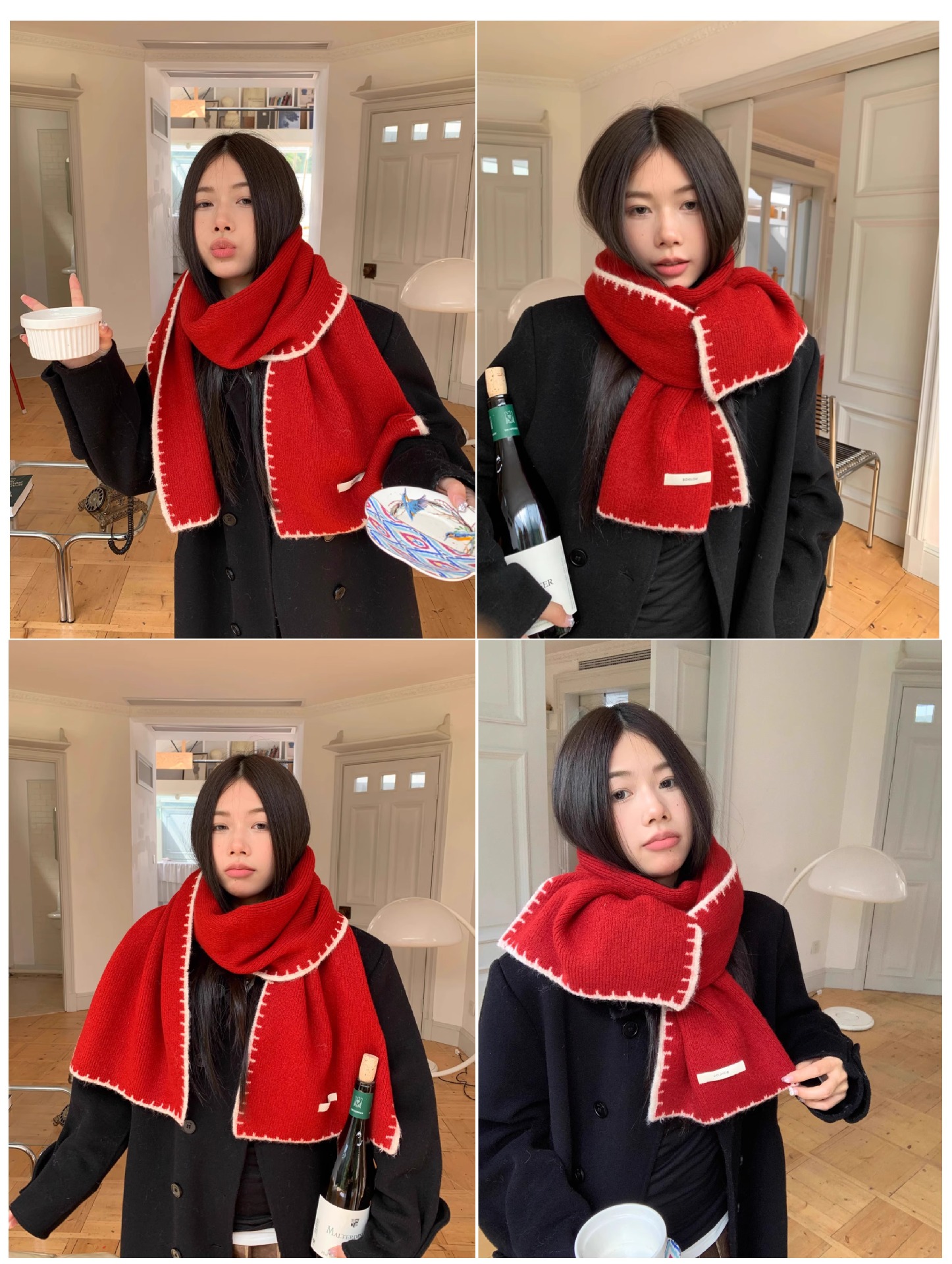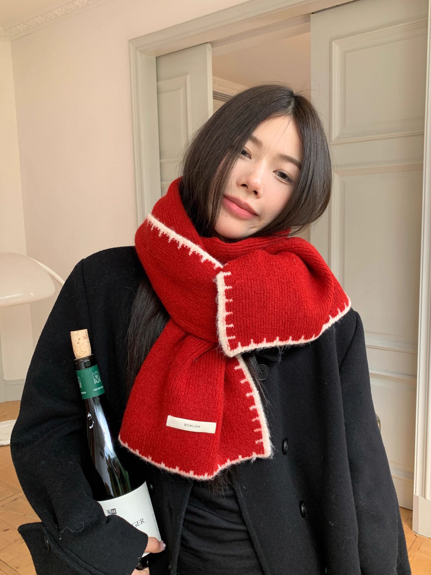 눈 덮인 크리스마스 레드 ~ 작은 샤넬 스타일 슈퍼 소프트 울 혼합 스카프 중공업 엣지 잠금 공예 올 매치 커플 스카프