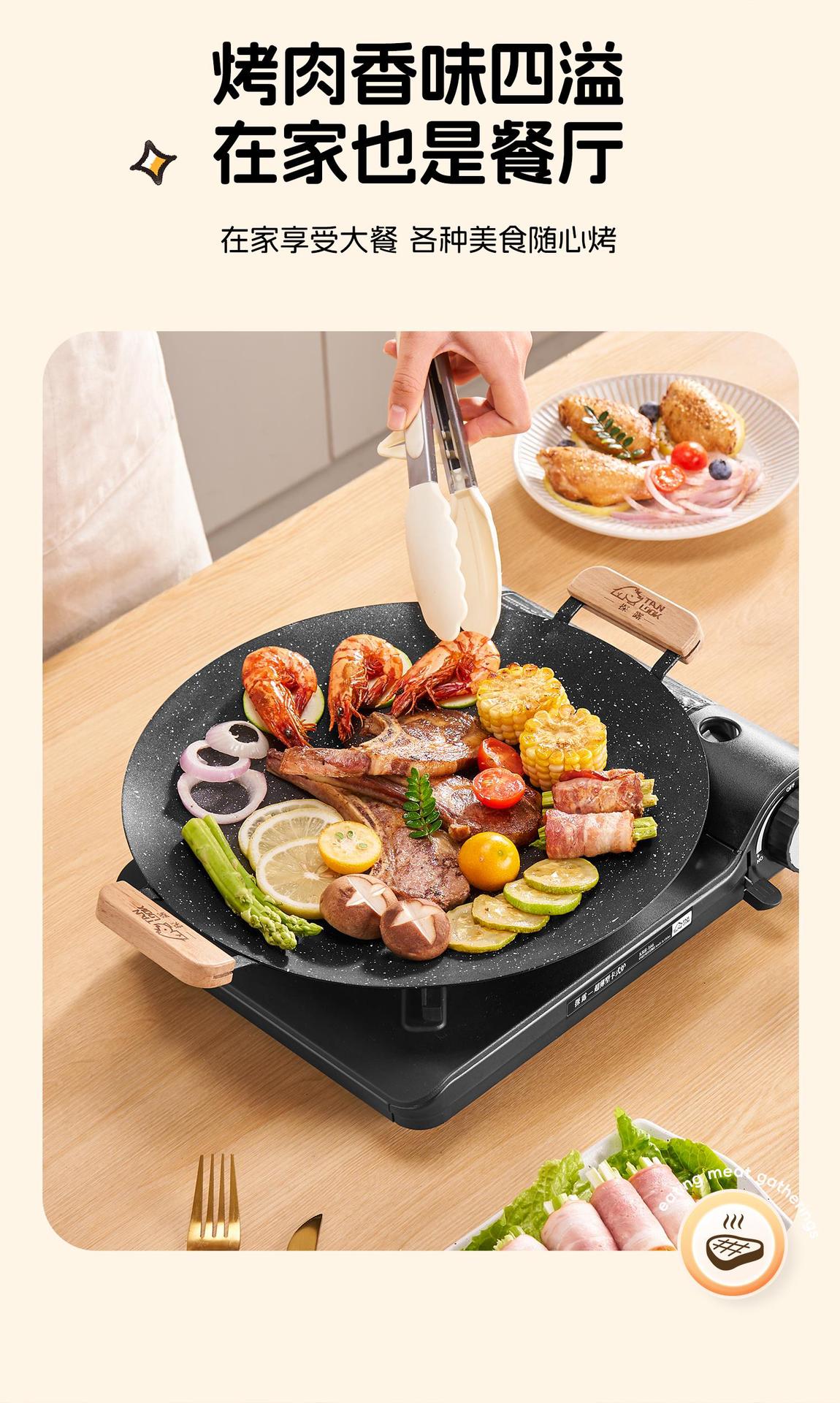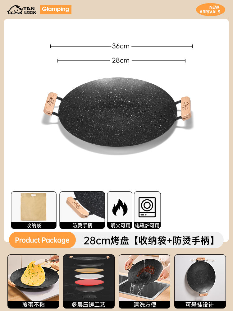 베이커웨어 가정용 유도 밥솥 한국식 바베큐 플레이트 야외 판지 스토브 바베큐 팬 휴대용 캠핑 철판 프라이팬스토어 가기
