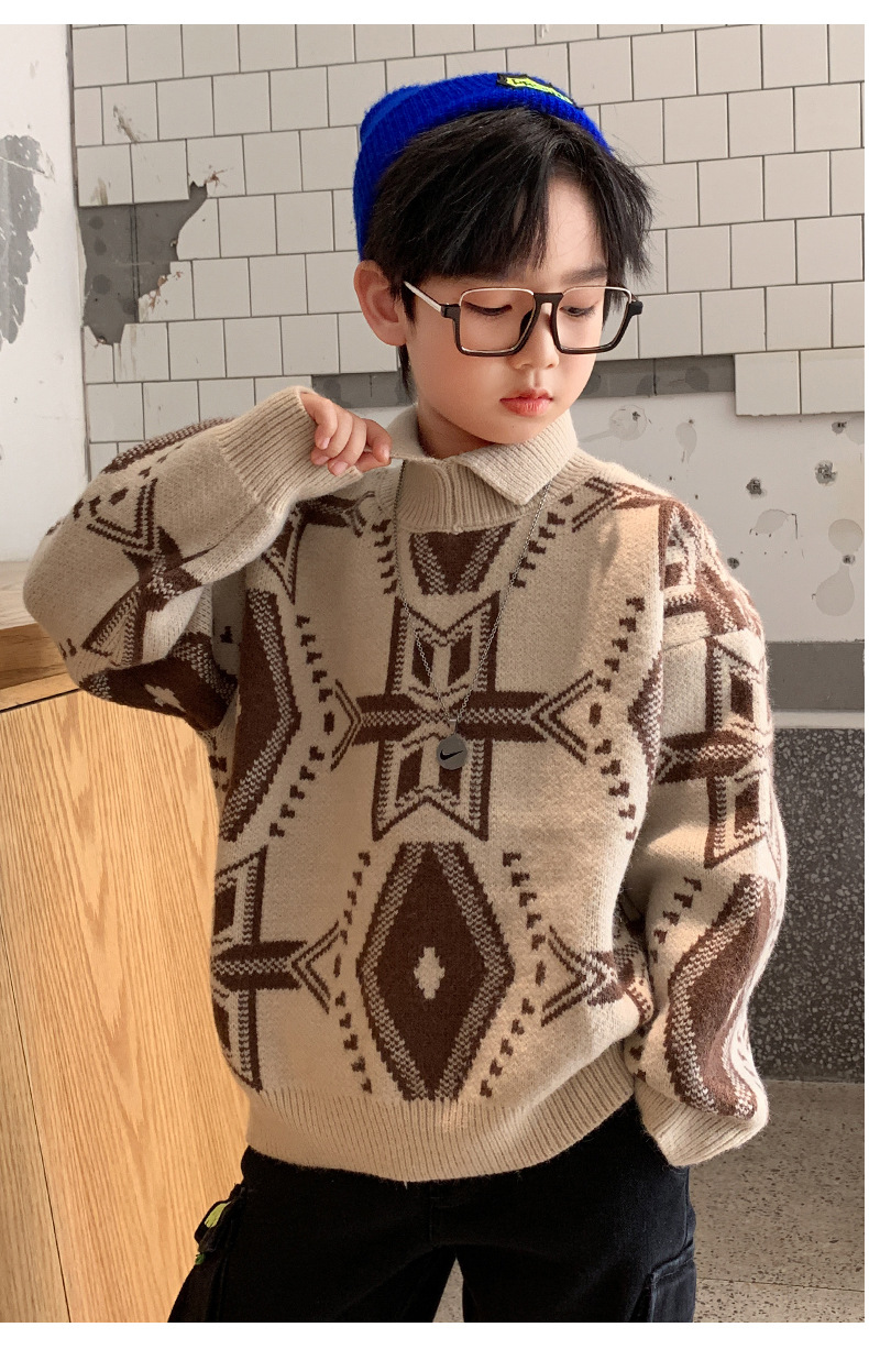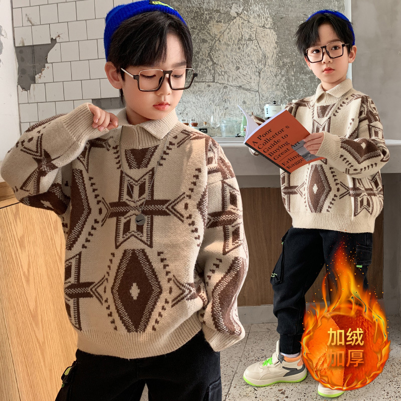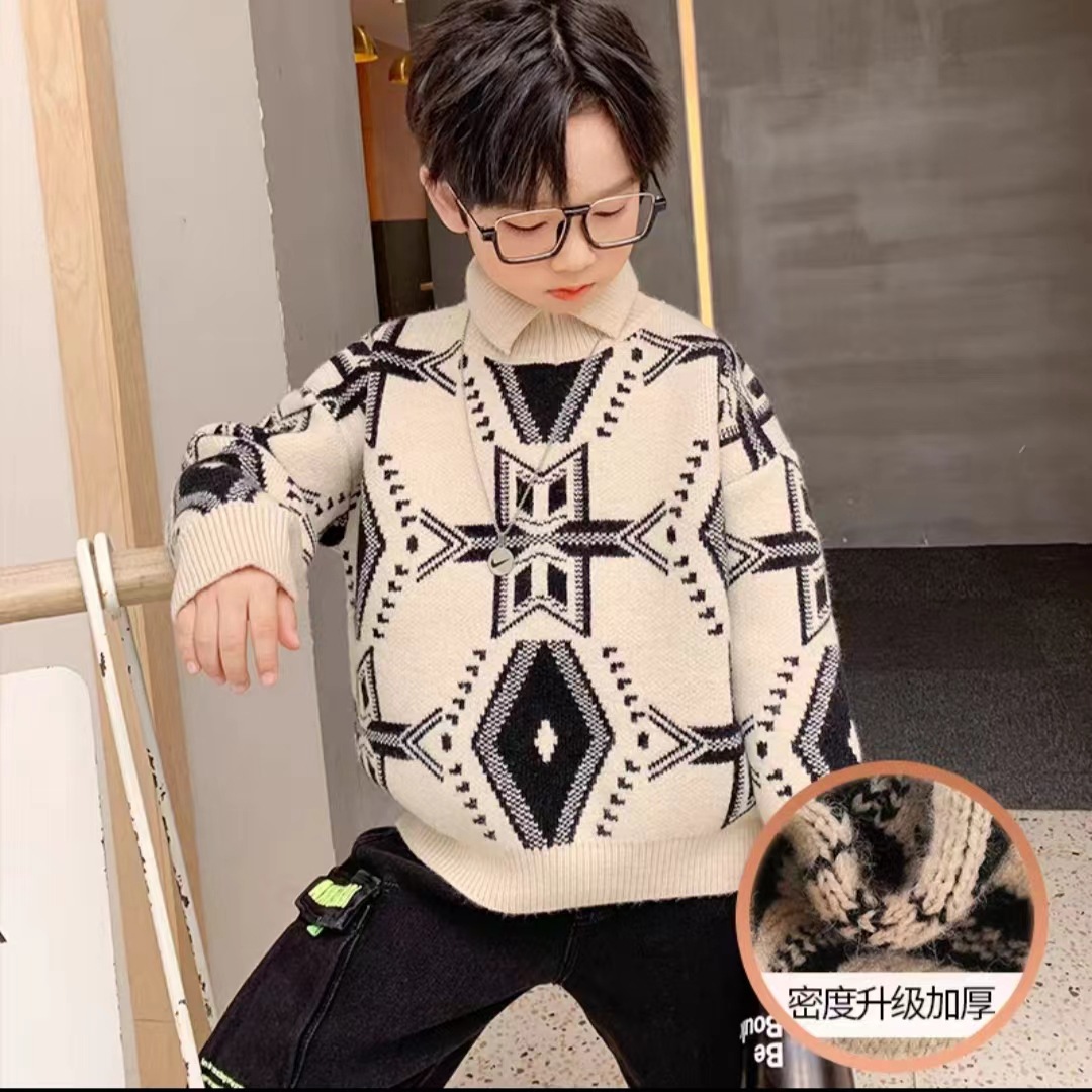 소년 스웨터 2024 새로운 가을과 겨울 어린이 겨울 소년 스웨터 기모 겨울베이스 셔츠