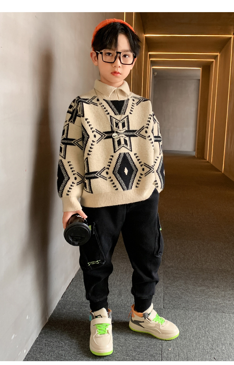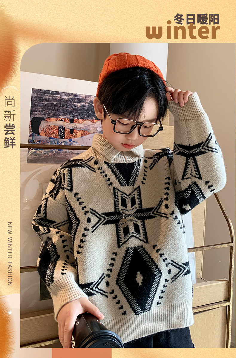 소년 스웨터 2024 새로운 가을과 겨울 어린이 겨울 소년 스웨터 기모 겨울베이스 셔츠스토어 가기
