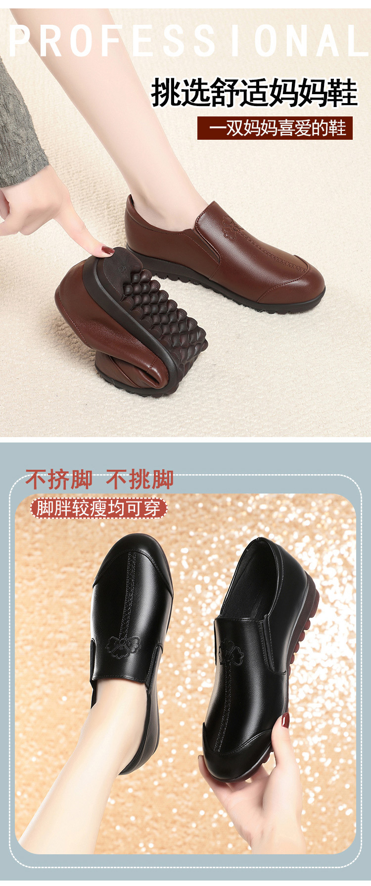 쇠고기 힘줄 바닥 부드러운 가죽 바닥 부드러운 표면 어머니 신발 봄과 가을 새로운 중년 가죽 신발 플러스 사이즈 여성 신발스토어 가기