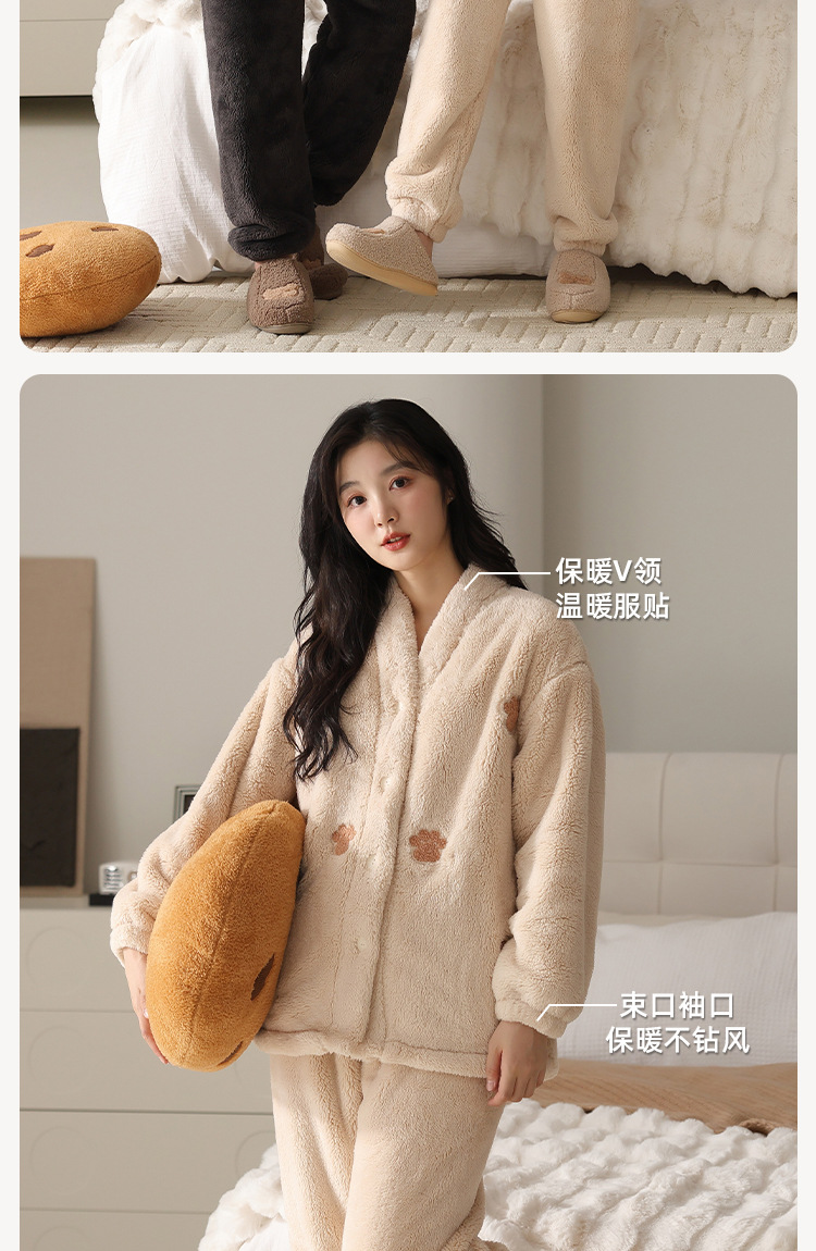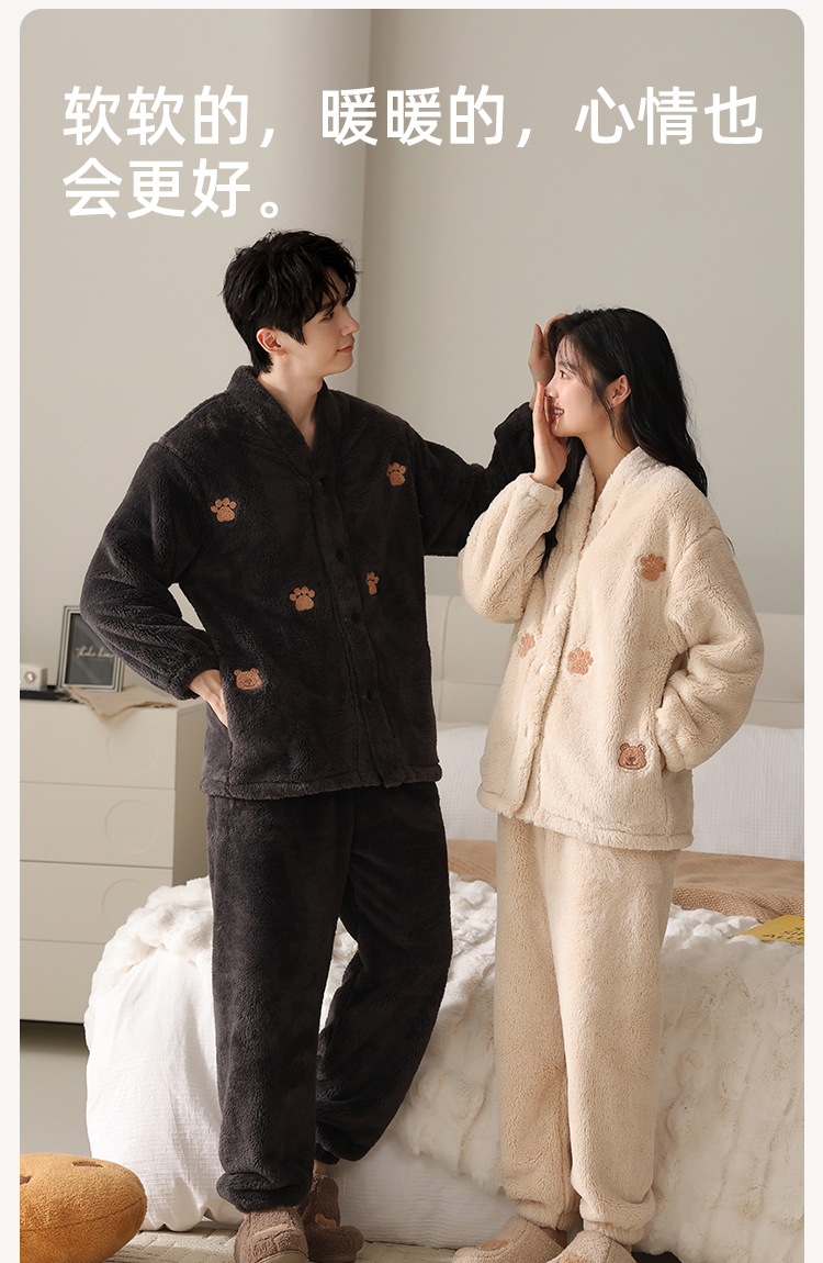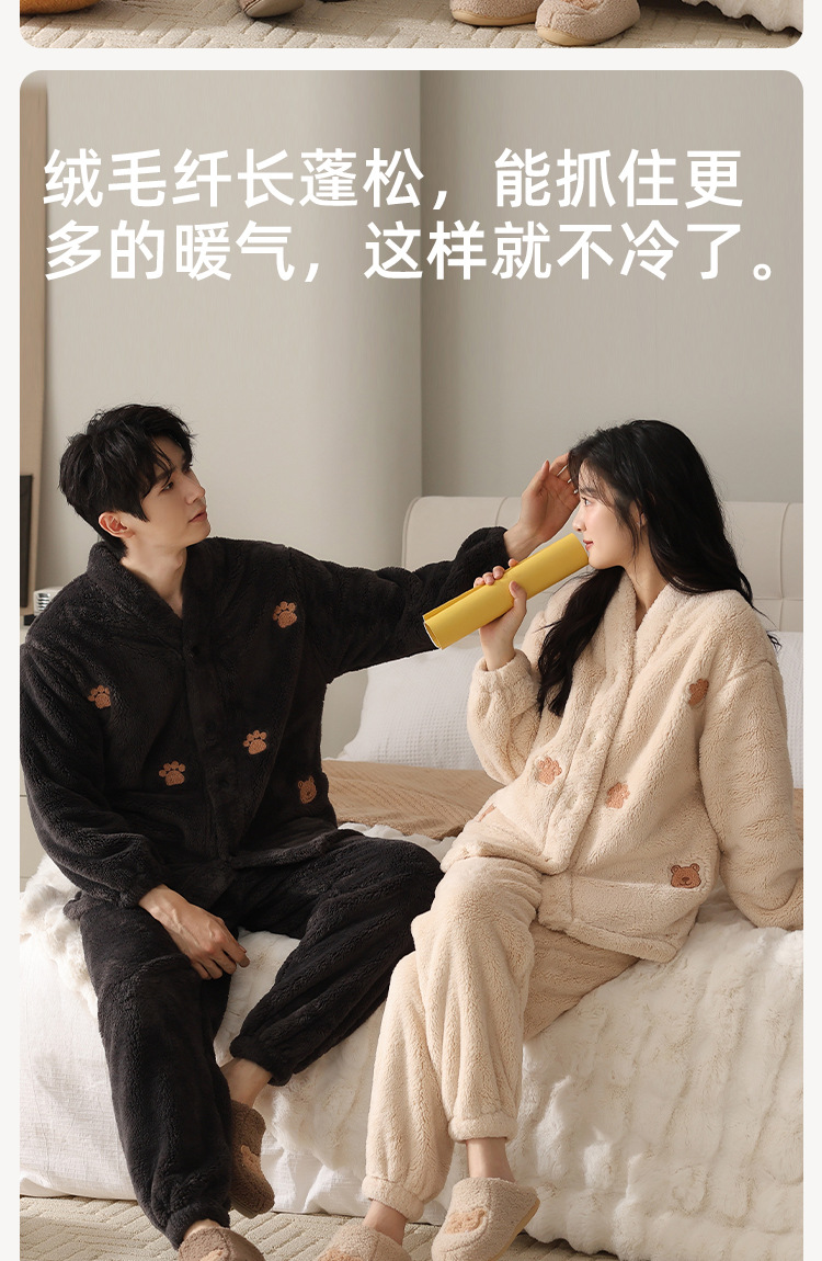 산호 벨벳 커플 잠옷 가을 겨울 신상 양면 두꺼운 세트 플란넬 가디건 남성 홈웨어