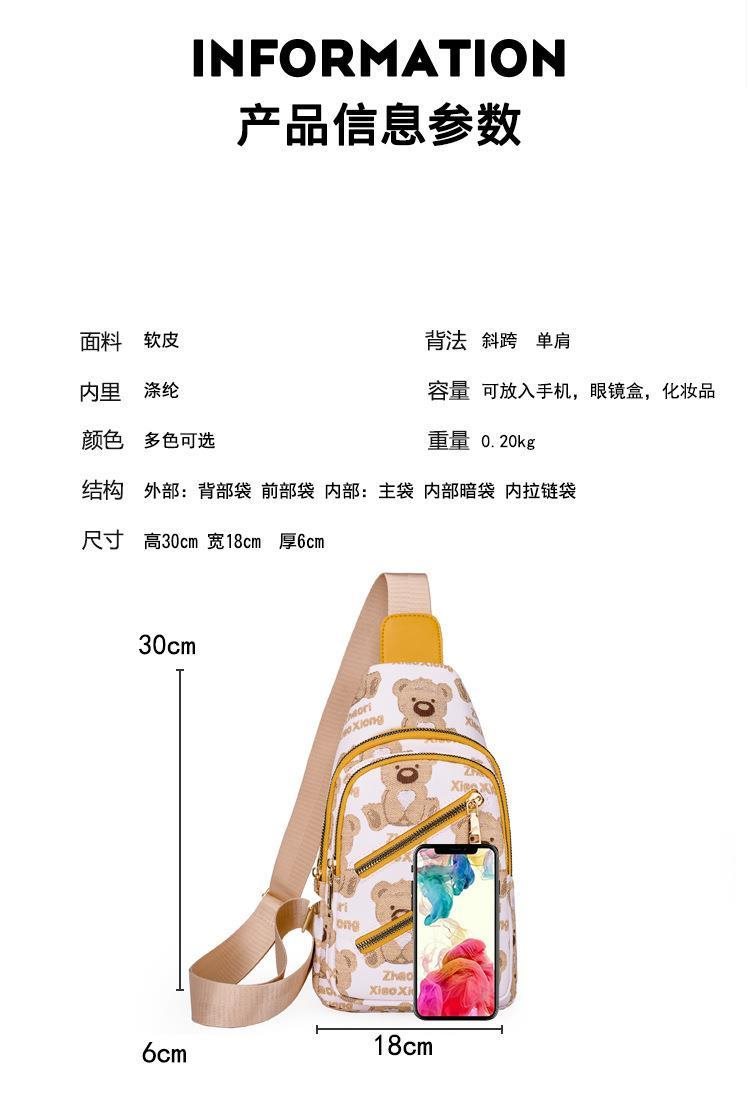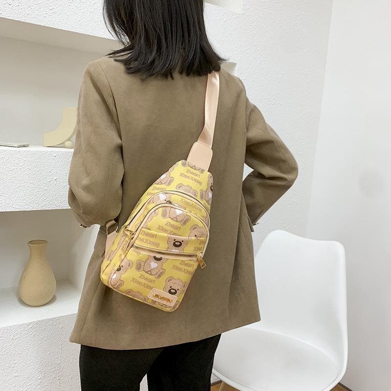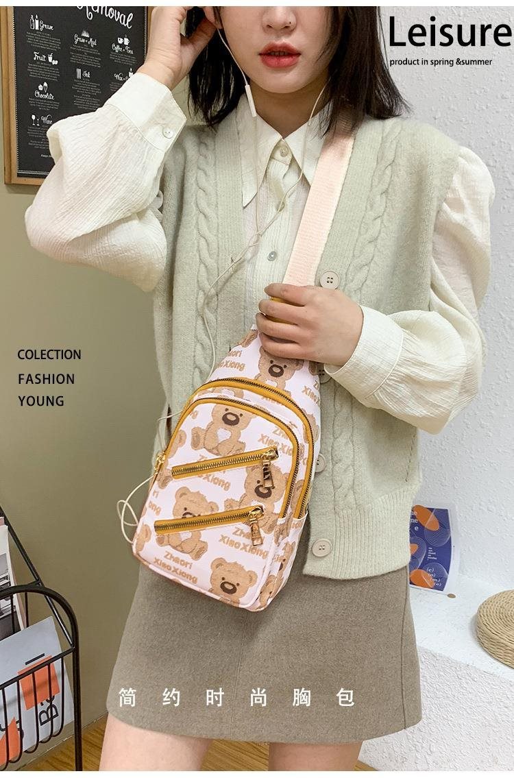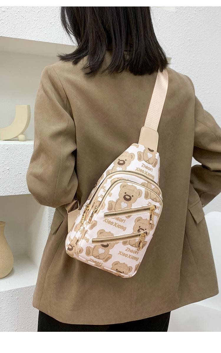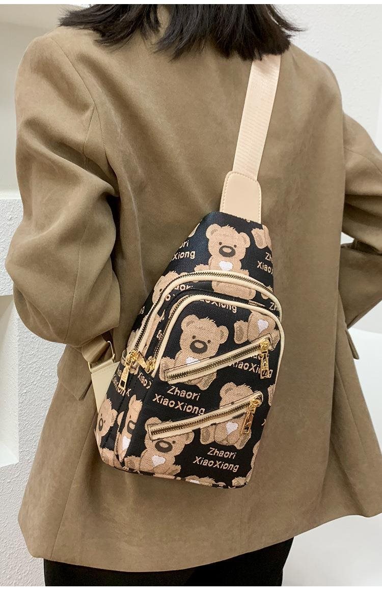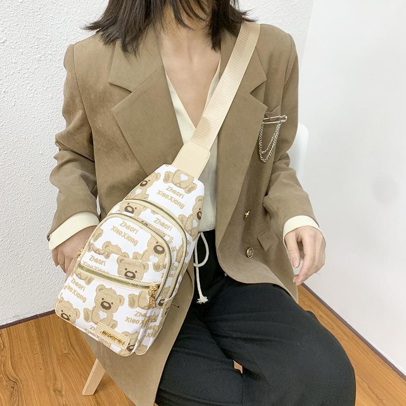 여성 가슴 가방 2023 새로운 패션 유행 곰 크로스 바디 가슴 가방 Instagram 스타일 만화 쇼핑 어깨 가방