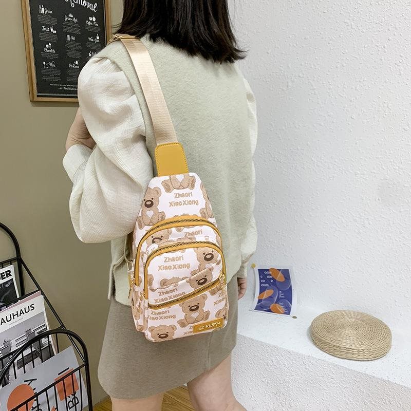 여성 가슴 가방 2023 새로운 패션 유행 곰 크로스 바디 가슴 가방 Instagram 스타일 만화 쇼핑 어깨 가방스토어 가기