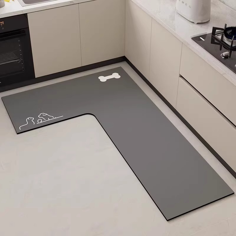 물 흡수 및 오일 흡수 Diatom Mud L 자형 주방 바닥 매트 2024 새로운 얼룩 방지 및 더러운 방지 발 매트는 닦고 씻을 수 없습니다.