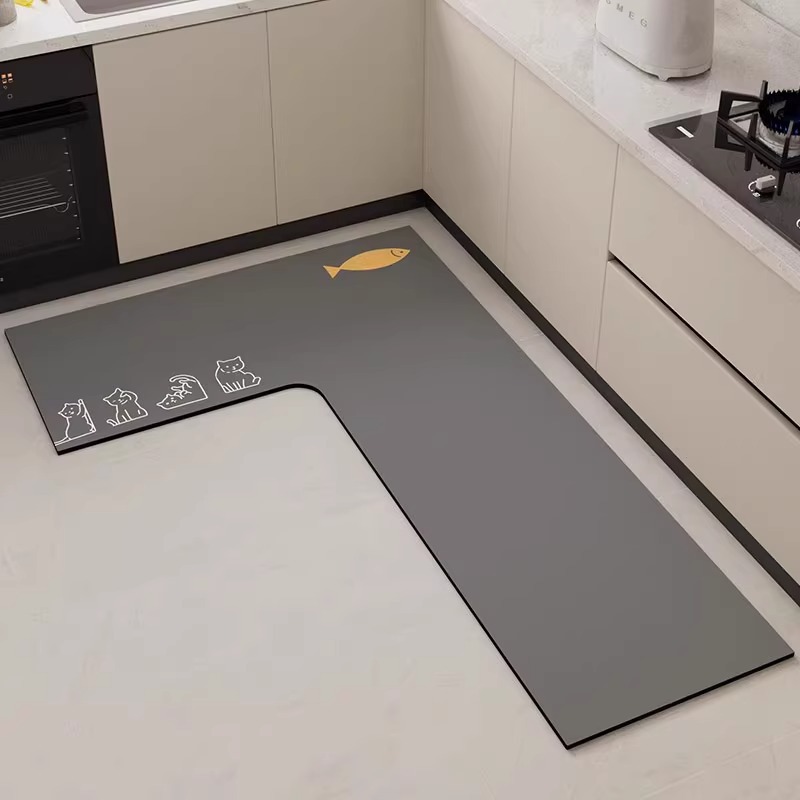 물 흡수 및 오일 흡수 Diatom Mud L 자형 주방 바닥 매트 2024 새로운 얼룩 방지 및 더러운 방지 발 매트는 닦고 씻을 수 없습니다.스토어 가기