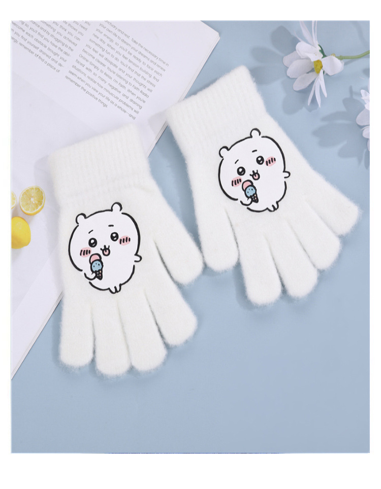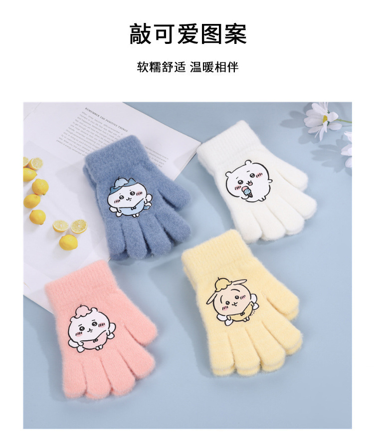 귀여운 만화 니트 다섯 손가락 장갑 어린이 겨울 감기 방지 터치 스크린 따뜻한 만화 가을과 겨울 학생들을위한 새로운 도착