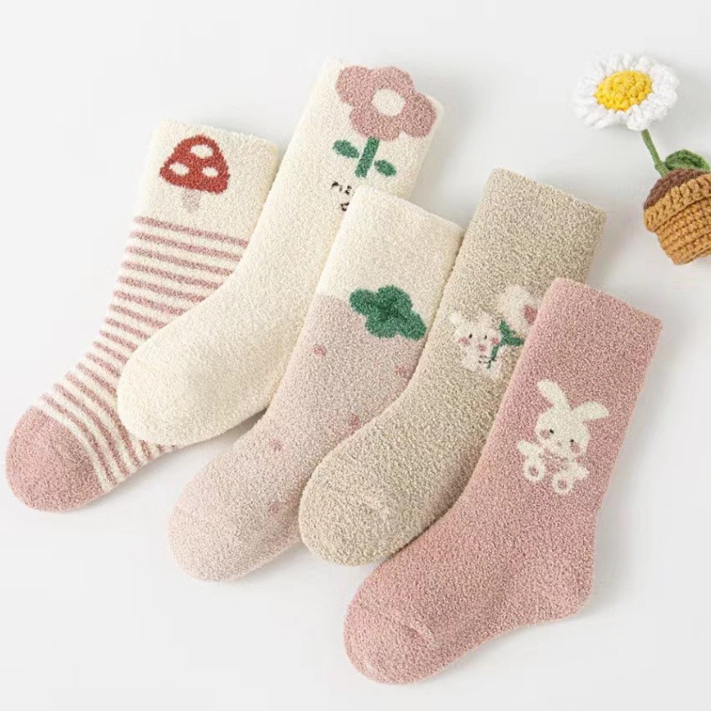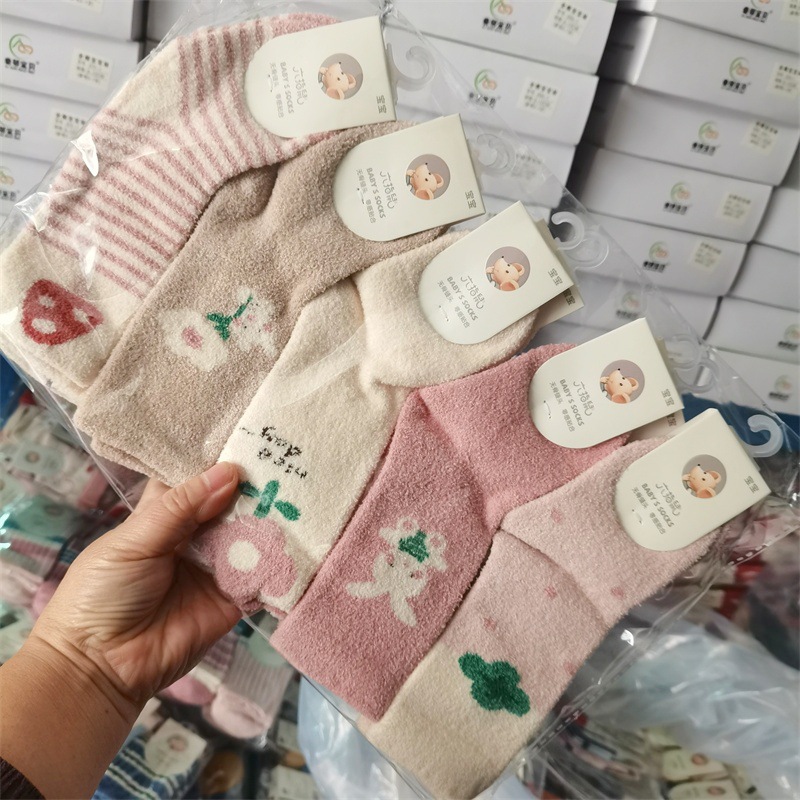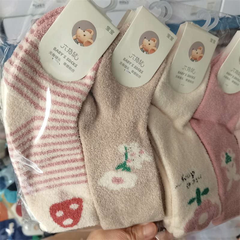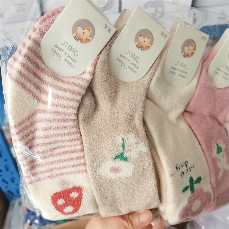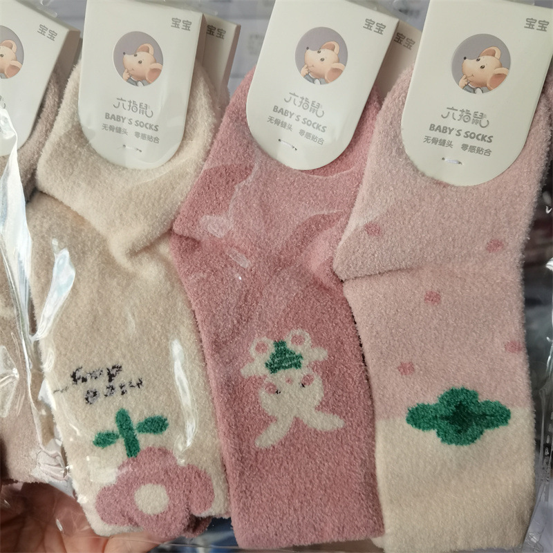 6 손가락 마우스 아기 겨울 산호 양털 긴 튜브 양말 여성 아기 뼈없는 긴 튜브 공주 종아리 양말 0-3 세