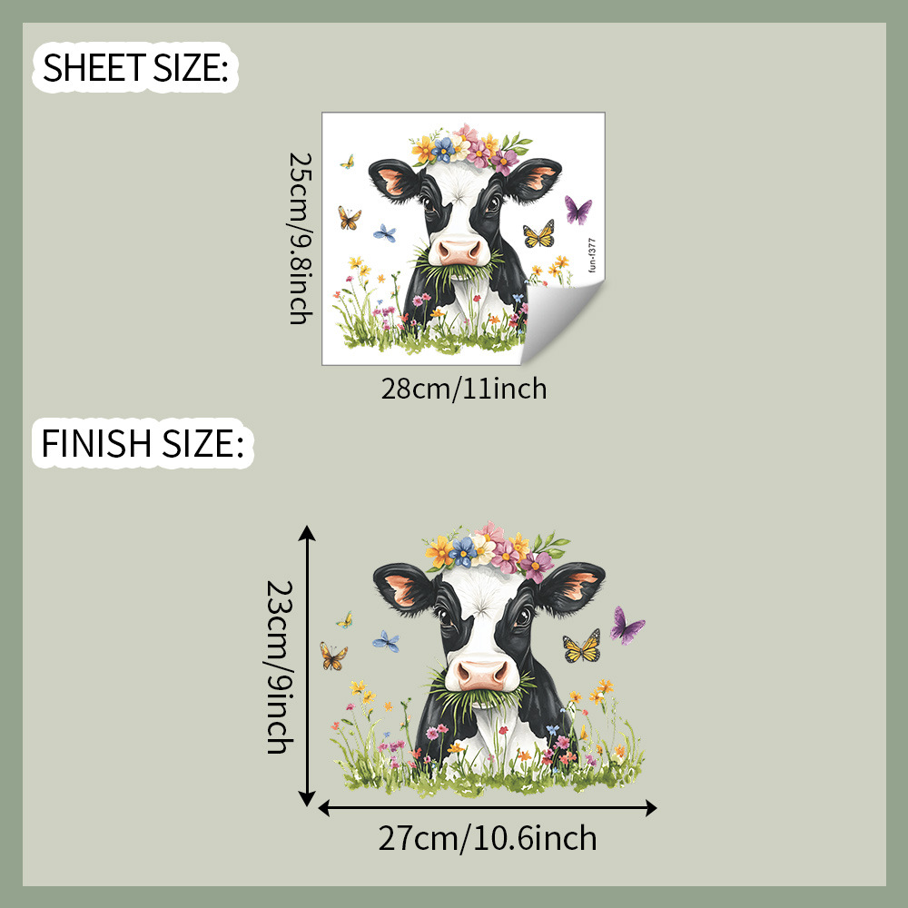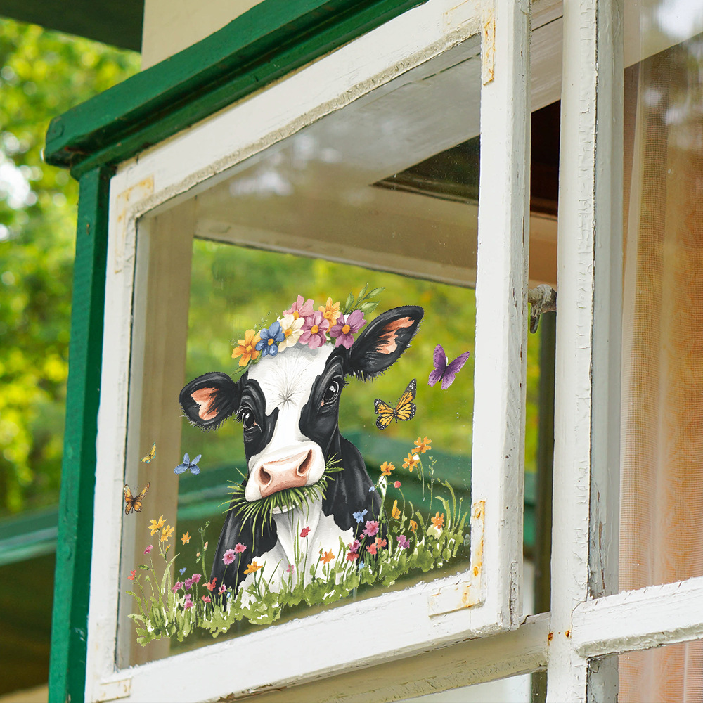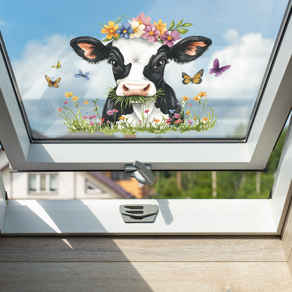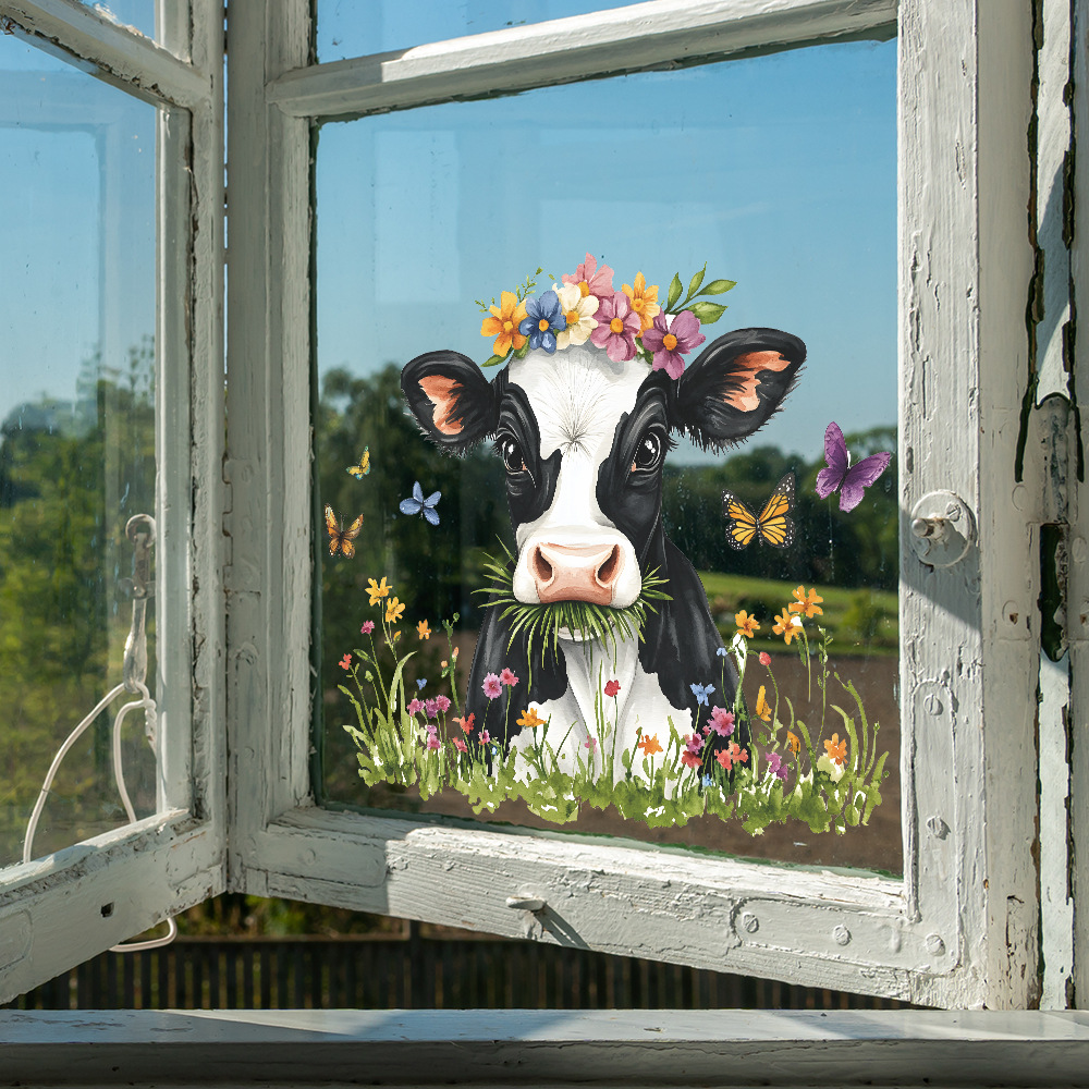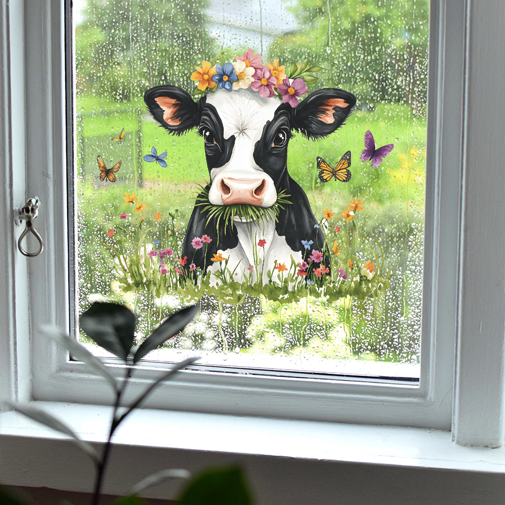 Fun-f377 소 꽃 나비 발코니 유리문과 창문 집 배경 미화 창 스티커 도매 자외선 정전기스토어 가기