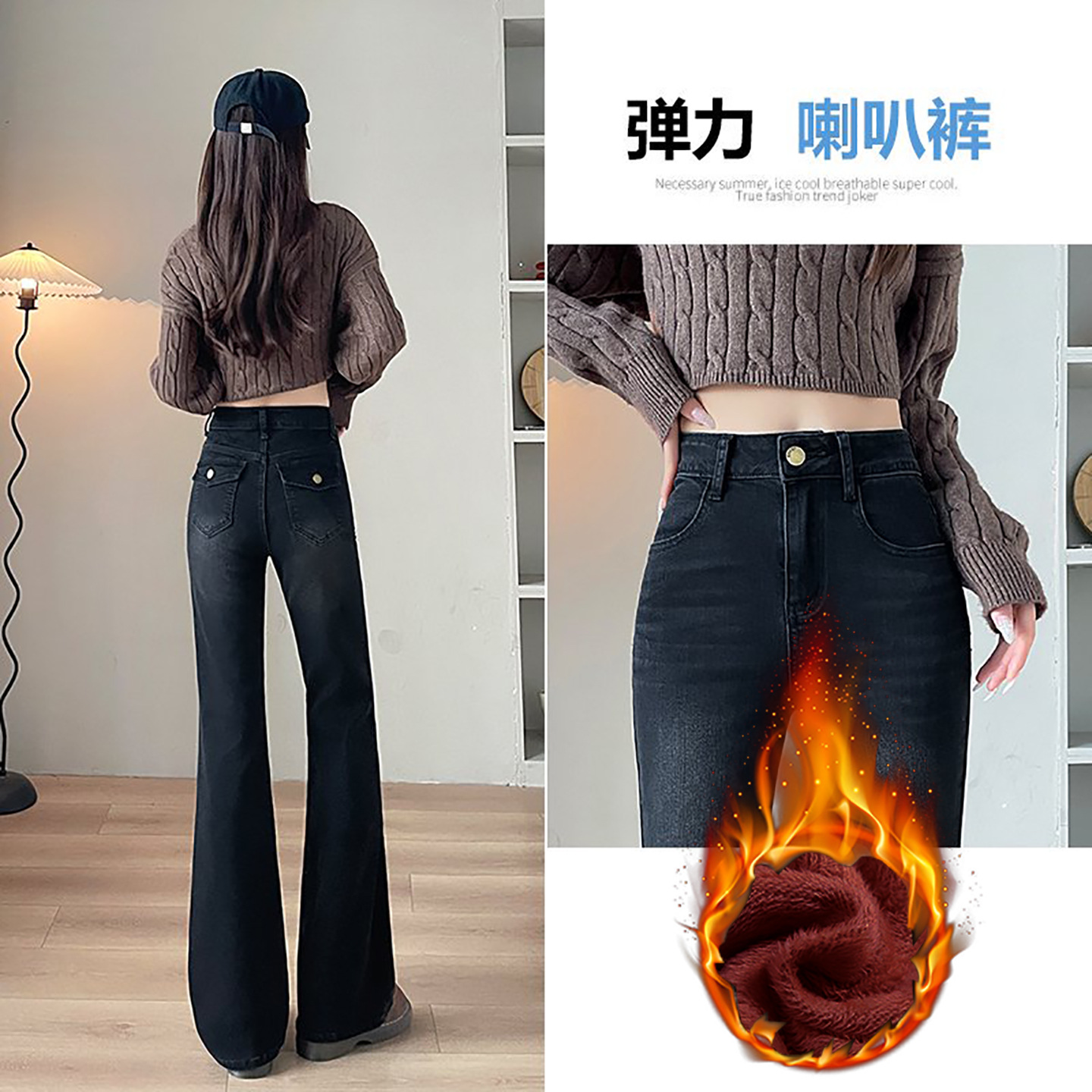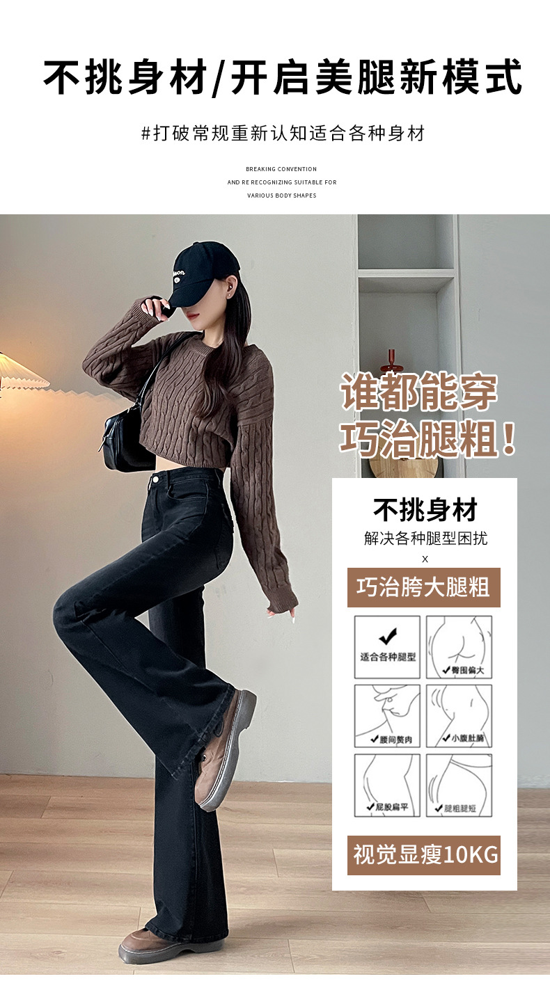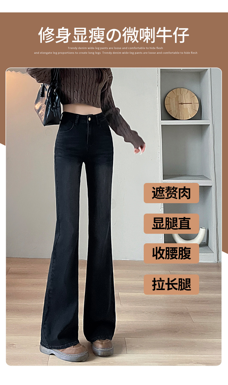 블랙 그레이 하이웨이스트 부츠컷 플리스 데님 팬츠 여성용 가을 겨울 2025 신상 슬림핏 소녀용 말굽형 바지스토어 가기