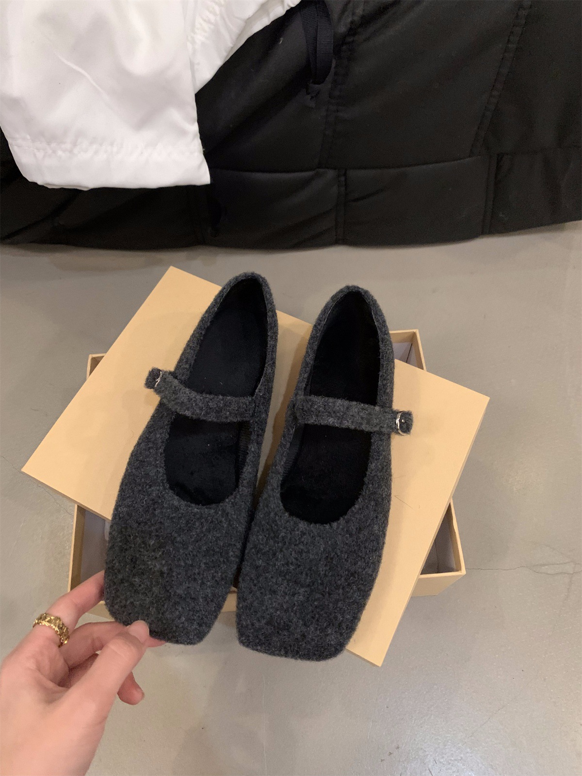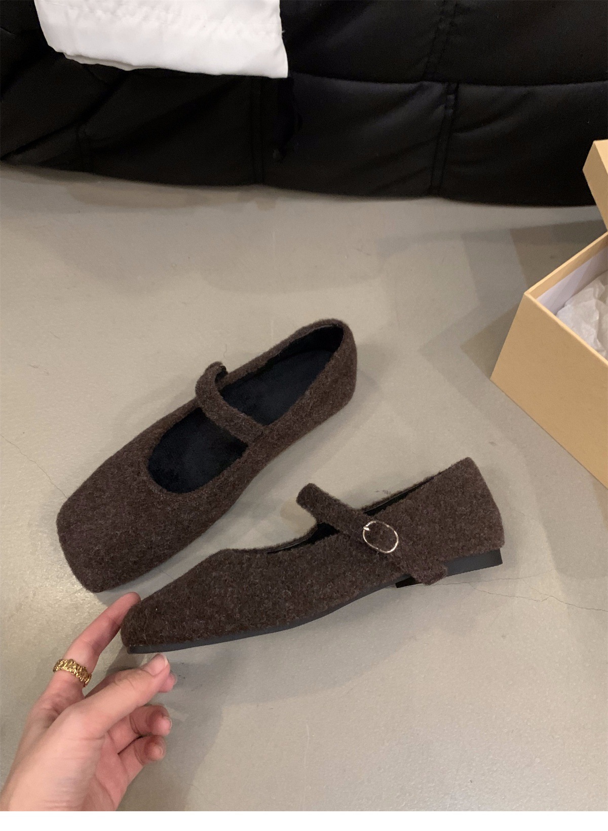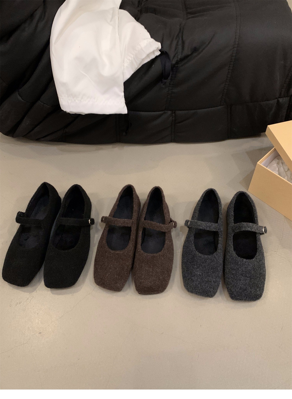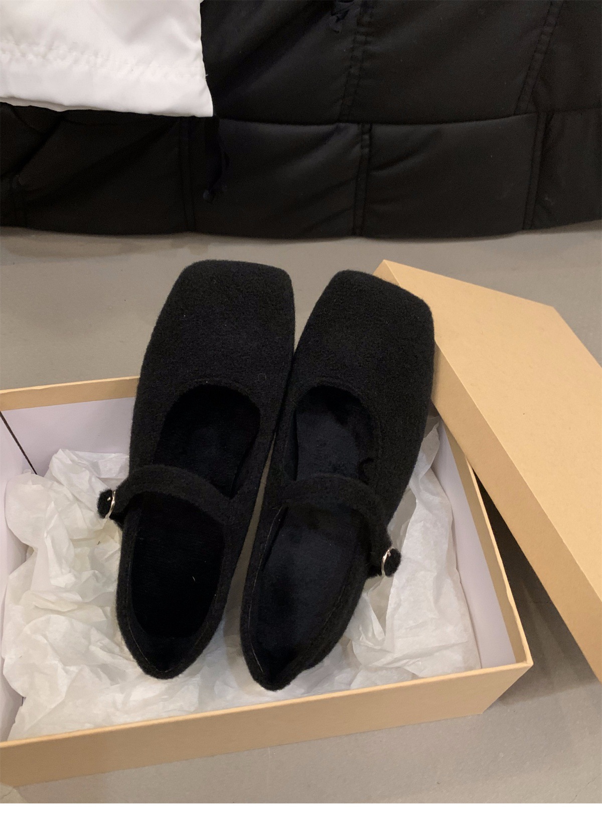 편평한 한국판 메리 제인 신발 여성 신발 2024 새로운 가을과 겨울 검은 부드러운 조커 기모 마오 마오 신발스토어 가기