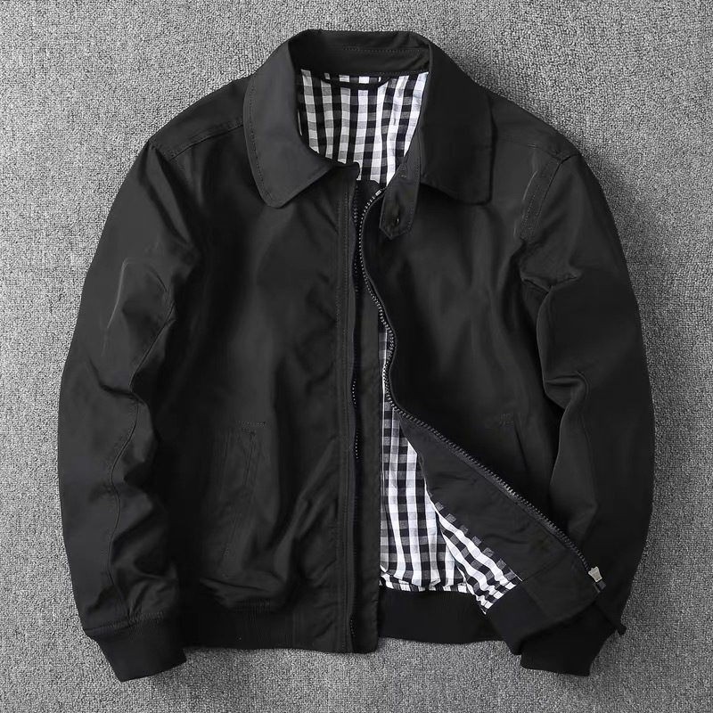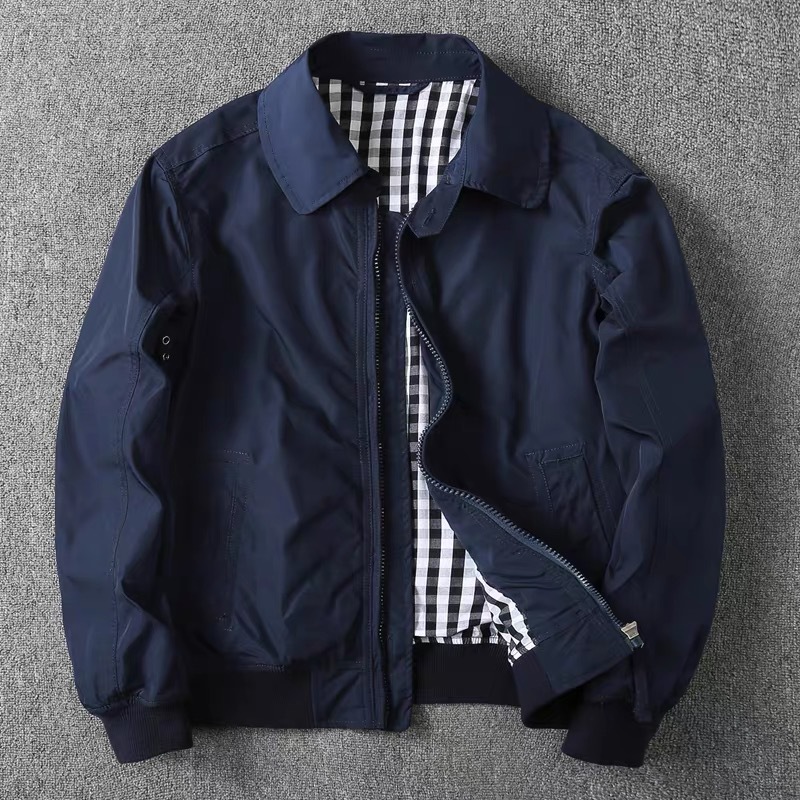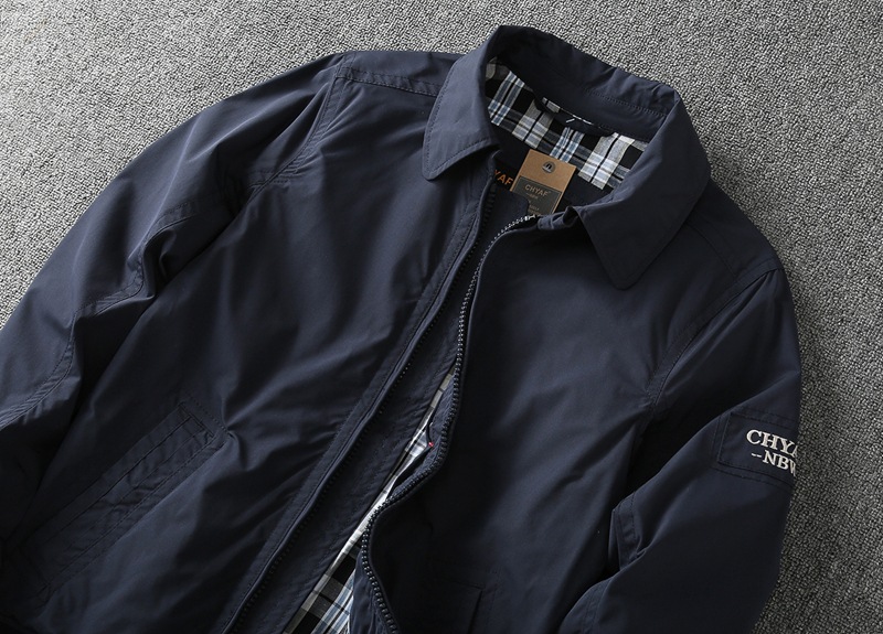가을과 겨울 남성 윈드 브레이커 비즈니스 캐주얼 올 매치 슬림 핏 옷깃 솔리드 컬러 더블 레이어 재킷 중년 남성 의류스토어 가기