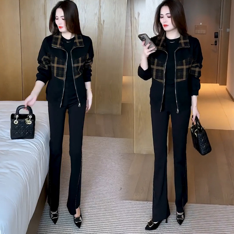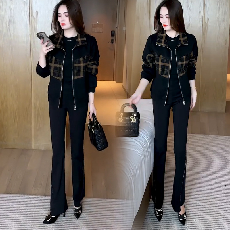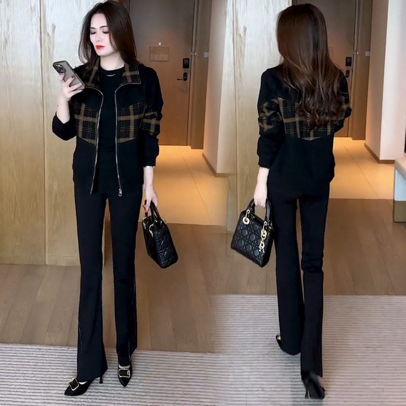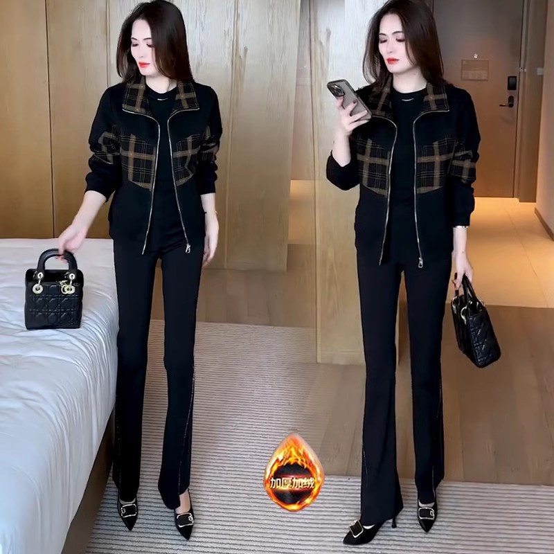 패션 캐주얼 격자 무늬 재킷 여성의 2024 가을/겨울 기모 두꺼운 서양식 슬리밍 조커 나이를 줄이는 재킷 탑