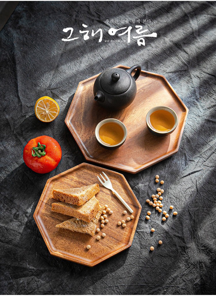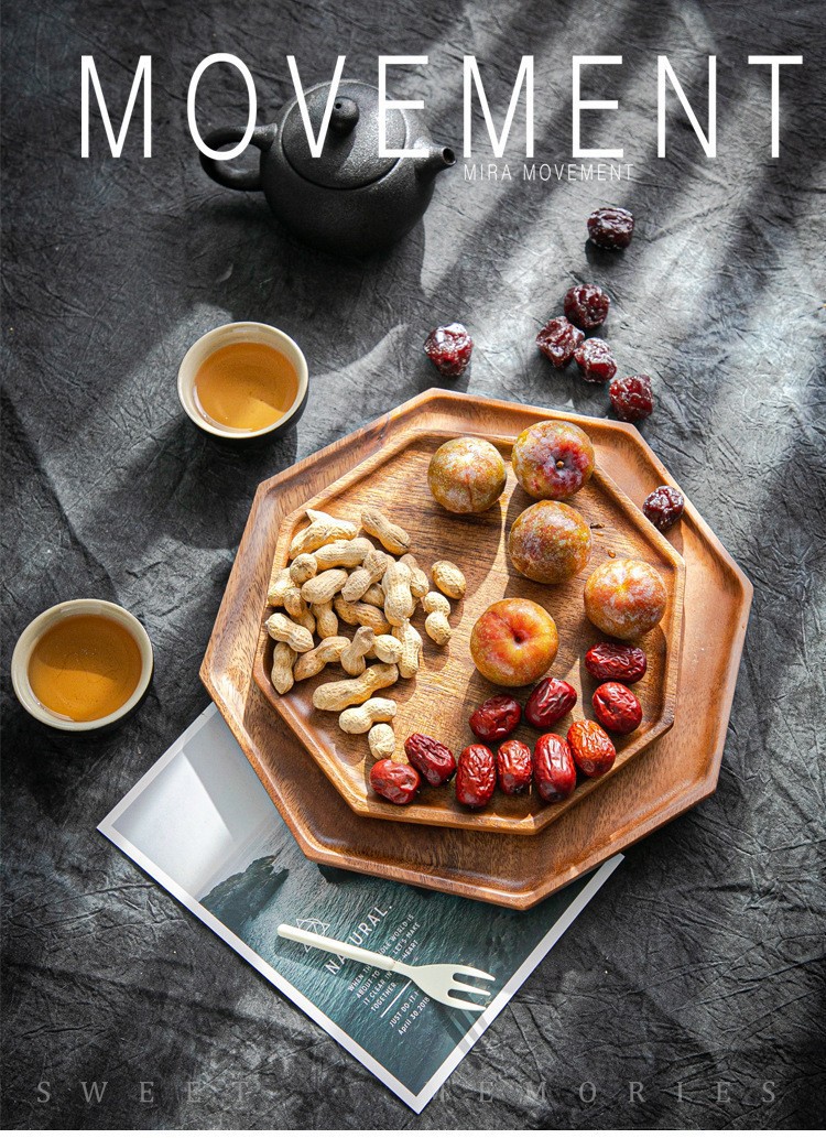 호두나무 팔각형 과일 차 트레이 거실용 심플 모던 가정용 컵 받침대 통나무 트레이 샐러드 접시 원목스토어 가기