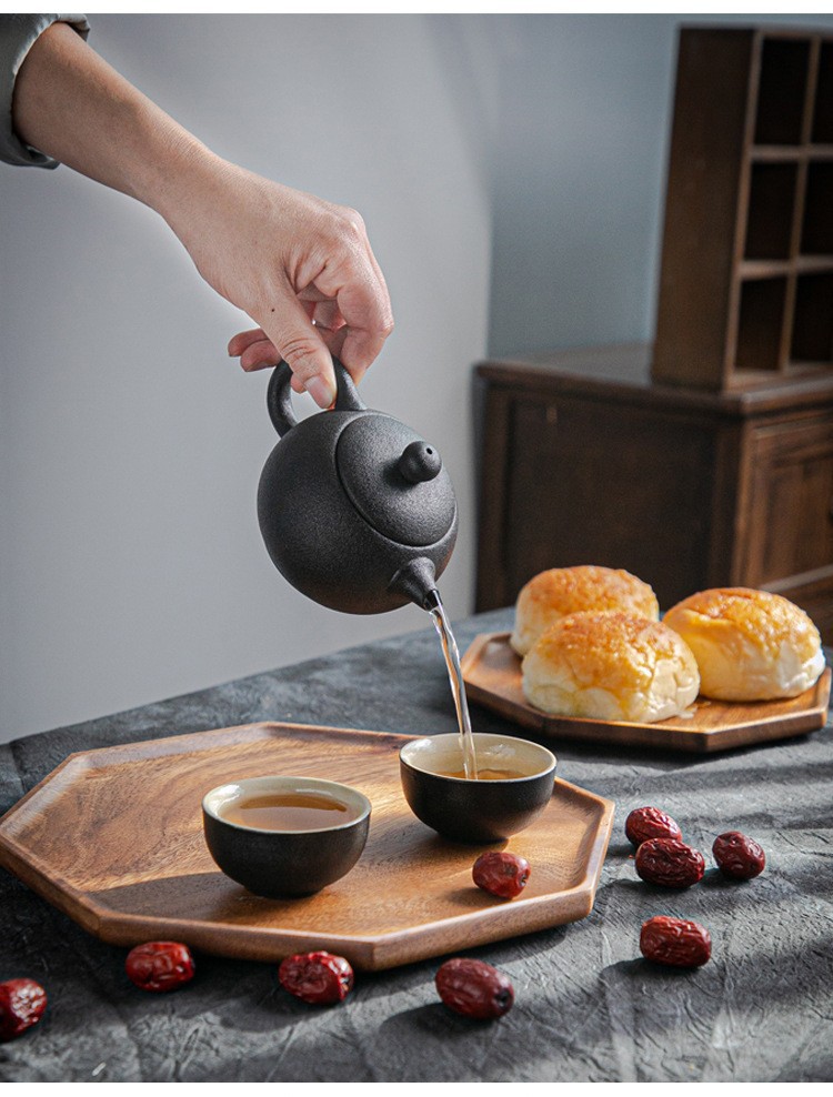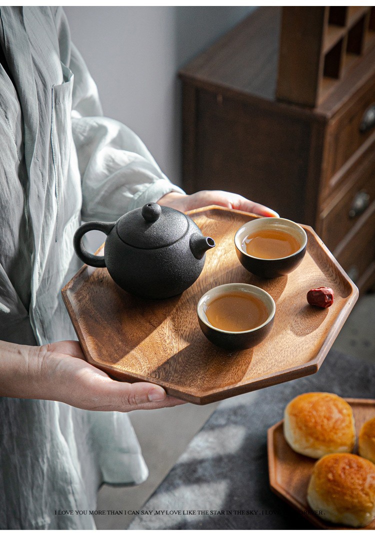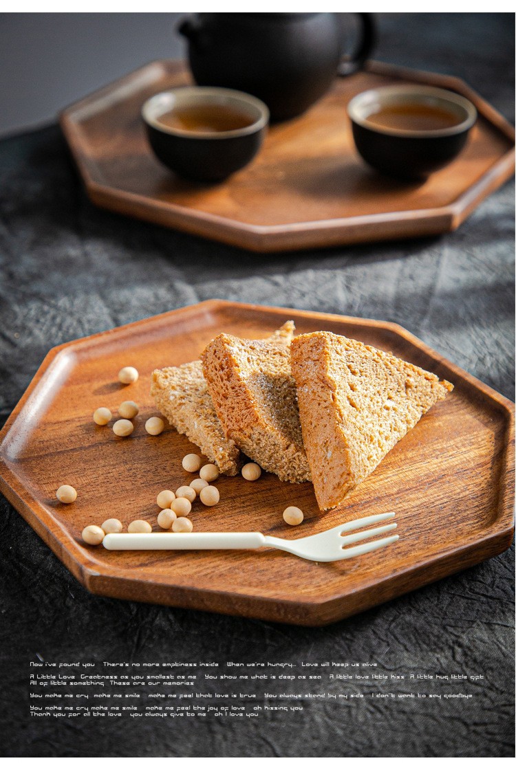호두나무 팔각형 과일 차 트레이 거실용 심플 모던 가정용 컵 받침대 통나무 트레이 샐러드 접시 원목