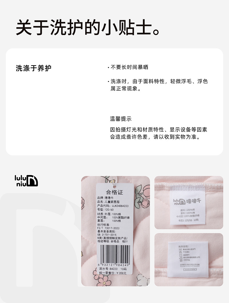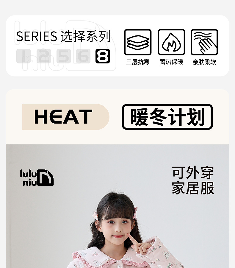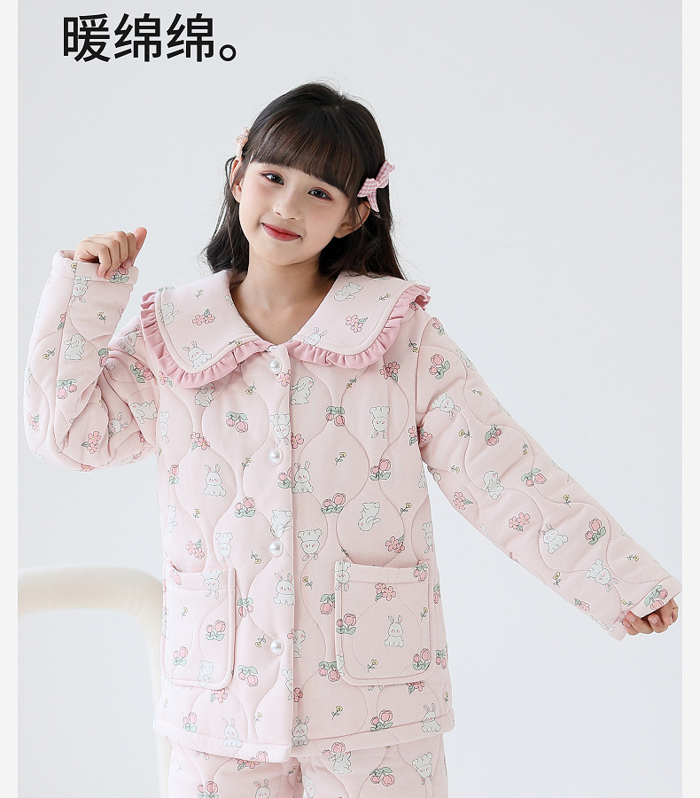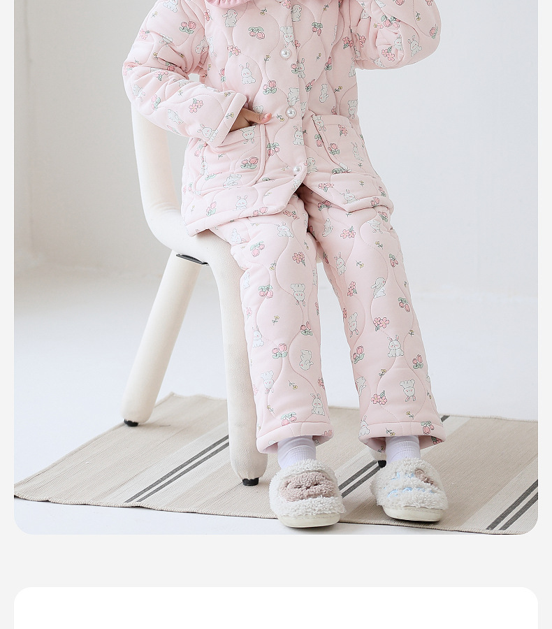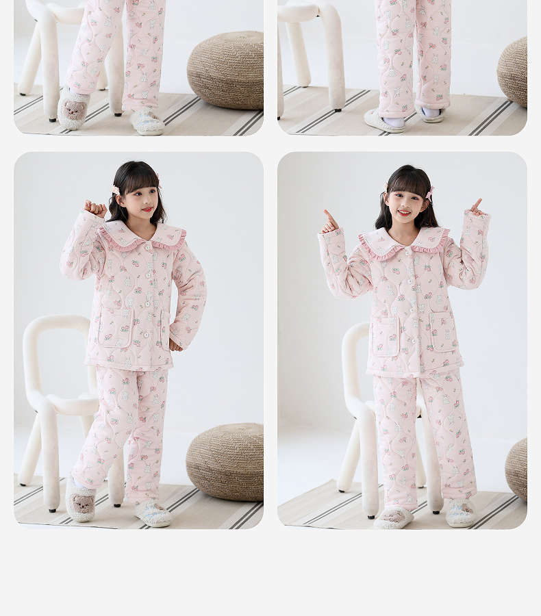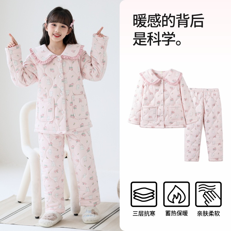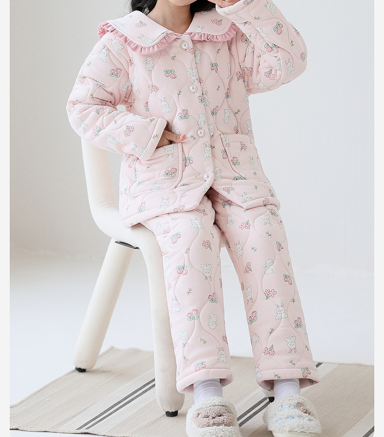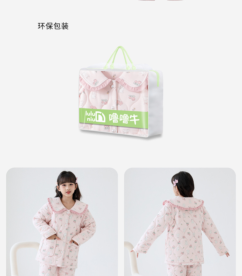 룰루 니우 어린이 잠옷 여자 겨울 순면 3 층 면 큰 어린이 2024 가을 겨울 두꺼운 여자 홈 옷