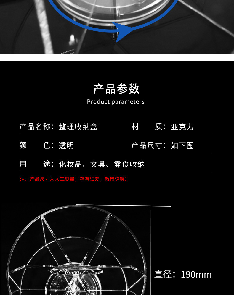 국경 투명 아크릴 360 ° 회전 펜 홀더 저장 상자 데스크탑 사무용품 화장품 랙