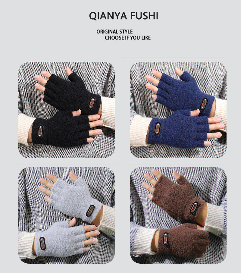 남자 반 손가락 장갑 겨울 따뜻한 열린 손가락 니트 장갑 차가운 사이클링 글쓰기 장갑 제조 업체 도매스토어 가기