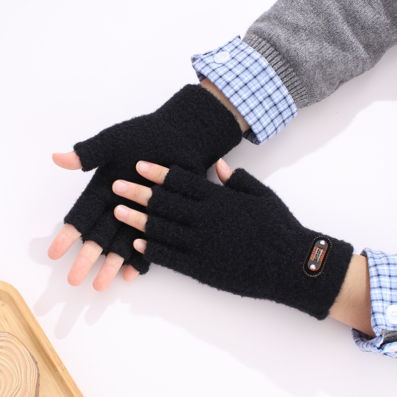 남자 반 손가락 장갑 겨울 따뜻한 열린 손가락 니트 장갑 차가운 사이클링 글쓰기 장갑 제조 업체 도매