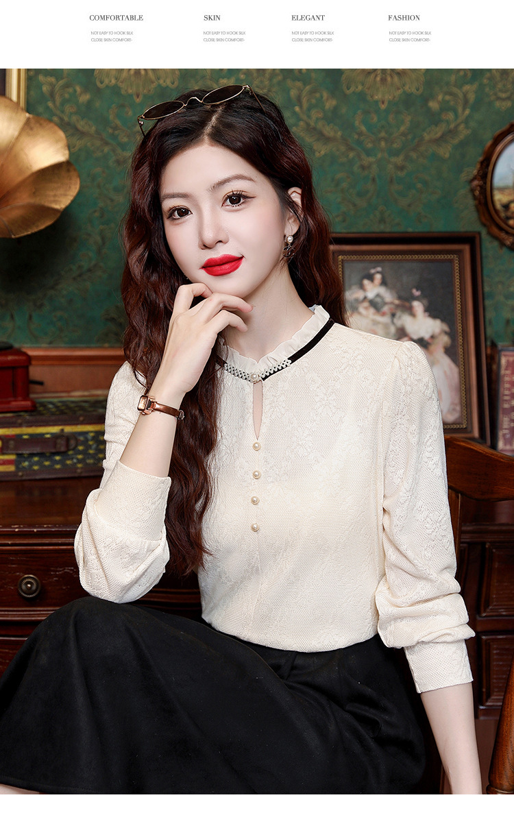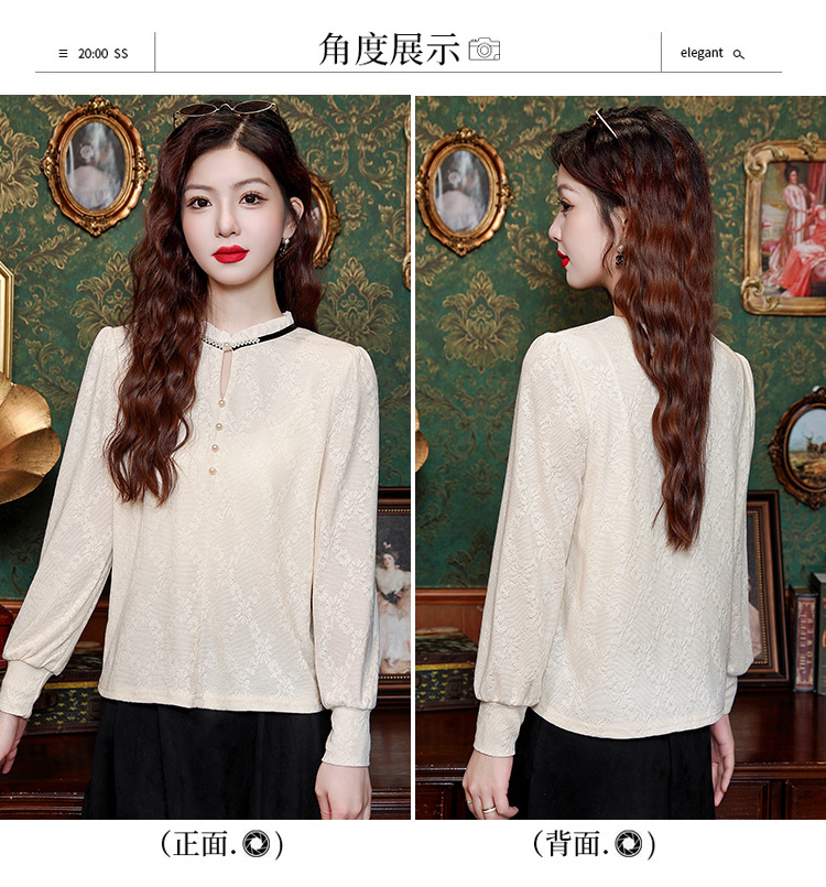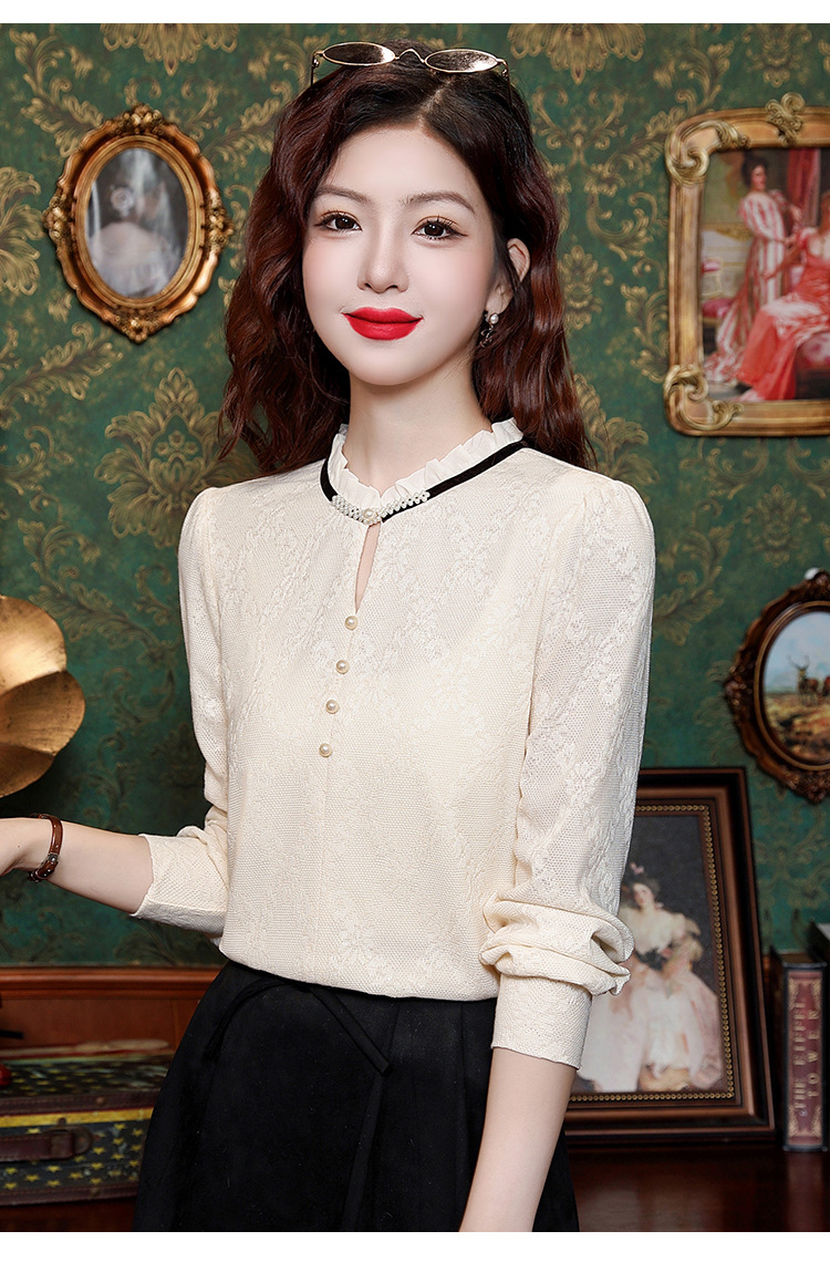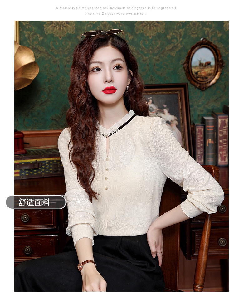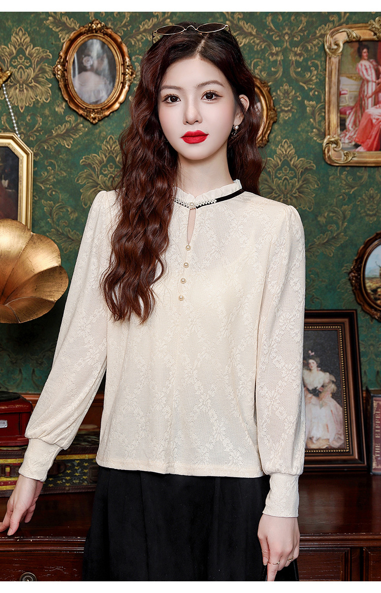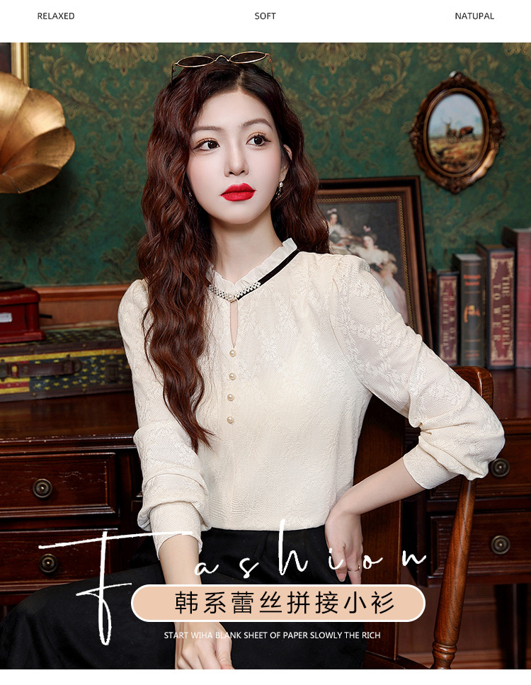 프랑스 패션 레이스 바닥 셔츠 여성의 2024 가을과 겨울 새로운 긴 소매 서양식 디자인 감각 내부 탑 도매스토어 가기