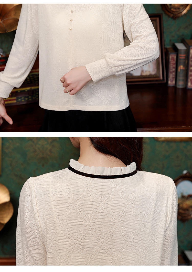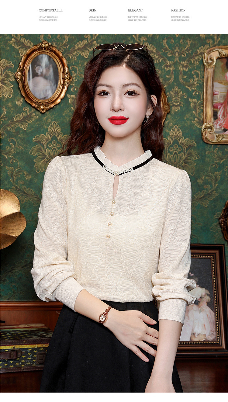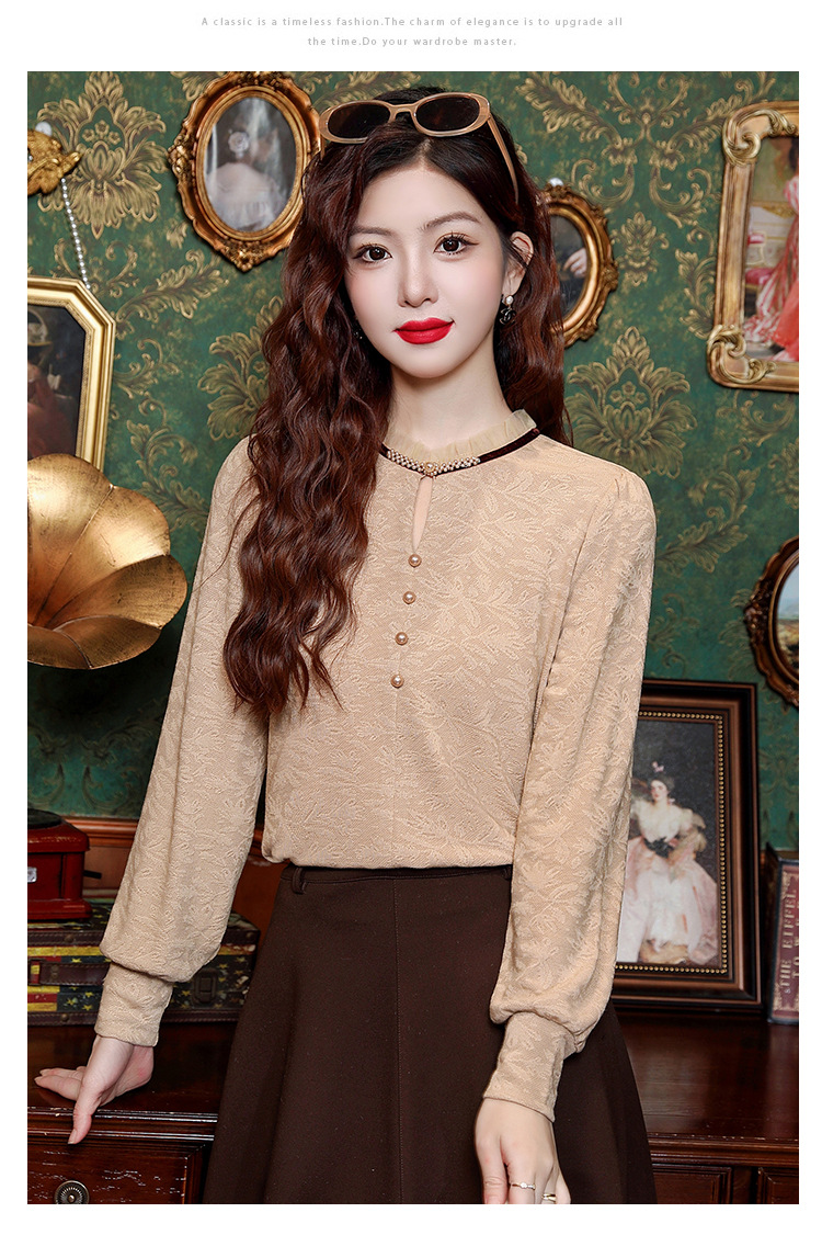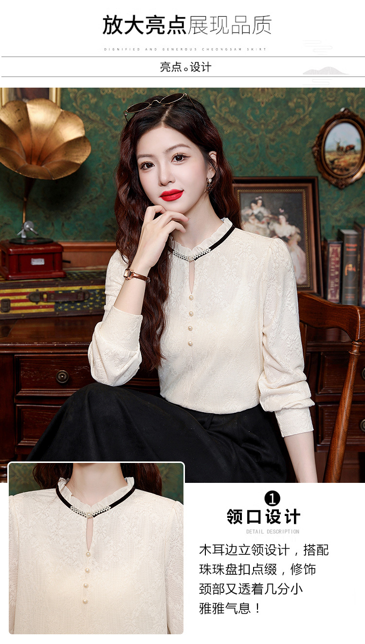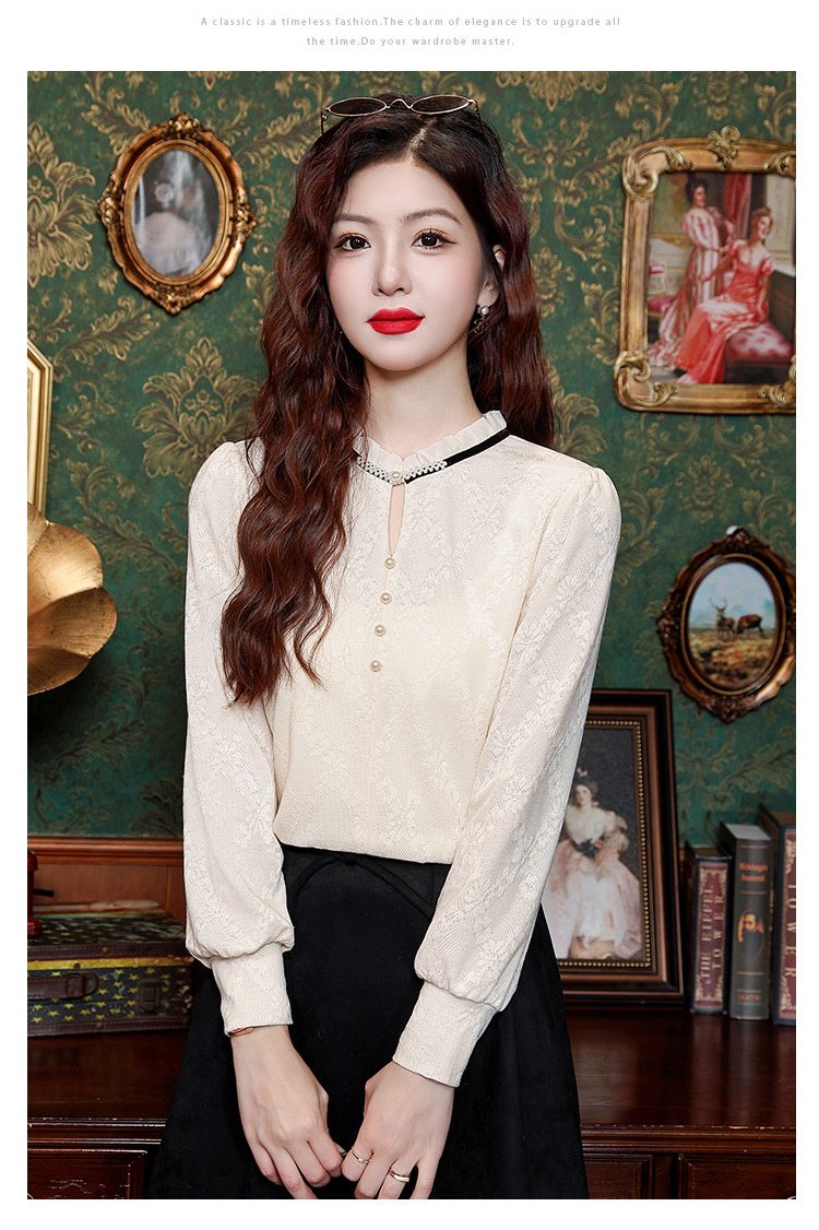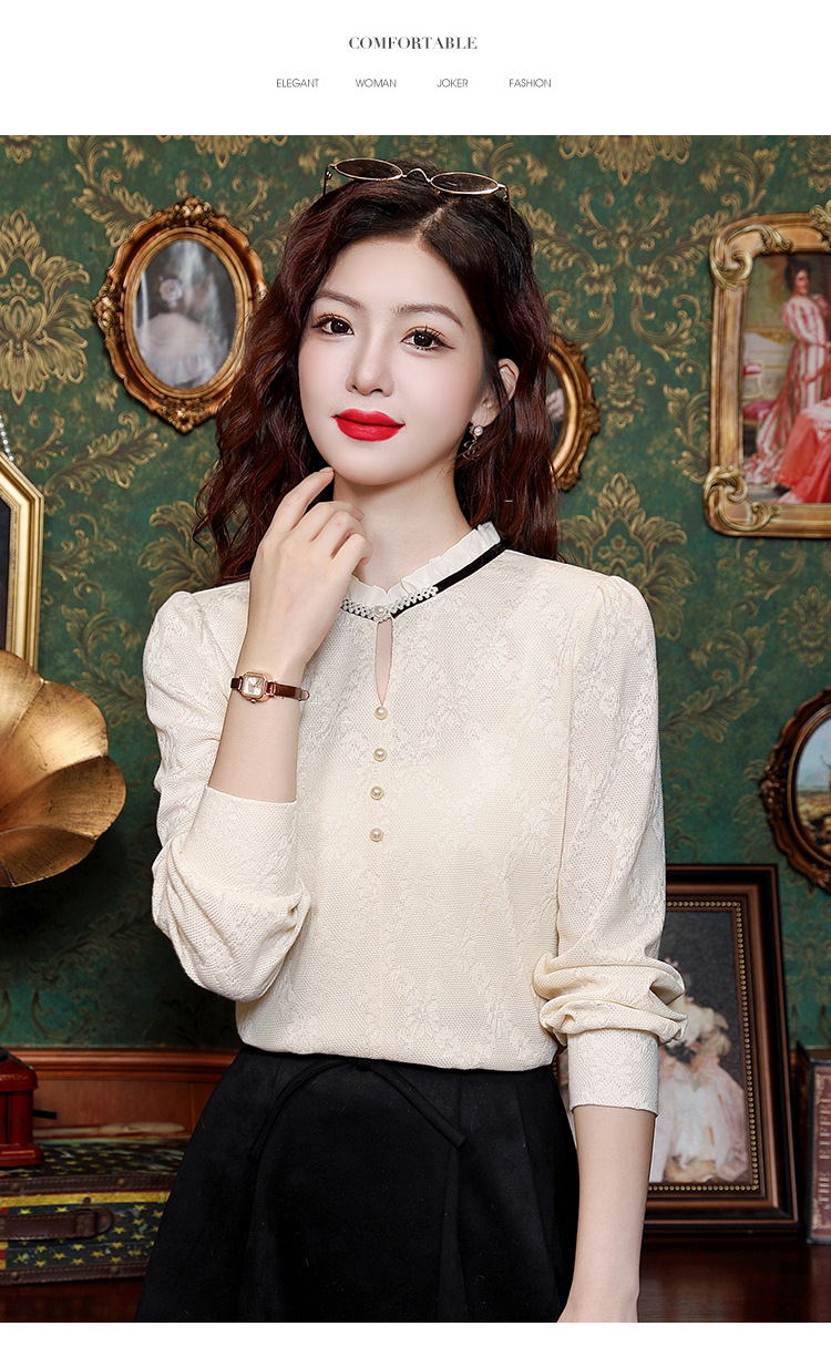 프랑스 패션 레이스 바닥 셔츠 여성의 2024 가을과 겨울 새로운 긴 소매 서양식 디자인 감각 내부 탑 도매스토어 가기