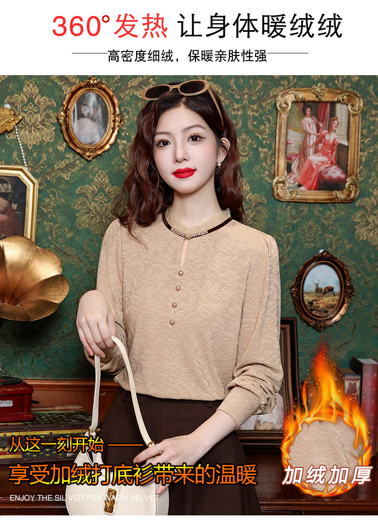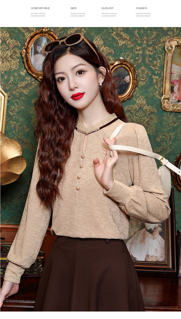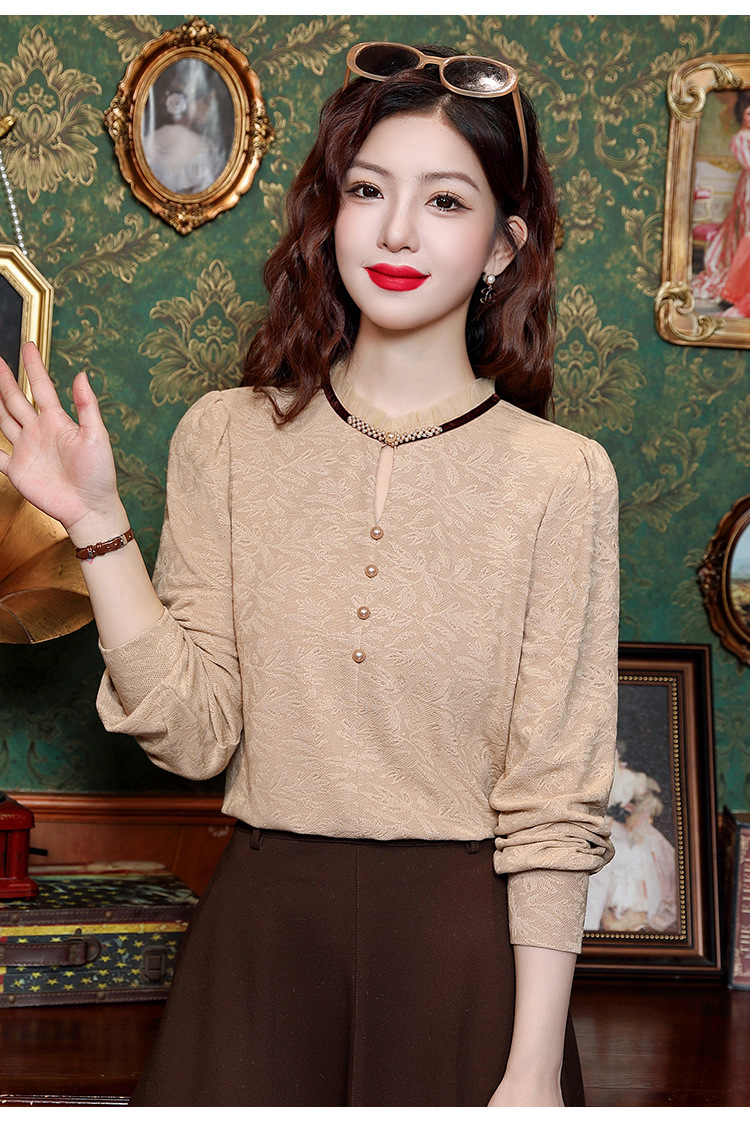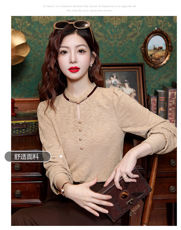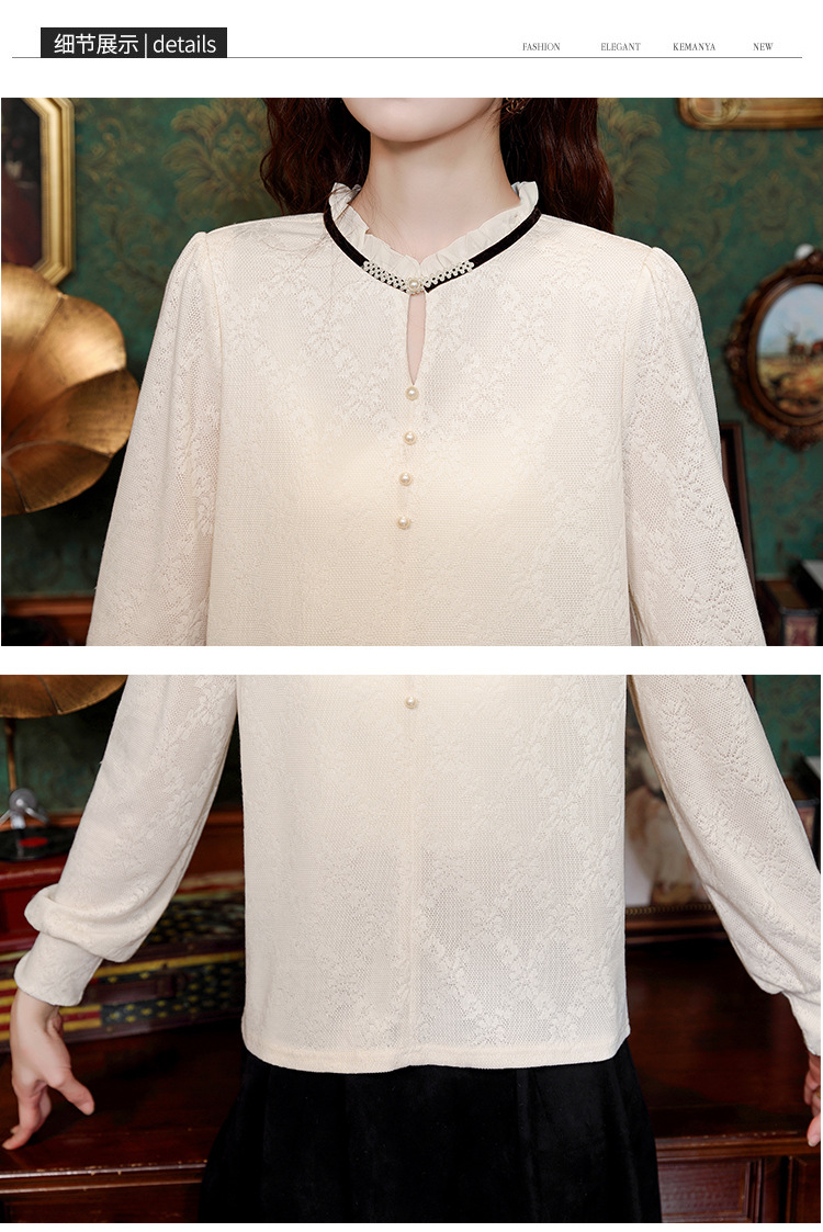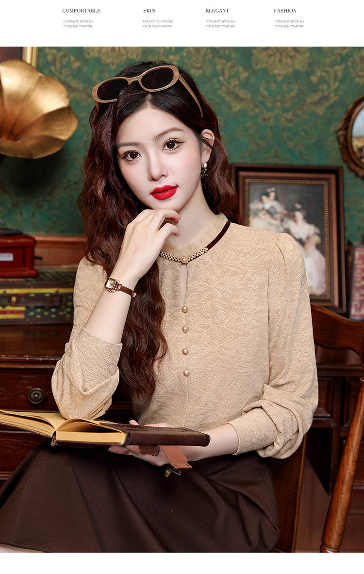 프랑스 패션 레이스 바닥 셔츠 여성의 2024 가을과 겨울 새로운 긴 소매 서양식 디자인 감각 내부 탑 도매스토어 가기
