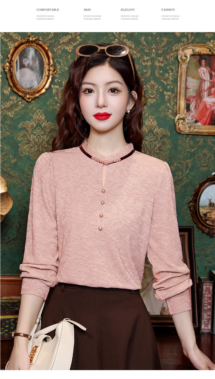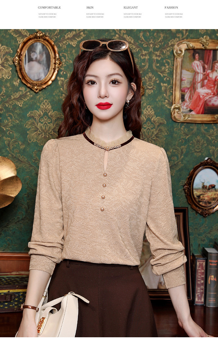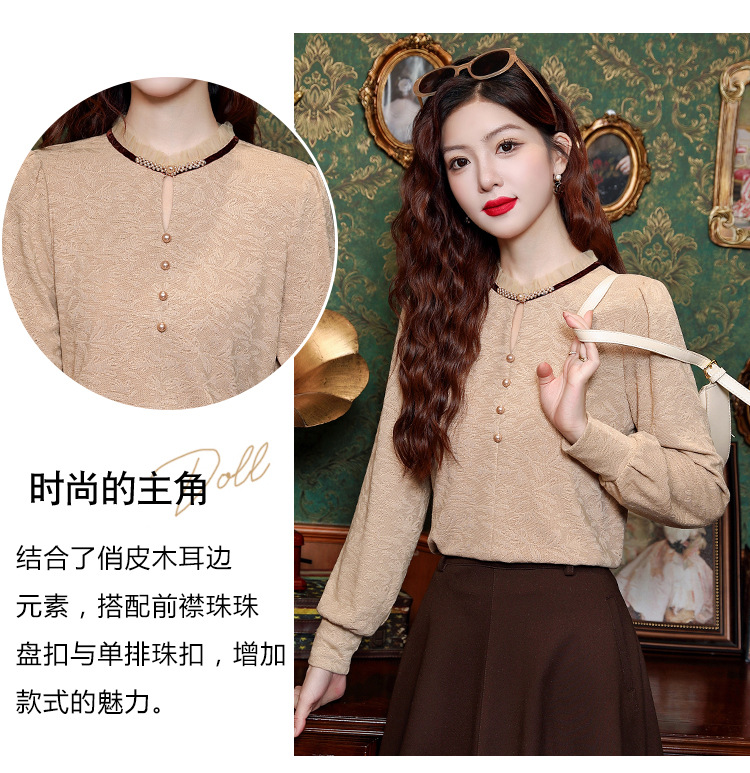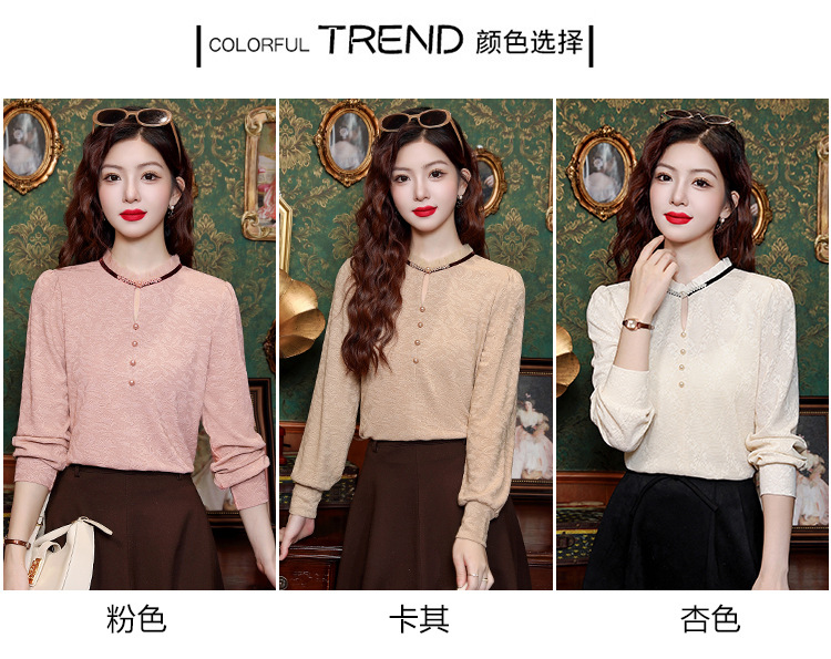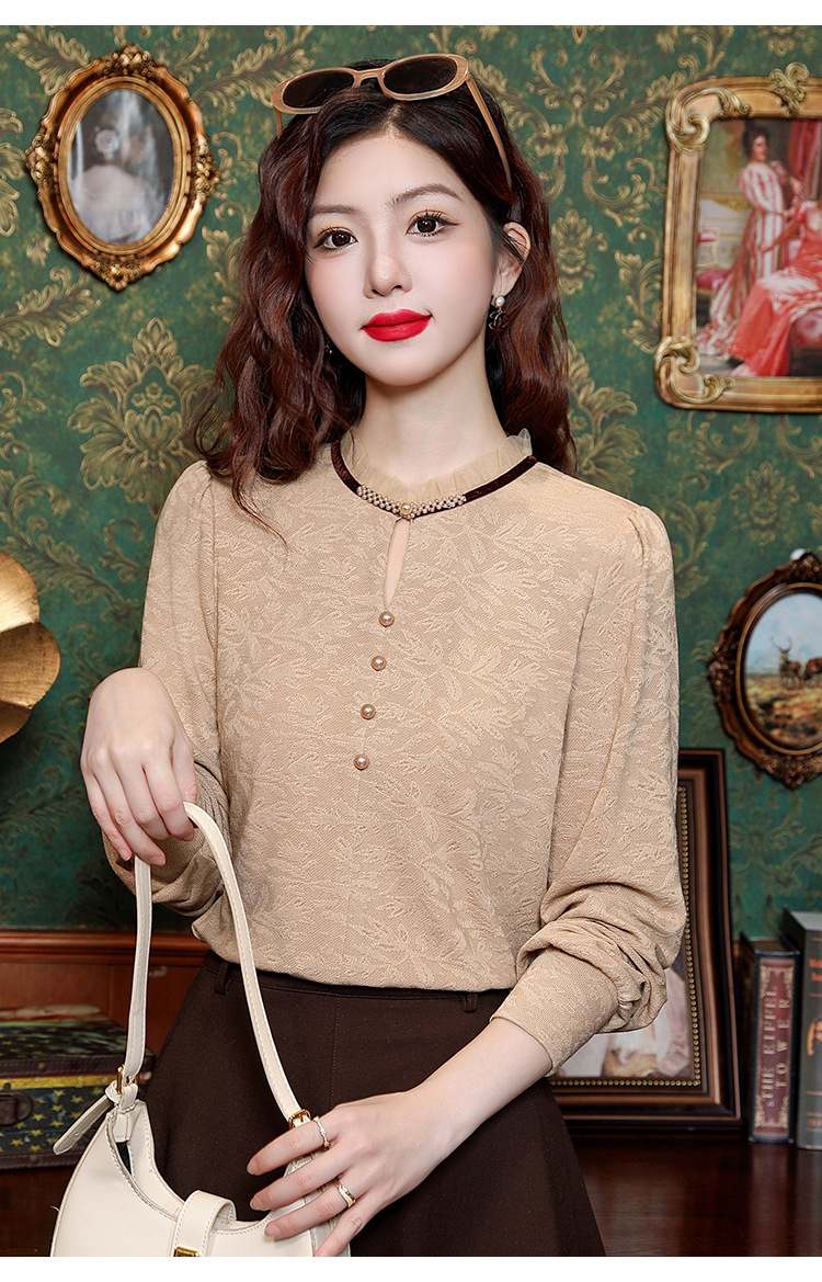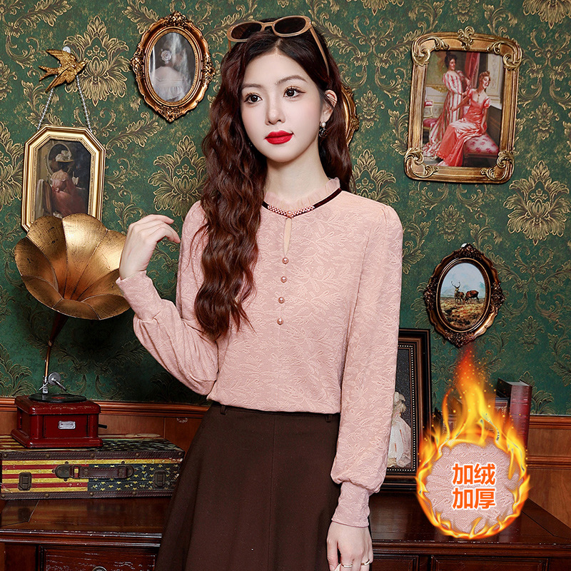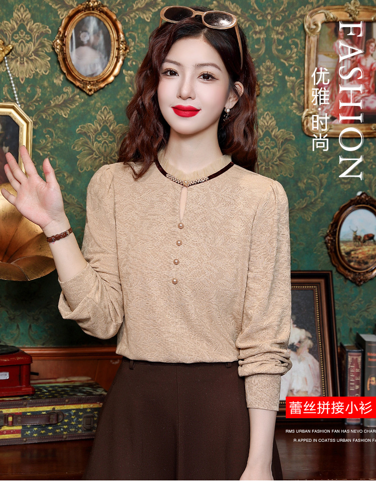 프랑스 패션 레이스 바닥 셔츠 여성의 2024 가을과 겨울 새로운 긴 소매 서양식 디자인 감각 내부 탑 도매