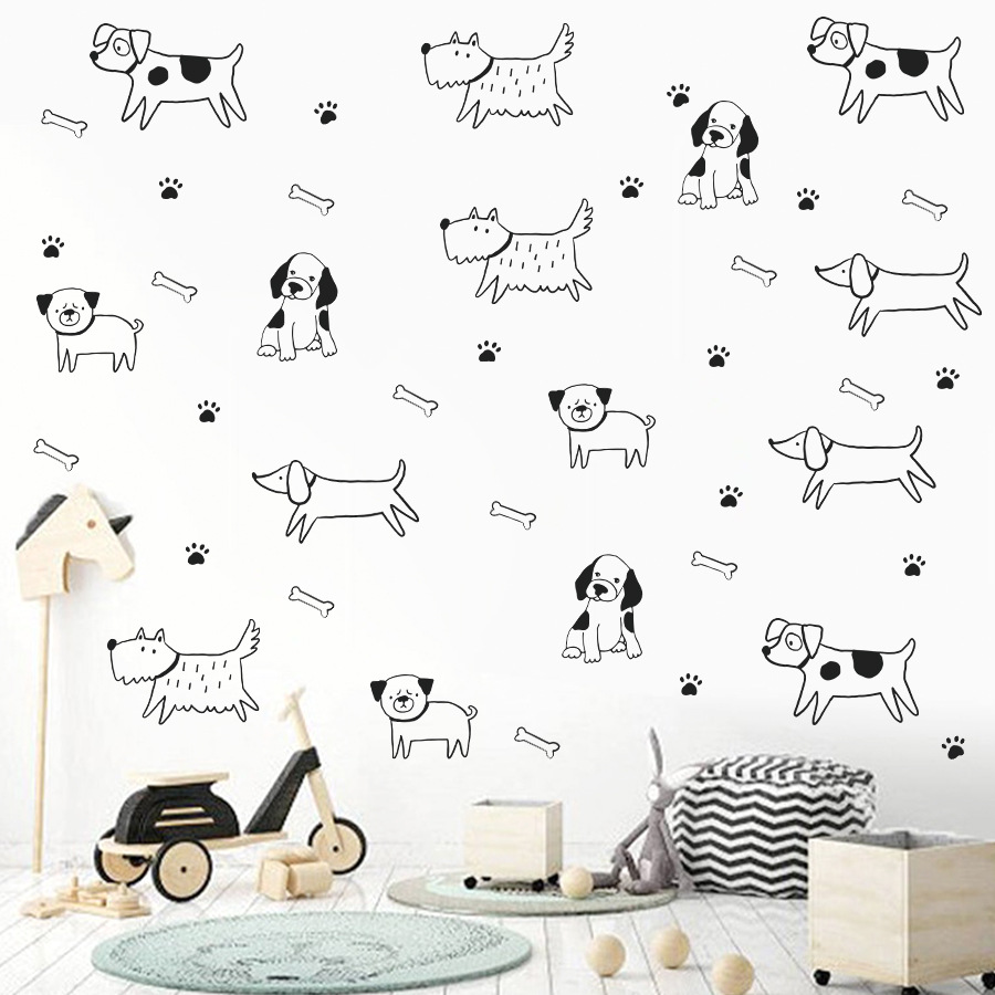 만화 귀여운 간단한 강아지 자기 접착 벽 스티커 Ins 스타일 어린이 방 배경 벽 장식 스티커 ZN3076C스토어 가기