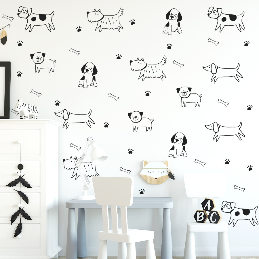 만화 귀여운 간단한 강아지 자기 접착 벽 스티커 Ins 스타일 어린이 방 배경 벽 장식 스티커 ZN3076C
