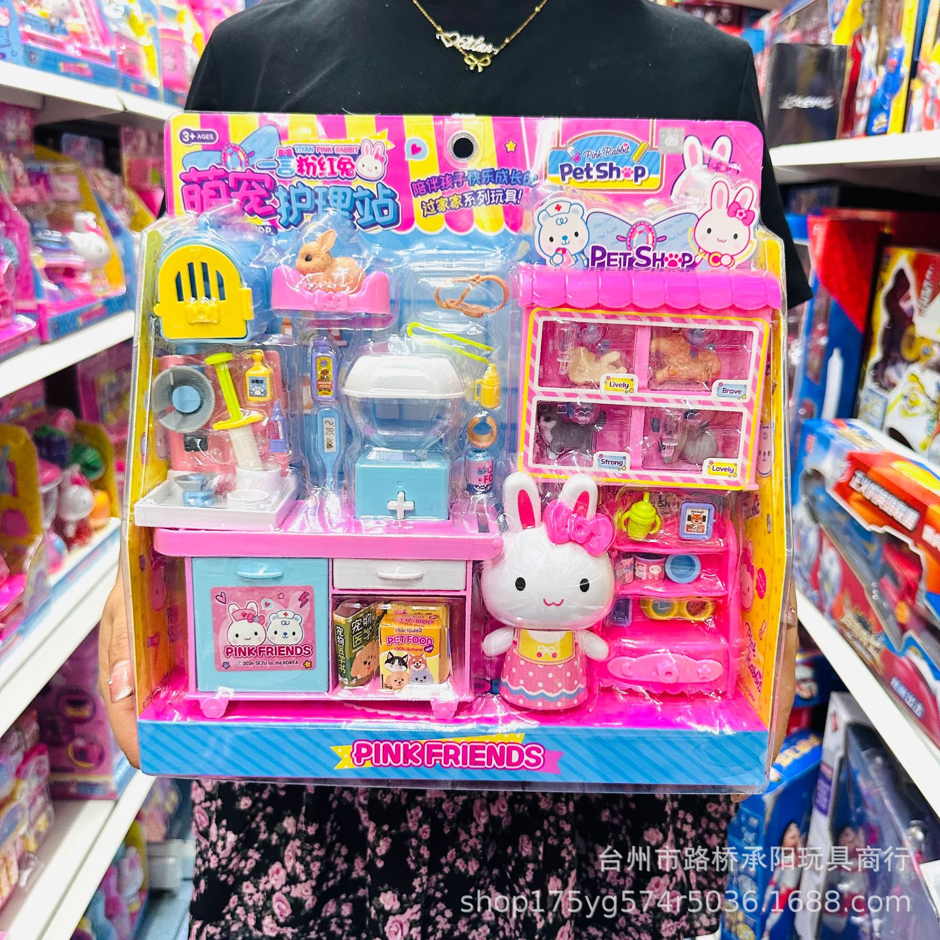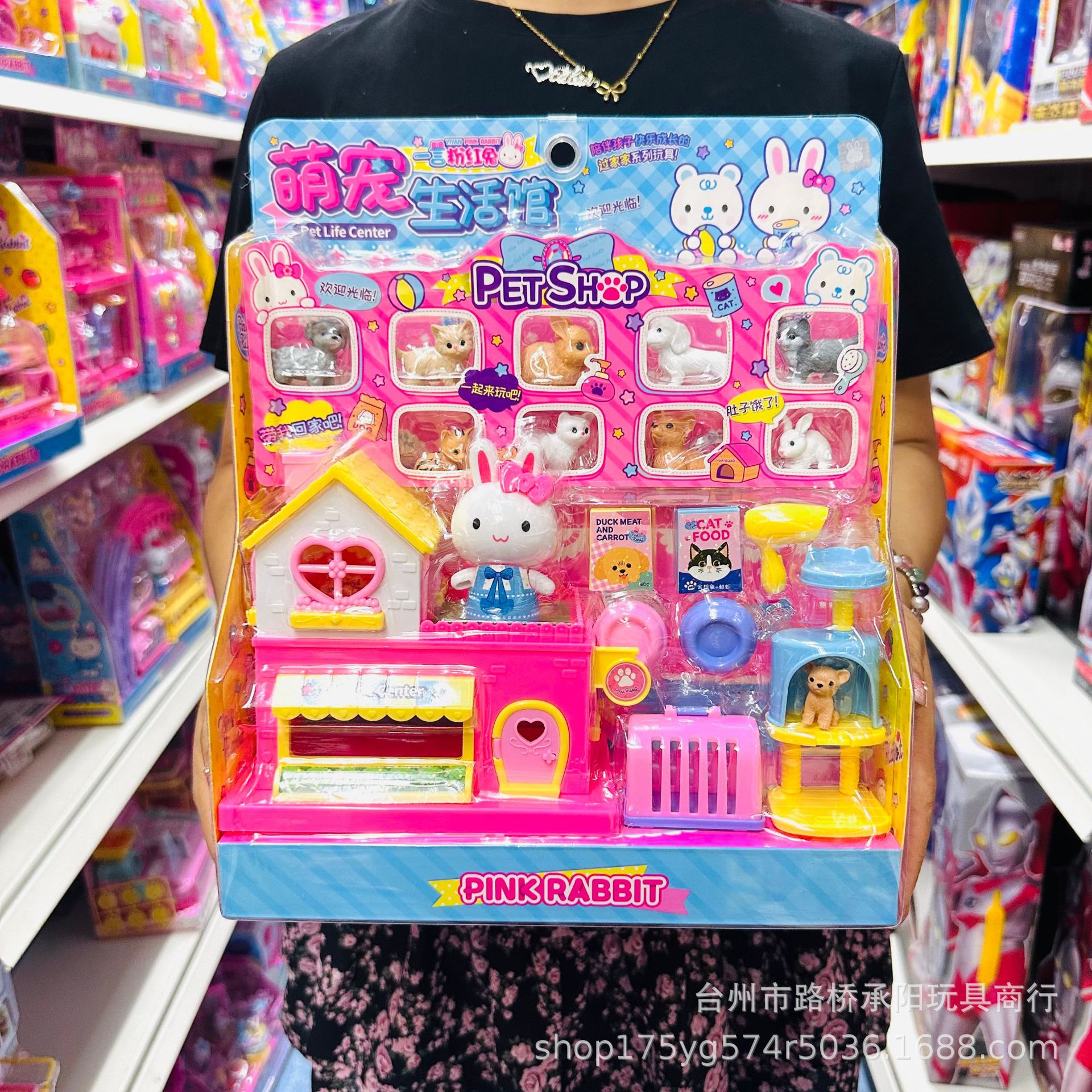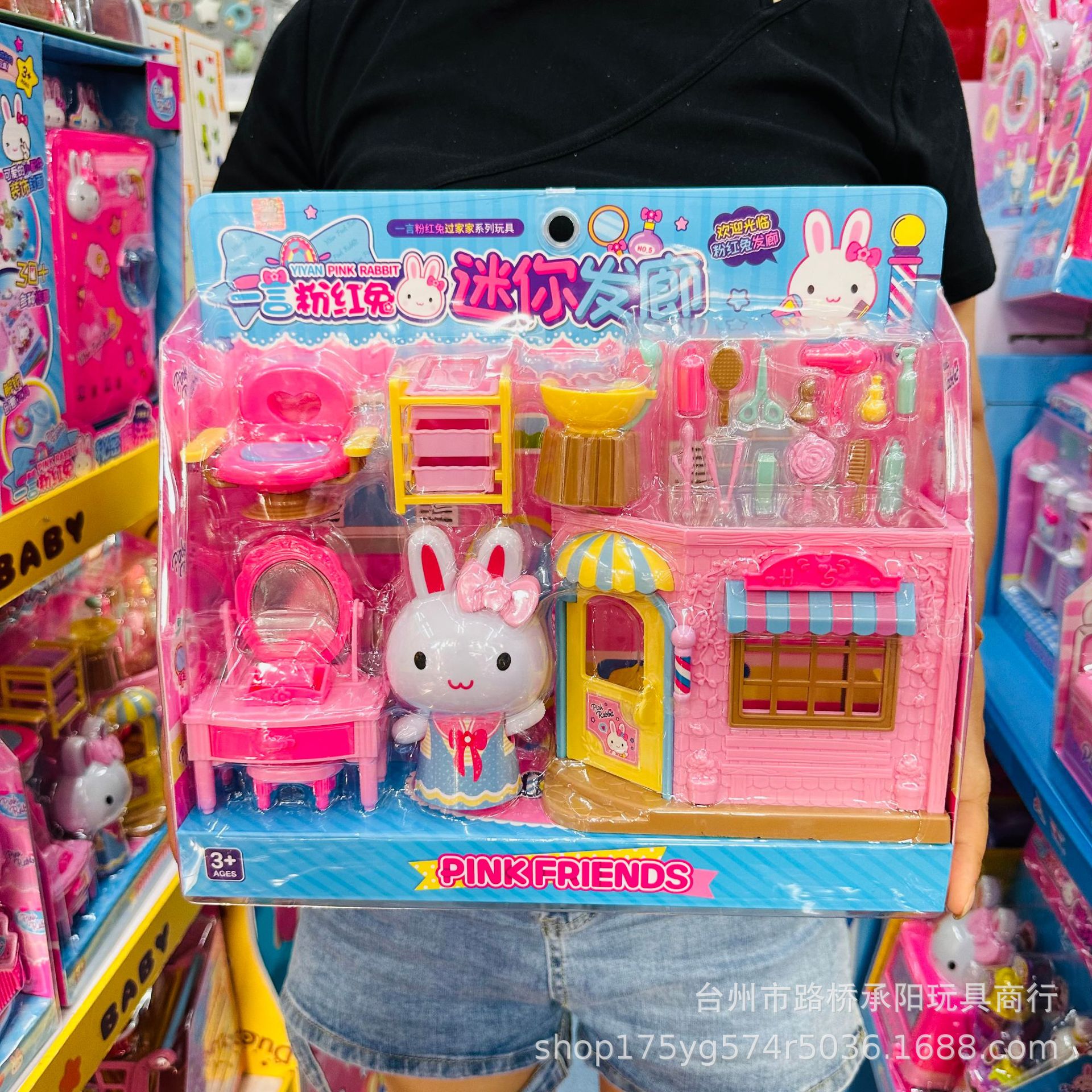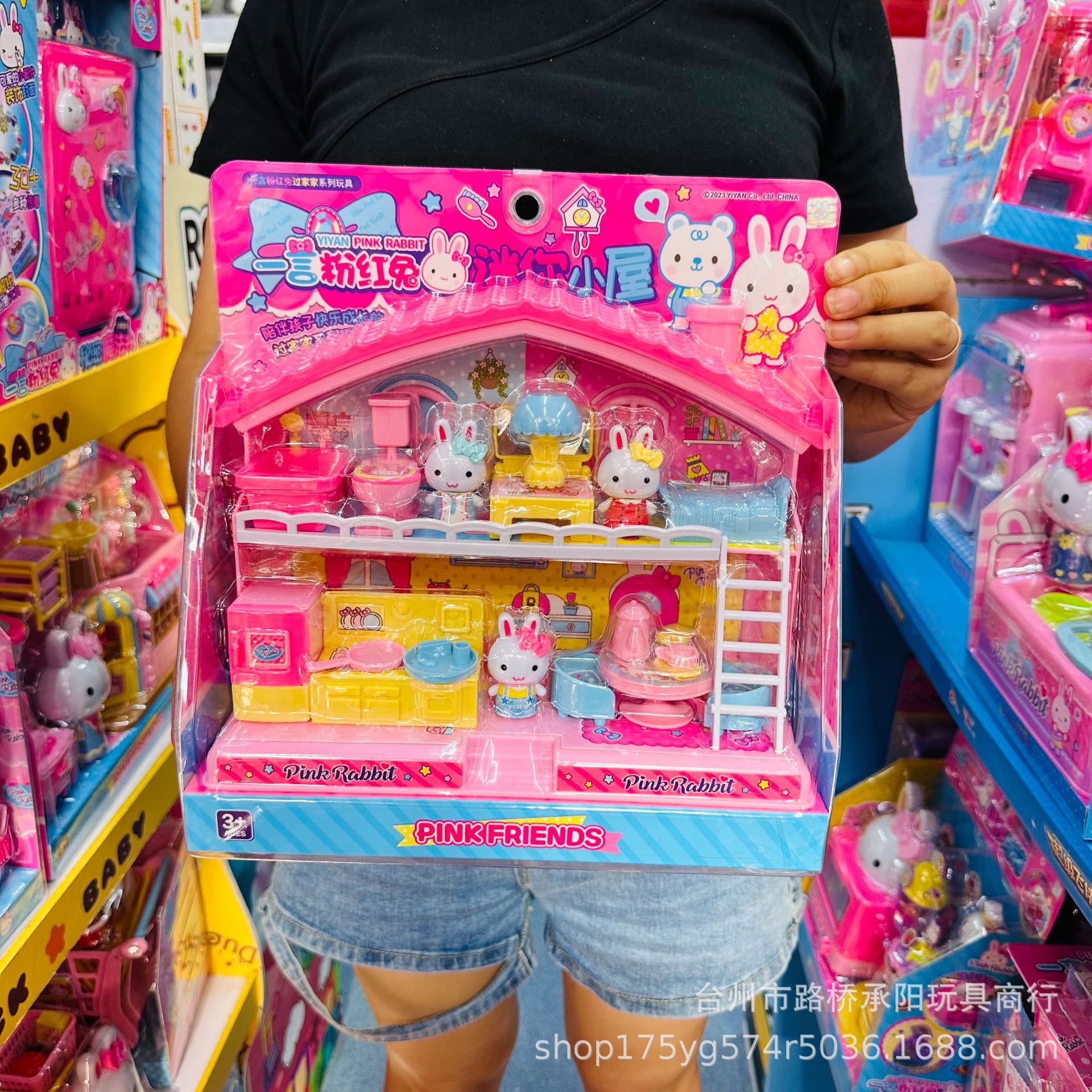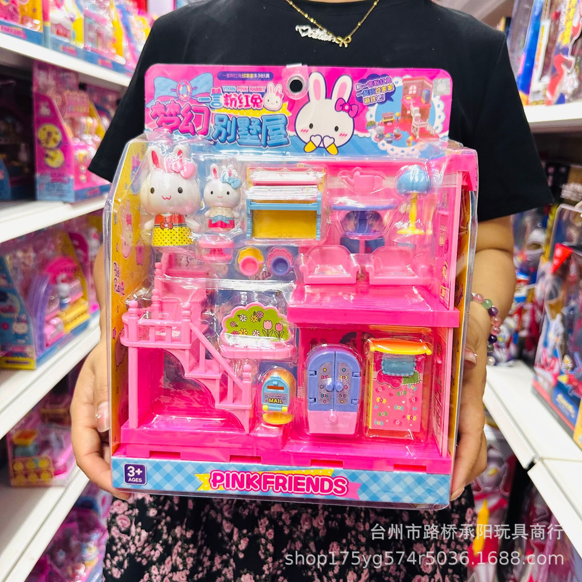 도매 한 단어 핑크 토끼 시리즈 장난감 시뮬레이션 놀이 집 미니 오두막 토끼 빌라 장면 3-6 세스토어 가기