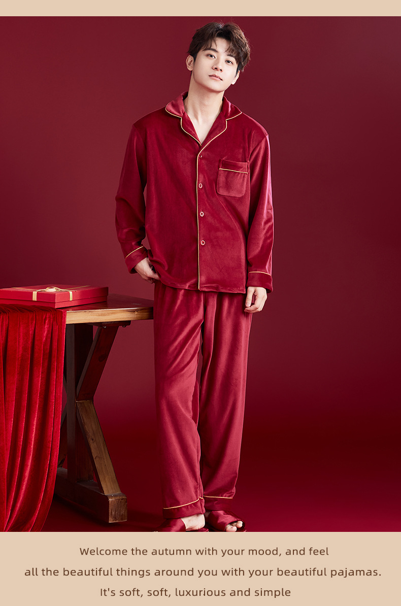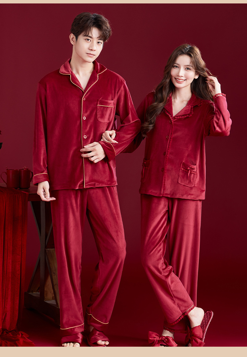 결혼식 신혼부부 잠옷 세트 고급 결혼식용 레드 아일랜드 벨벳 가을 겨울 신랑 신부 웨딩 남녀용