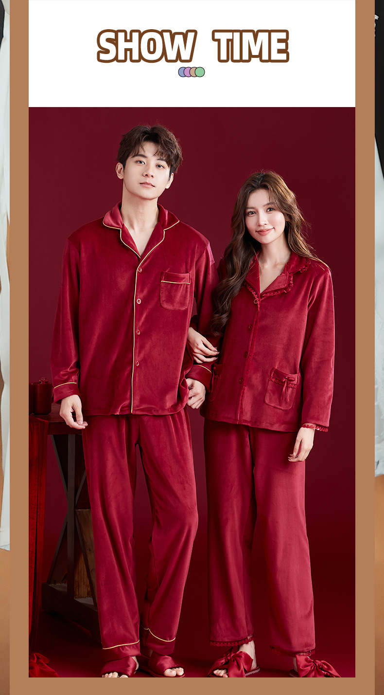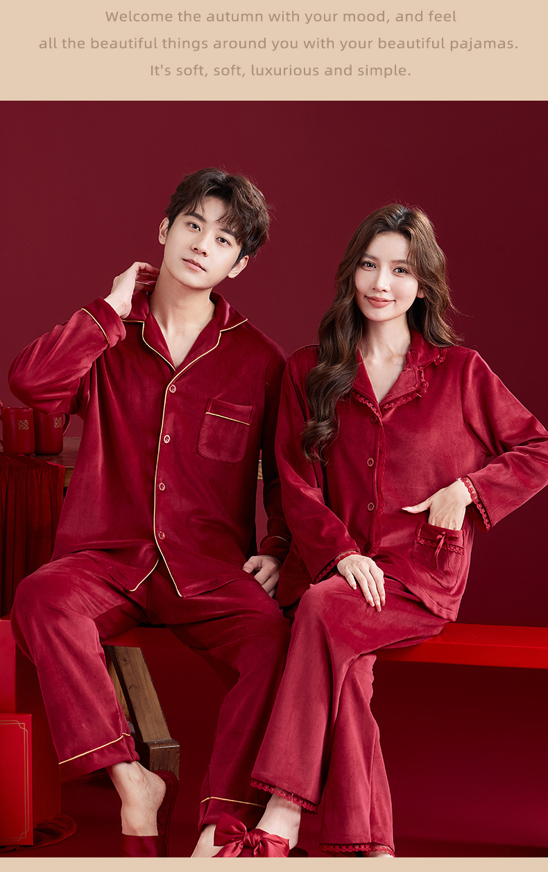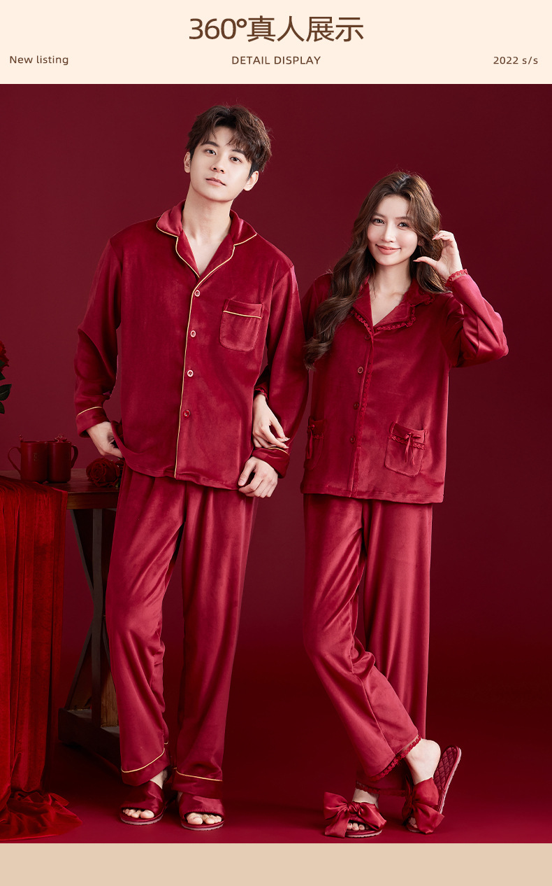 결혼식 신혼부부 잠옷 세트 고급 결혼식용 레드 아일랜드 벨벳 가을 겨울 신랑 신부 웨딩 남녀용스토어 가기