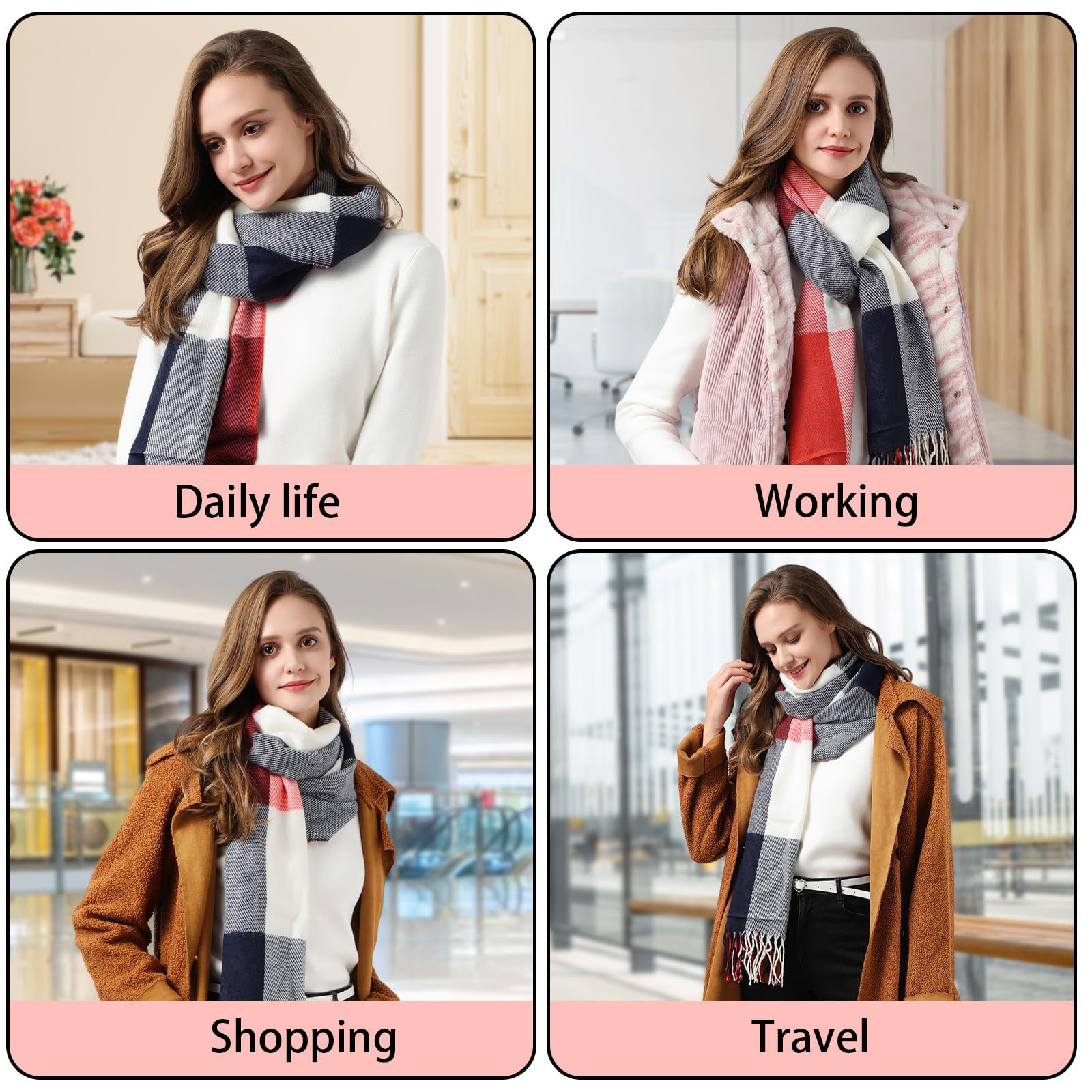 중립 클래식 부드러운 술 격자 술 겨울 따뜻한 여성 스카프스토어 가기