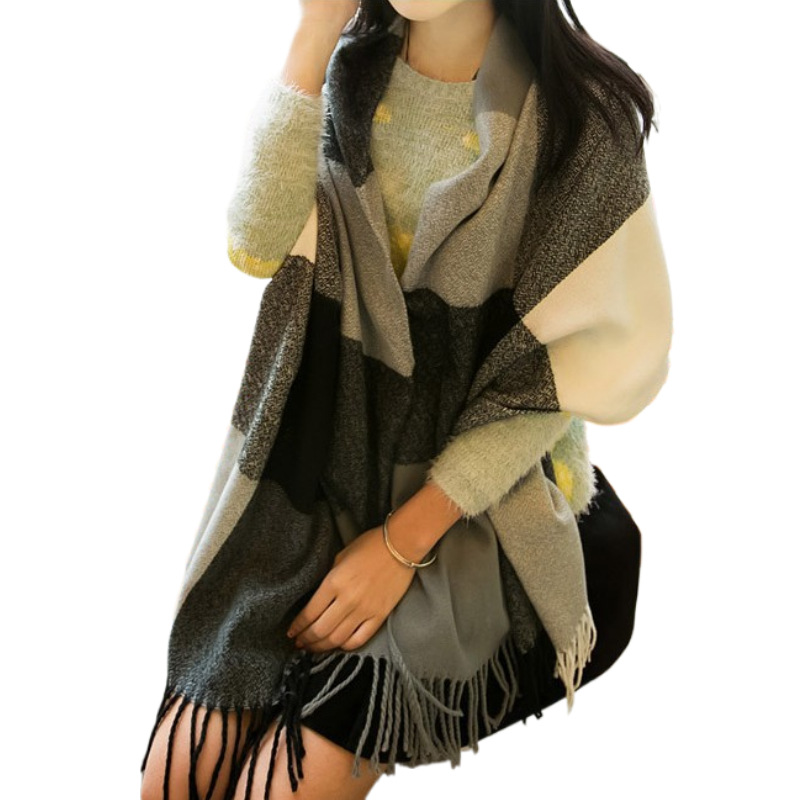 중립 클래식 부드러운 술 격자 술 겨울 따뜻한 여성 스카프