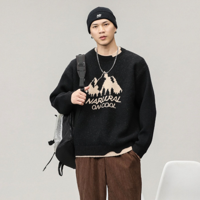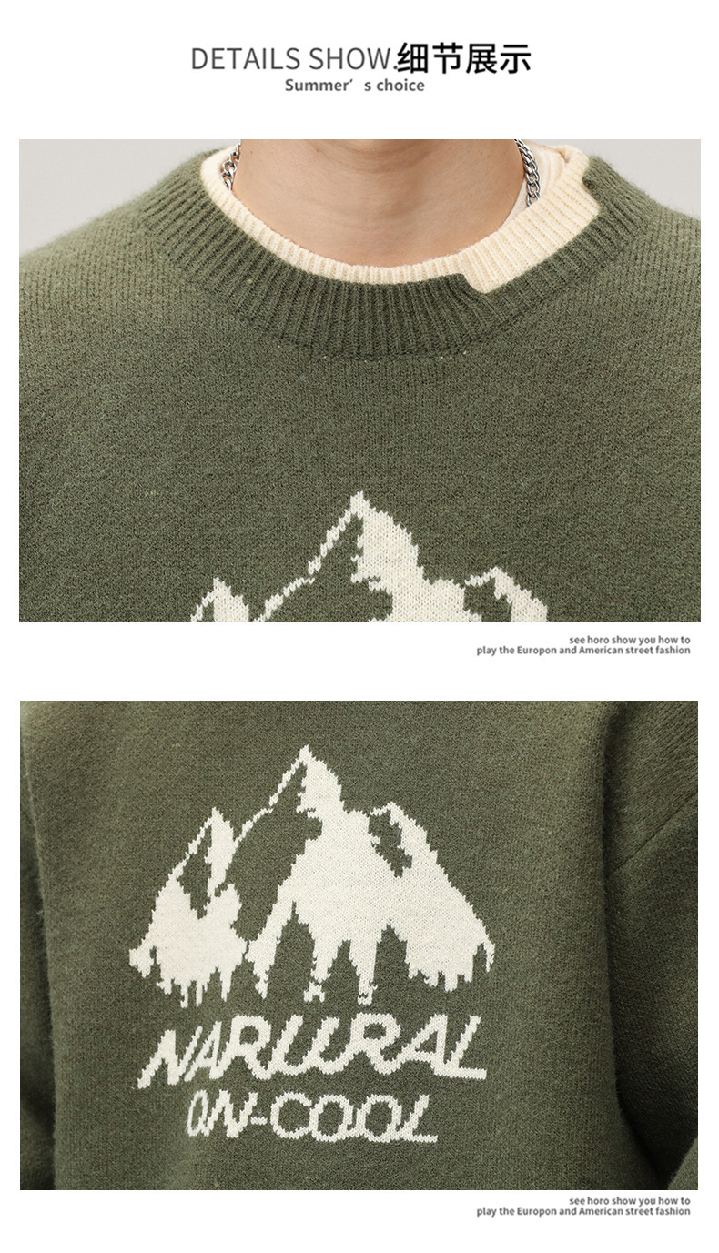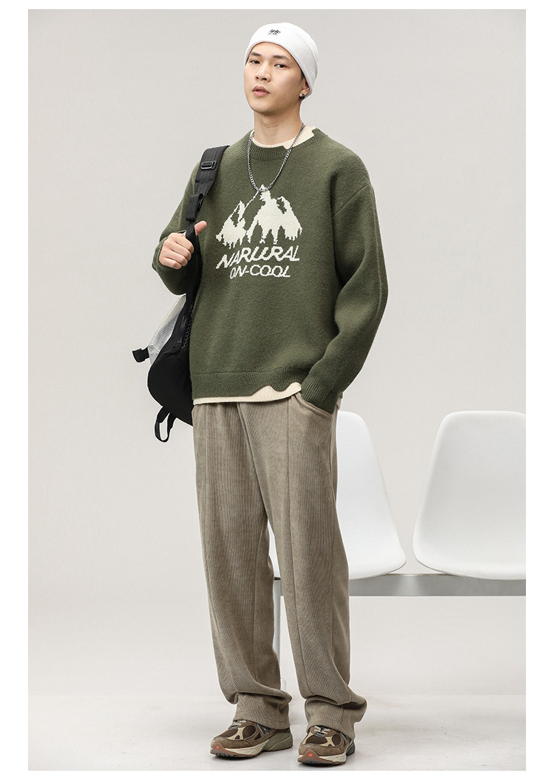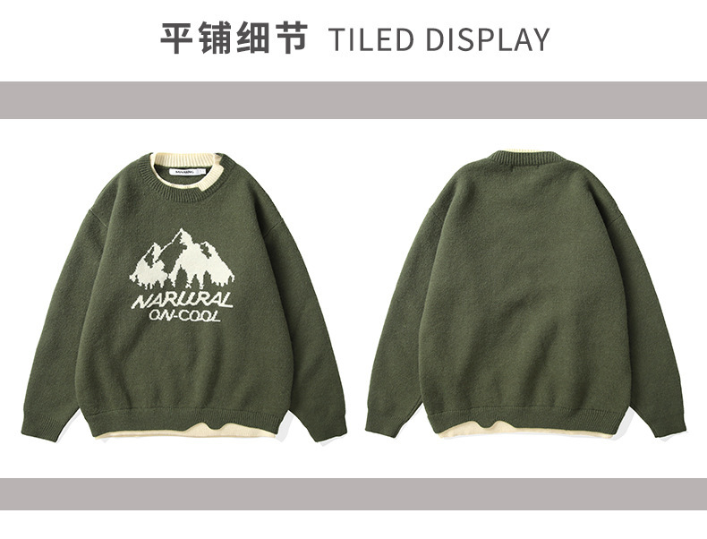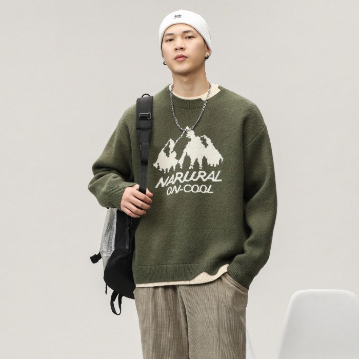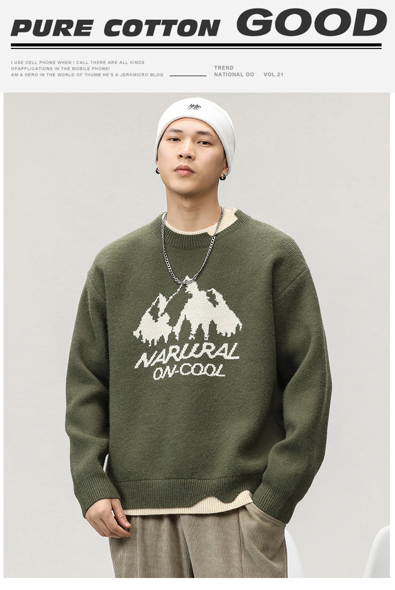 秋季新款北极绒宽松圆领保暖长袖加厚针织衫男潮流百搭草绿色毛衣