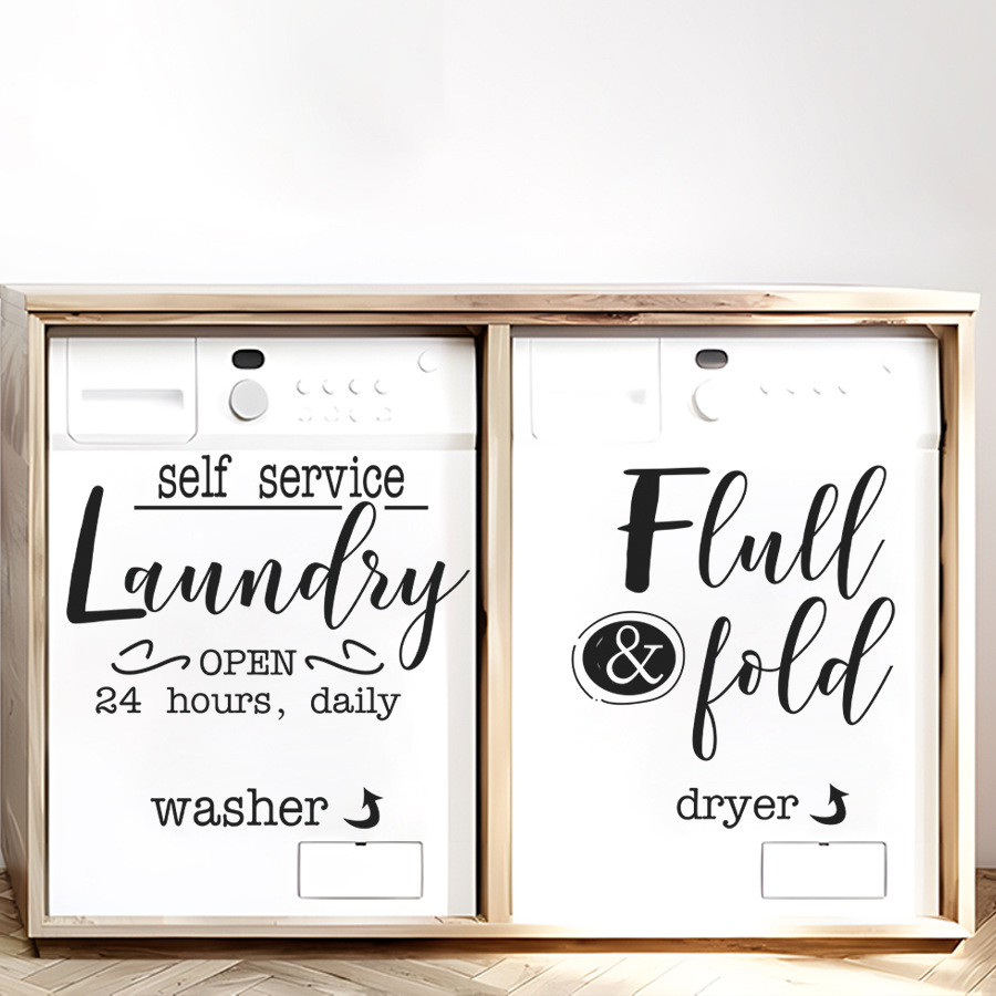 세탁 세탁기 영어 문구 자체 접착 벽 스티커 간단한 방 뒷벽 장식 스티커 ZN3087C