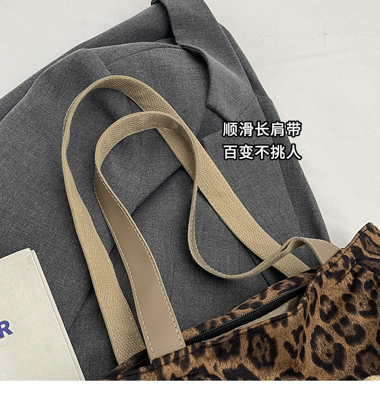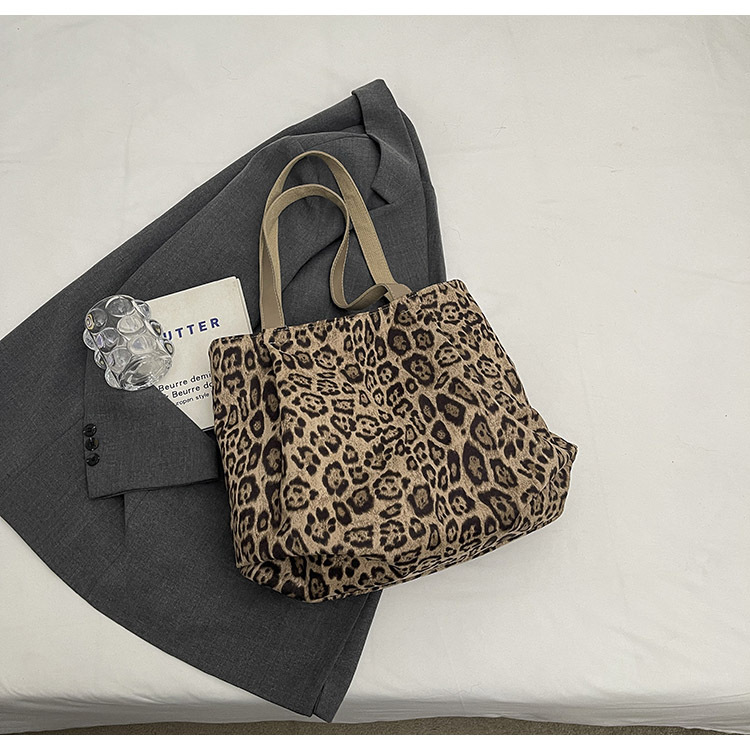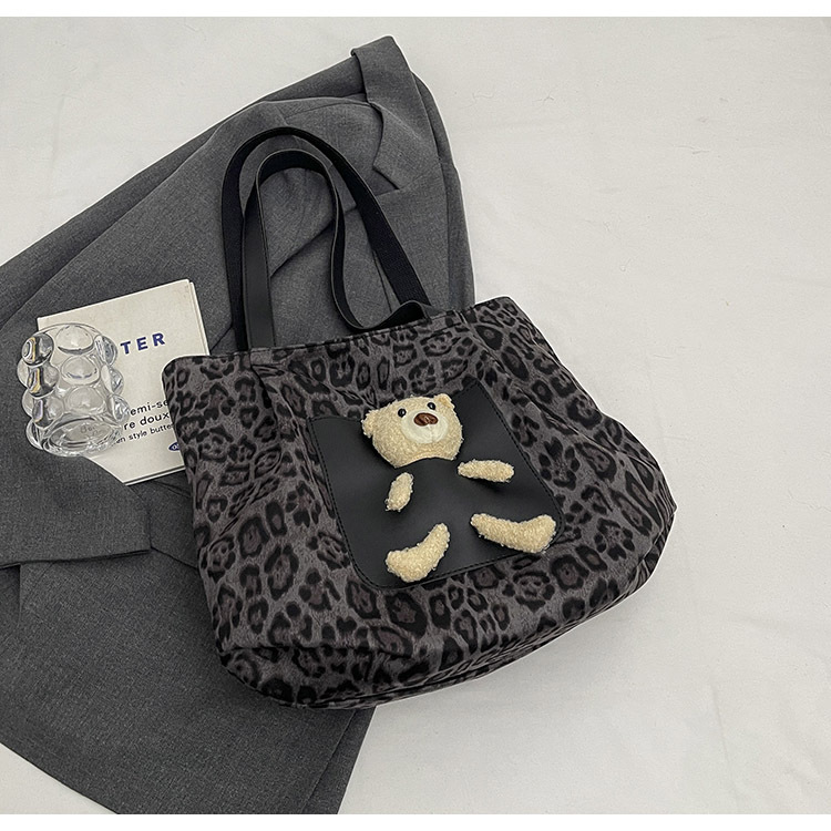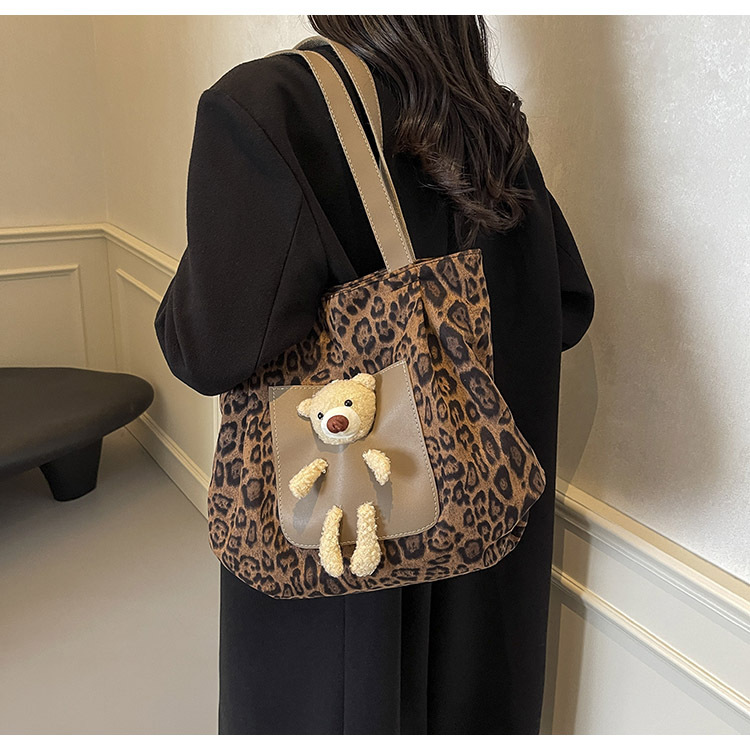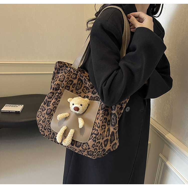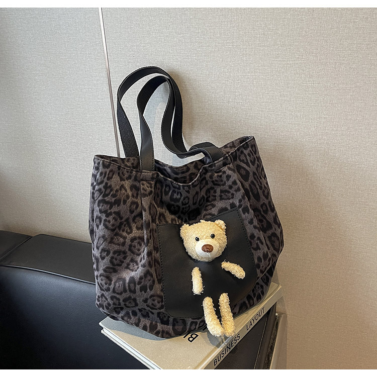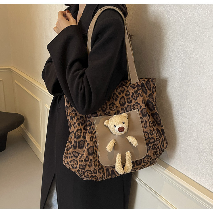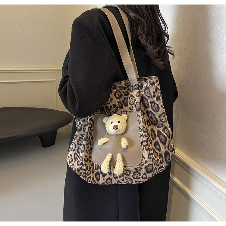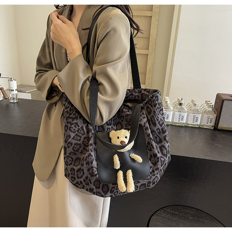 2024 새로운 도착 카키 인형 레오파드 무늬 캔버스 가방 한국 인기 높은 감각 작업 통근 소녀 토트 백