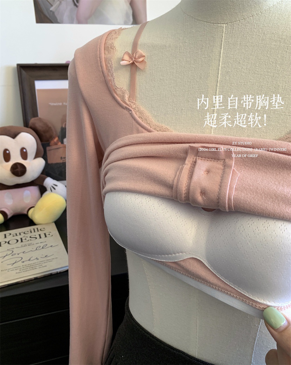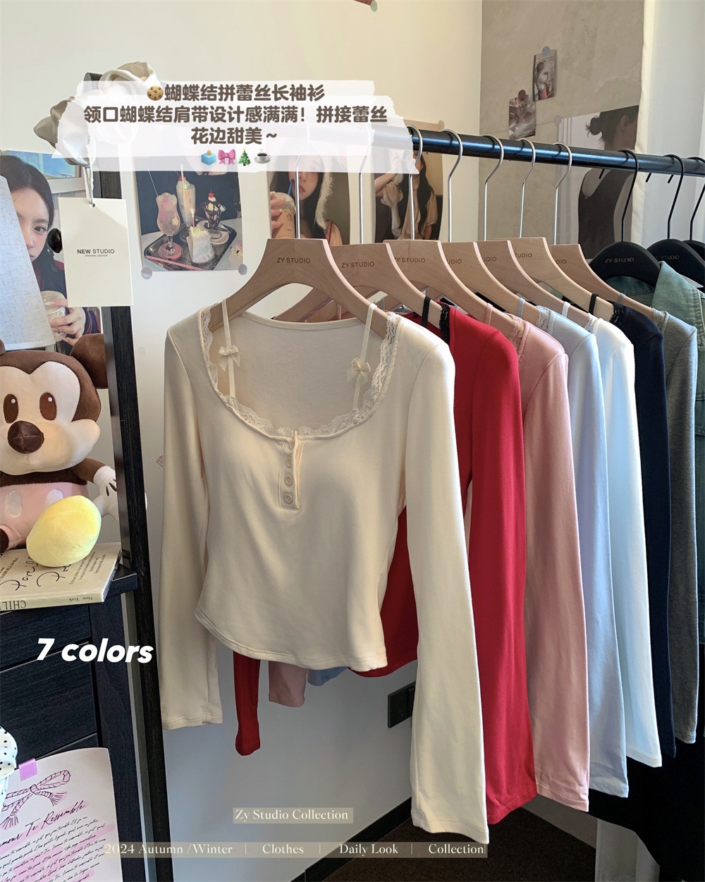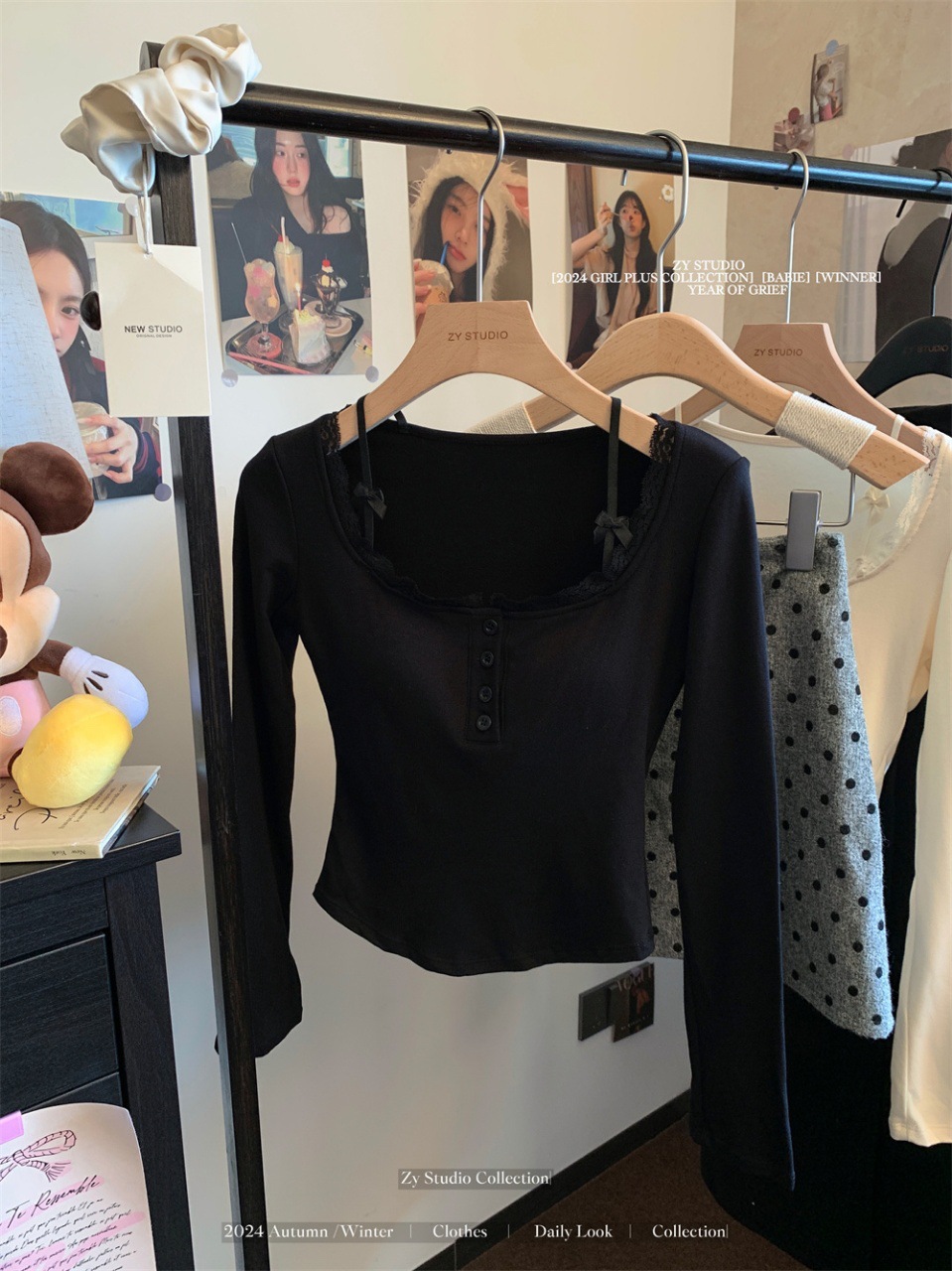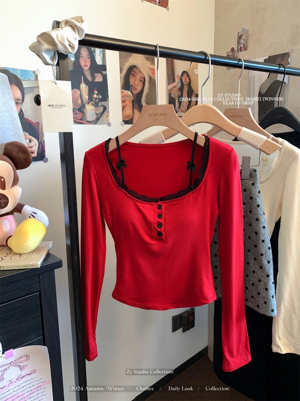 프랑스 스타일 순수한 욕망 스타일 레이스 가장자리 긴팔 티셔츠 가을과 겨울 샌딩 슬림 핏 슬리밍 스파이스 소녀 내부 스위트 베이스 탑스토어 가기