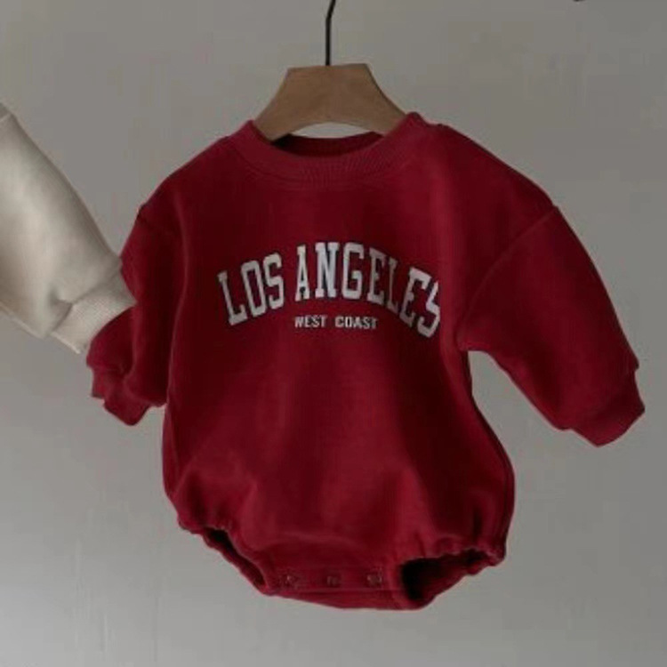 한국식 봄과 가을 아기 간단한 알파벳 바디 아기 캐주얼 긴팔 스웨트 셔츠 등산 삼각형 가방 뚱뚱한 옷