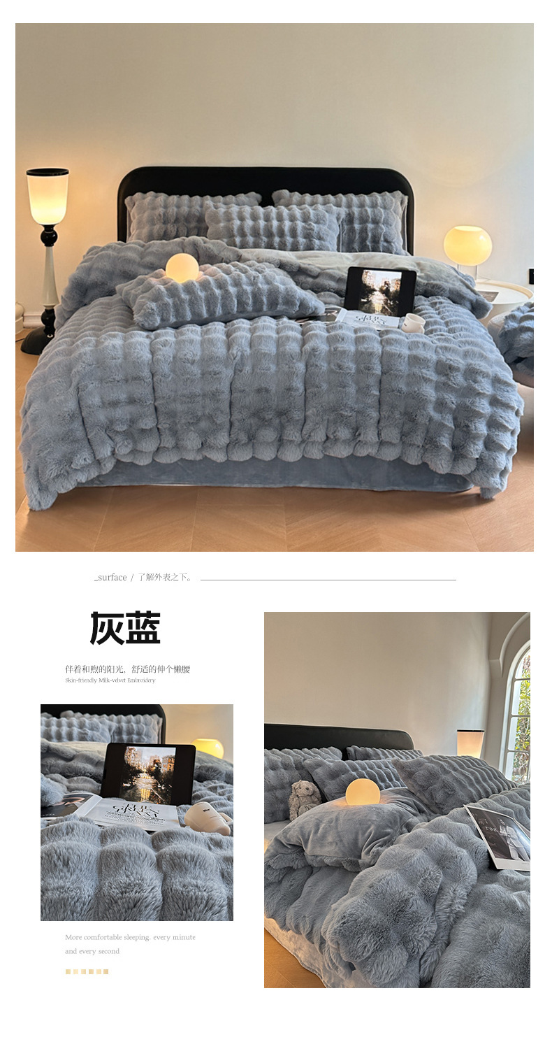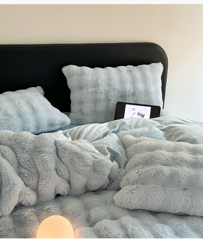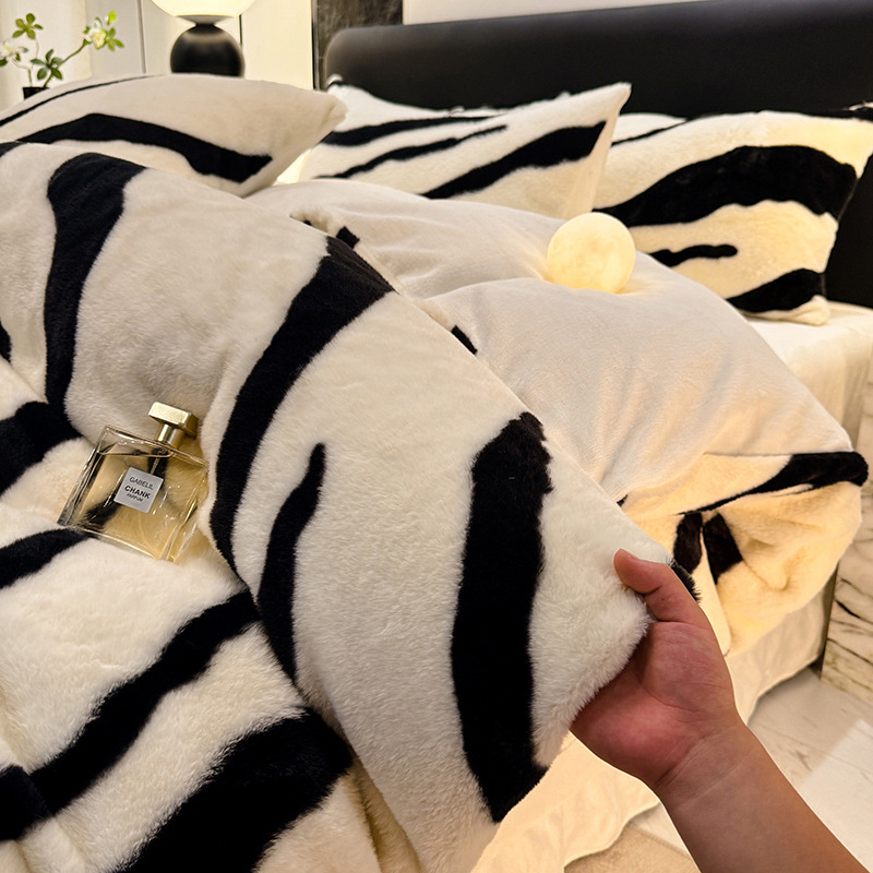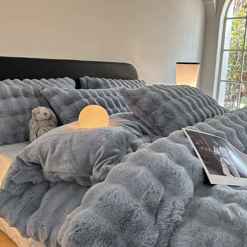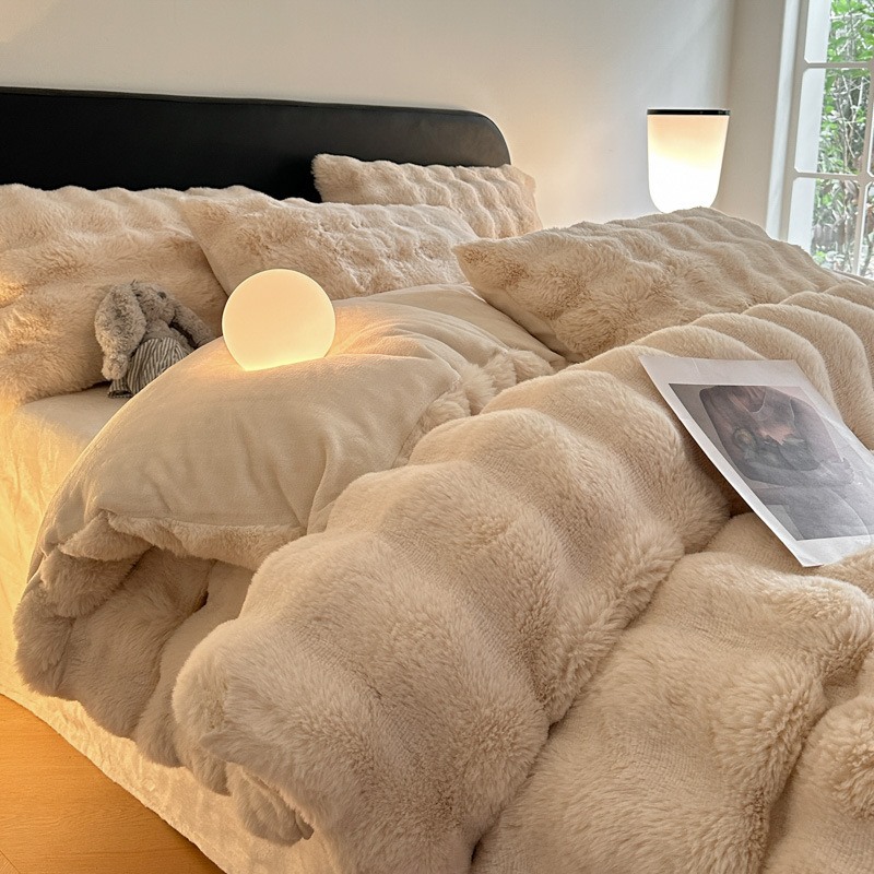 고급 겨울 토끼 벨벳 기모 두꺼운 4 피스 공주 스타일 양면 벨벳 밀크 벨벳 침대 시트 퀼트 커버스토어 가기