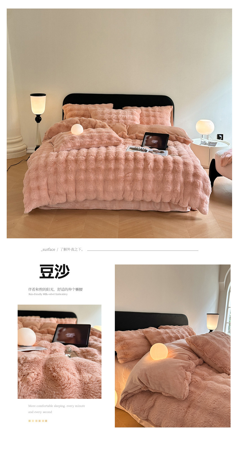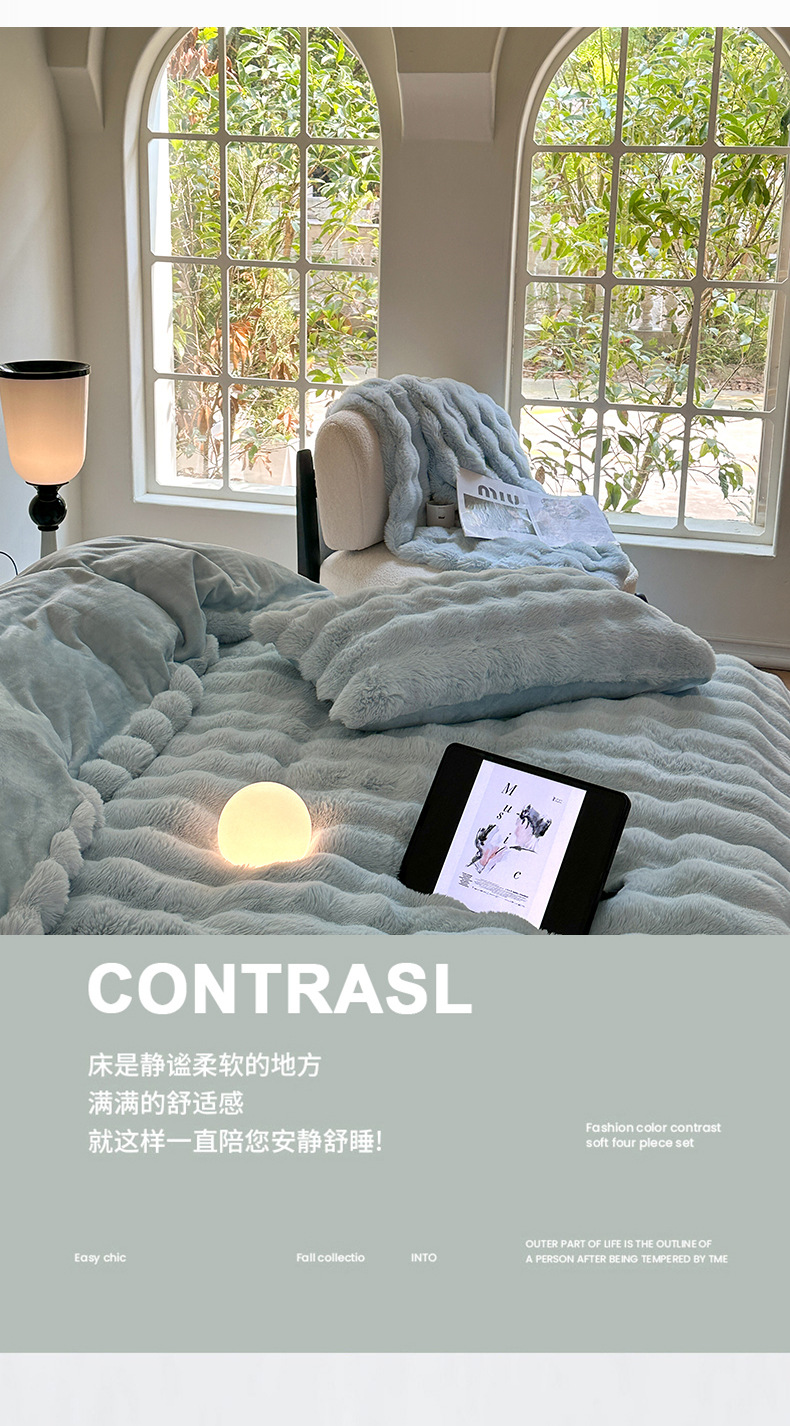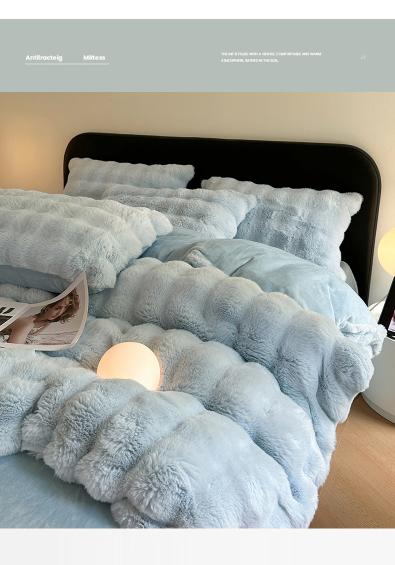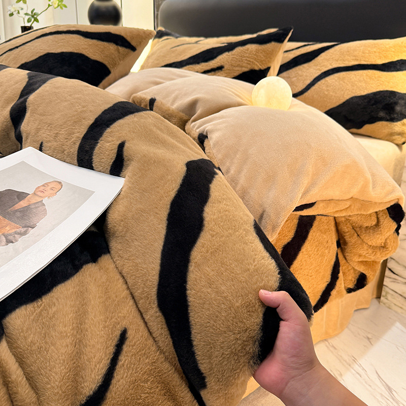 고급 겨울 토끼 벨벳 기모 두꺼운 4 피스 공주 스타일 양면 벨벳 밀크 벨벳 침대 시트 퀼트 커버스토어 가기