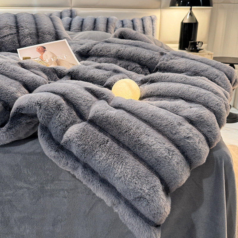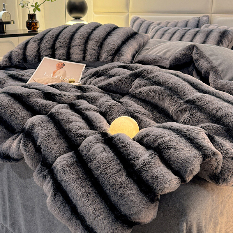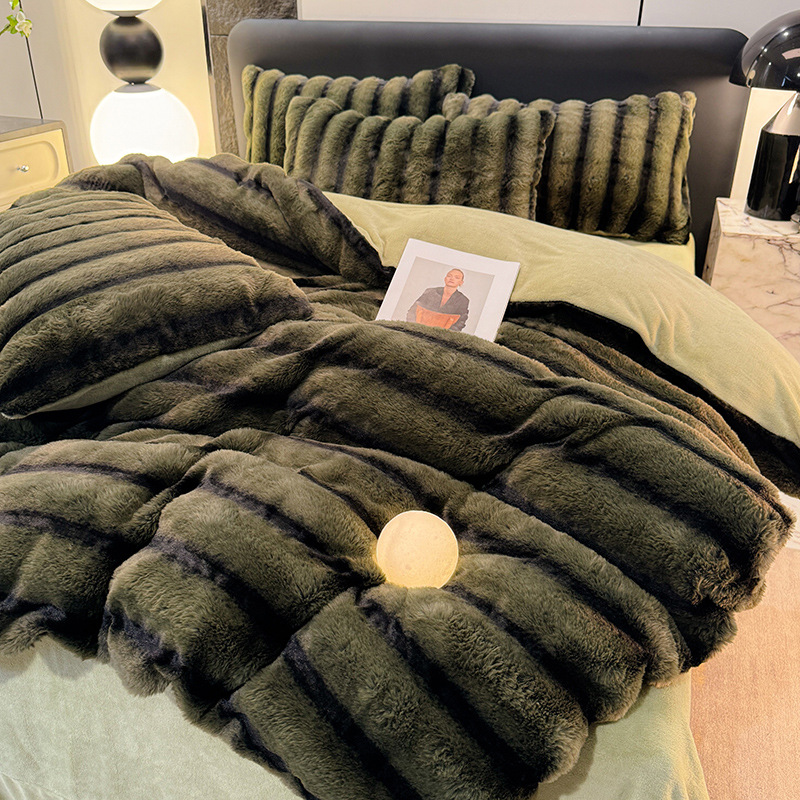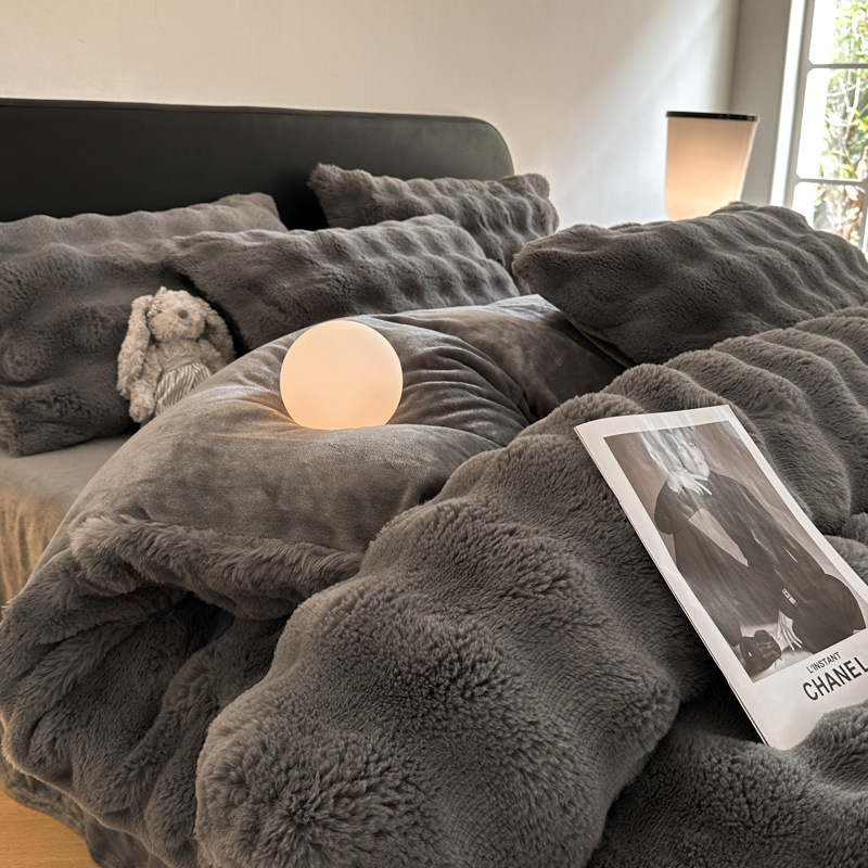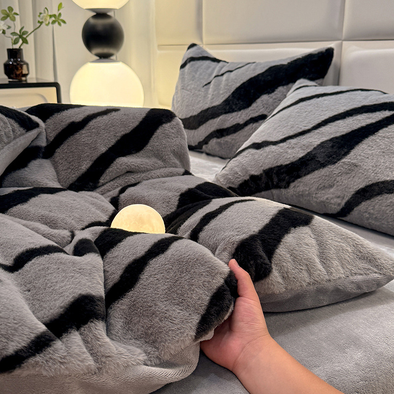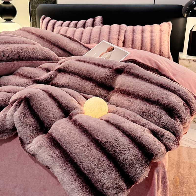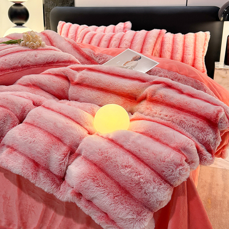 고급 겨울 토끼 벨벳 기모 두꺼운 4 피스 공주 스타일 양면 벨벳 밀크 벨벳 침대 시트 퀼트 커버