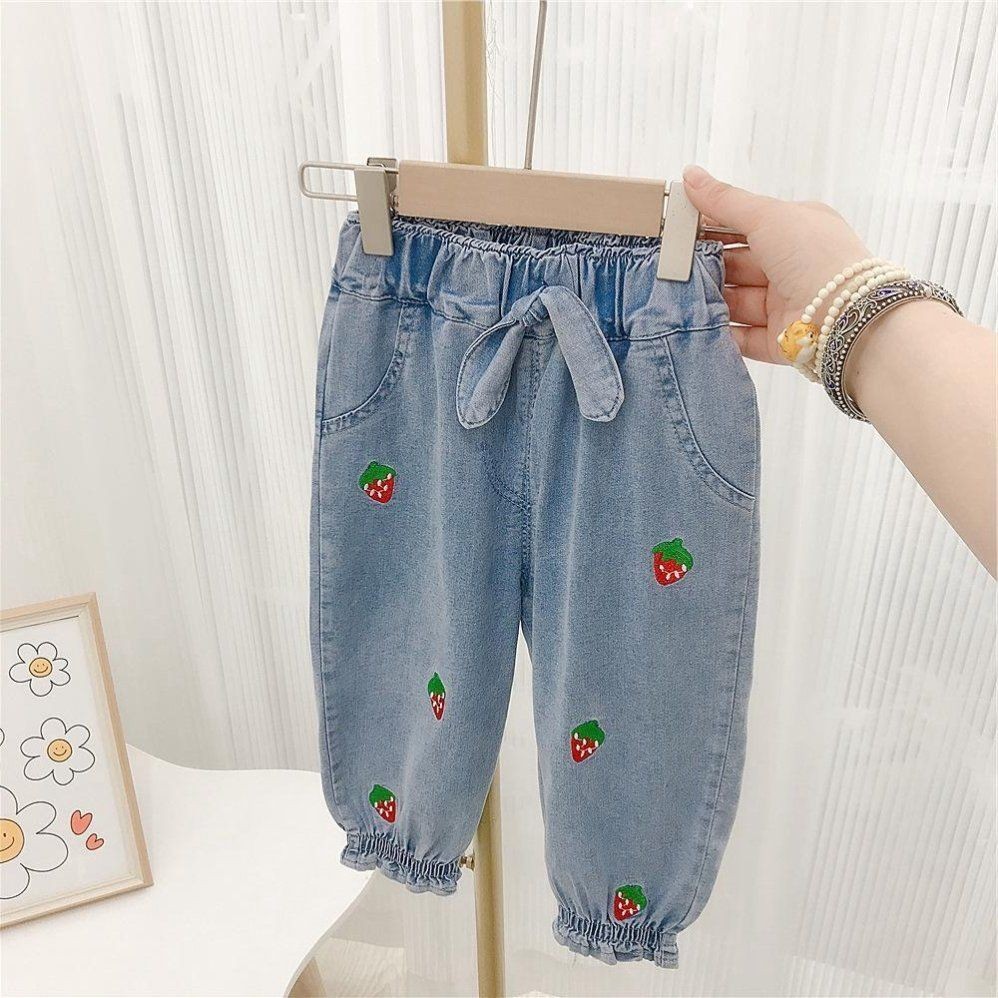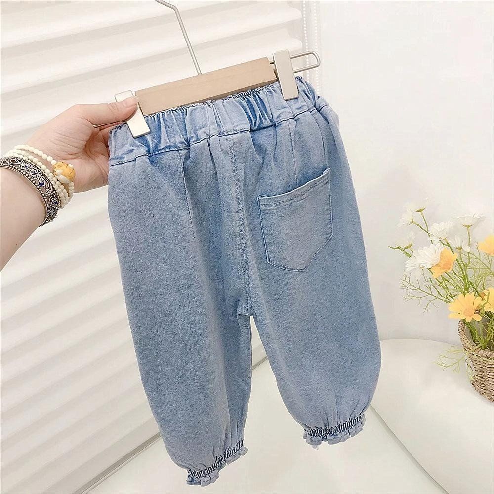 소녀 청바지 2023 새로운 모기 방지 바지 여름 바지 봄과 가을 어린이 아기 아기 여름 얇은스토어 가기