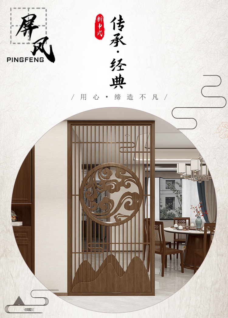 중국 스타일의 단단한 나무 스크린 파티션 거실 입구 현관 문 보호소 길조 구름 빈 조각 불굴의 좌석 화면스토어 가기